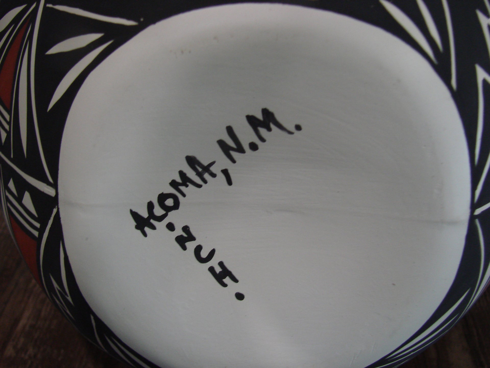 Genuine Native American Acoma Pueblo Indian Hand Painted Fine Line Wedding Vase Pottery from Western New Mexico. This Gorgeous piece of pottery features Stunning natural pigment hand painted patterns throughout. The detail is exquisite! Masterfully Hand painted by Acoma artist Concho. The bottom is signed "Concho Acoma N.M.". Free Shipping included!
