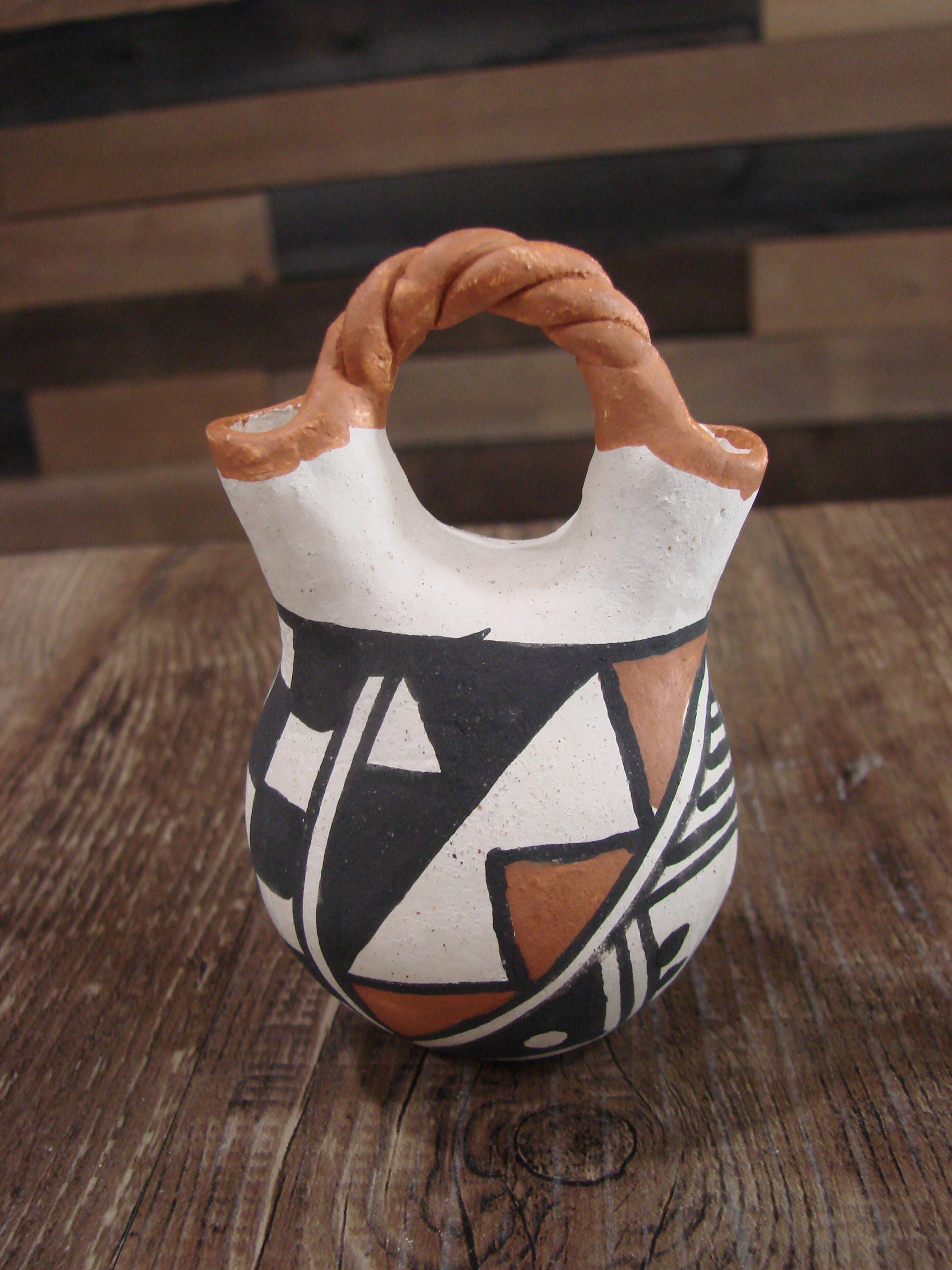 - Small Native American Acoma Hand Painted Clay Wedding Vase by Leno