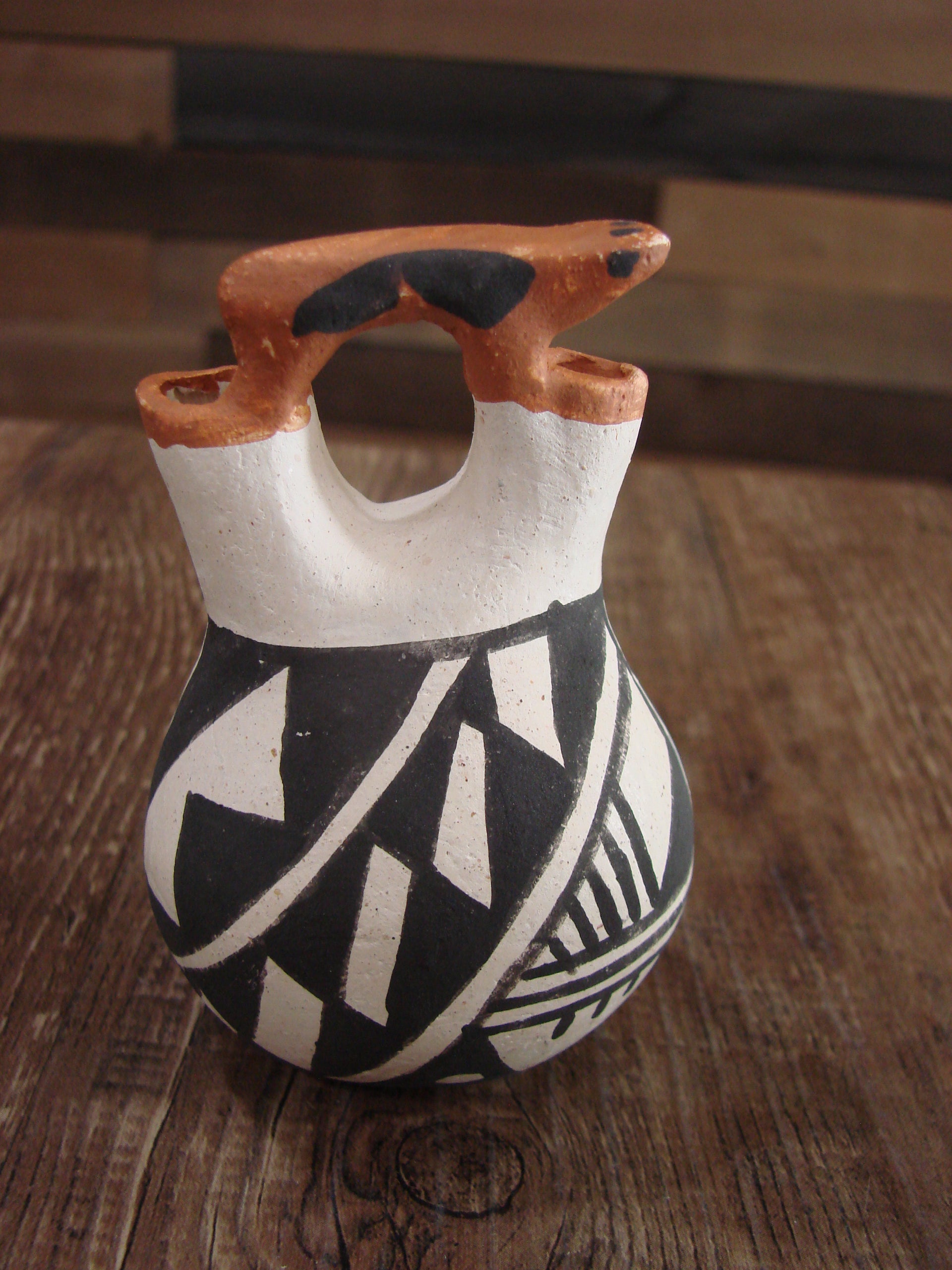 Small Native American Acoma Hand Painted Clay Wedding Vase by Leno