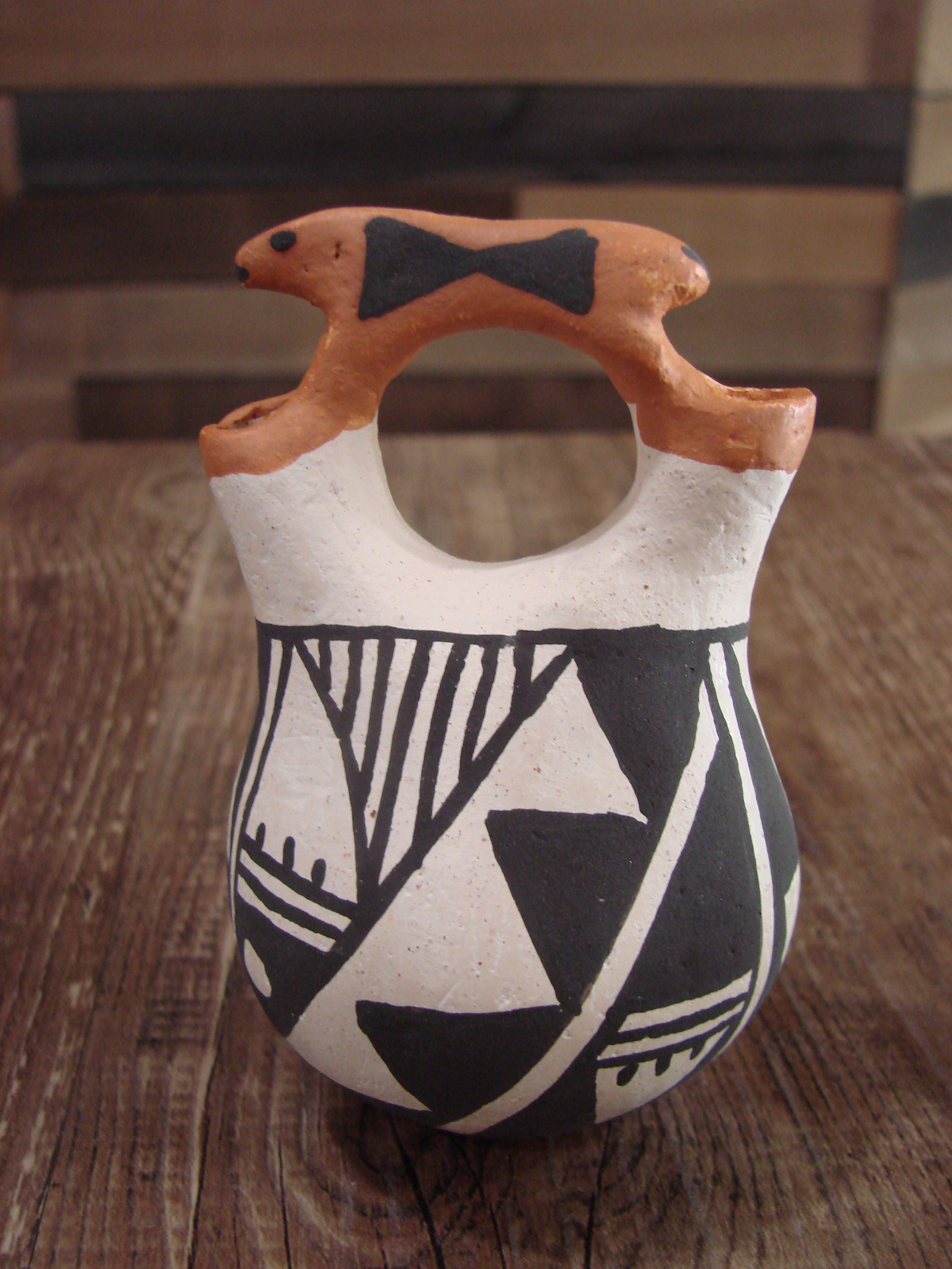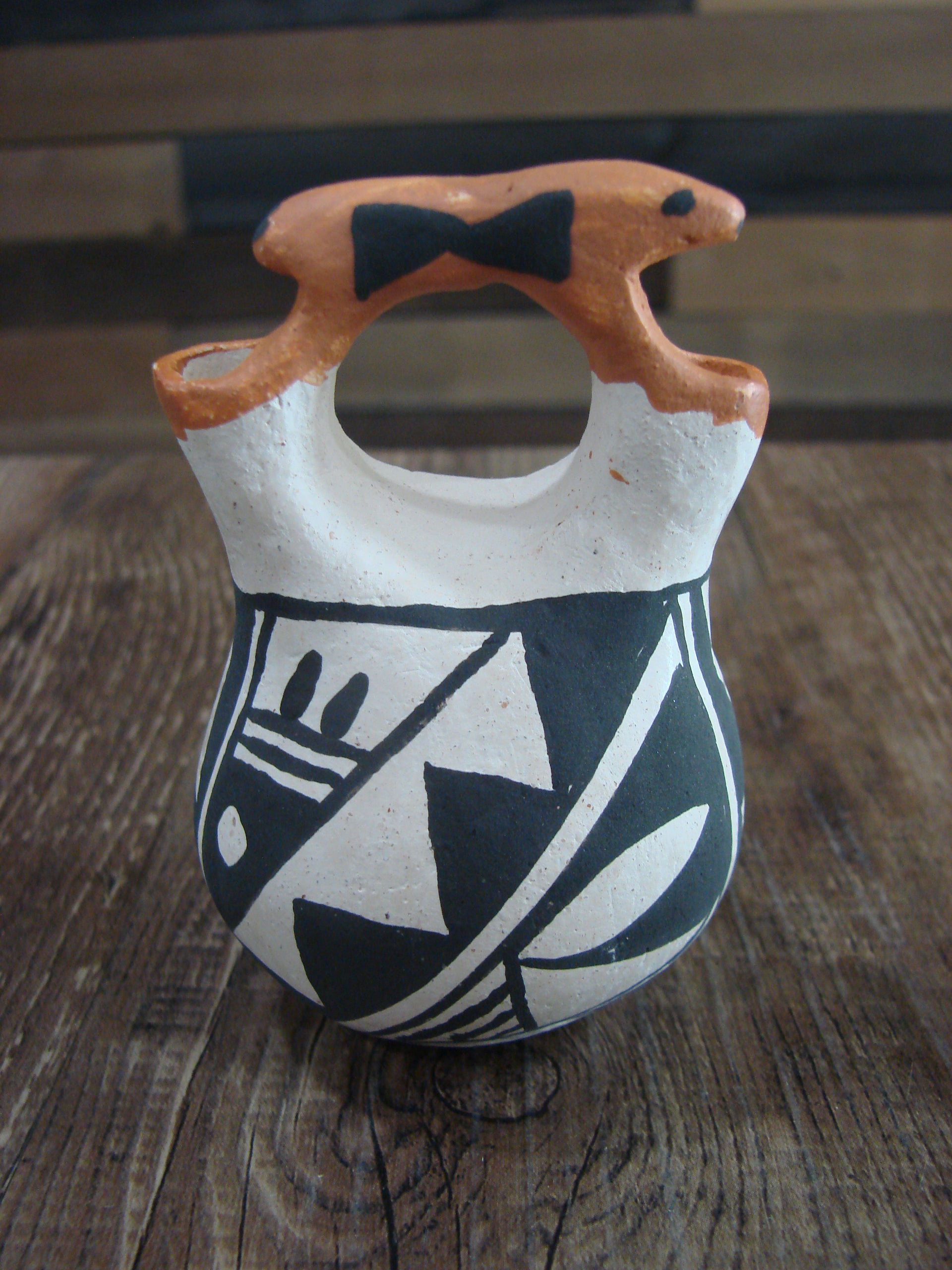 Small Native American Acoma Hand Painted Clay Wedding Vase by Leno