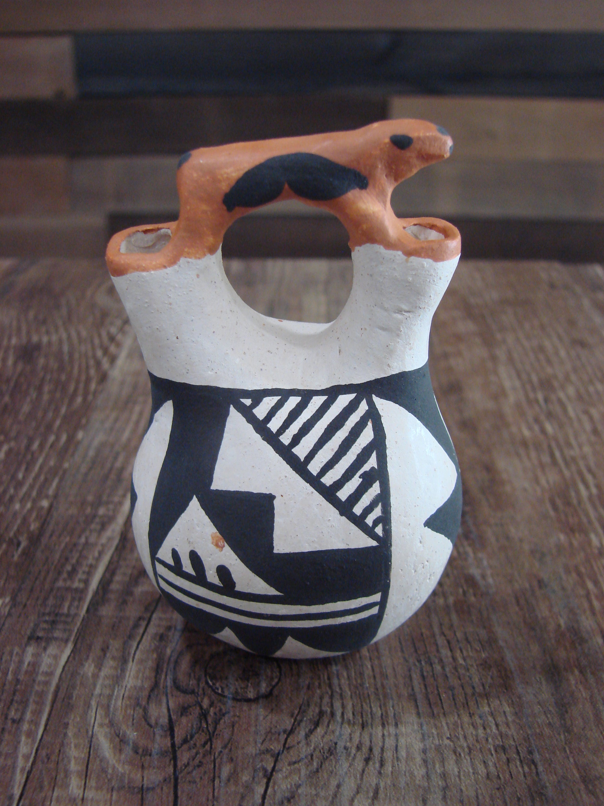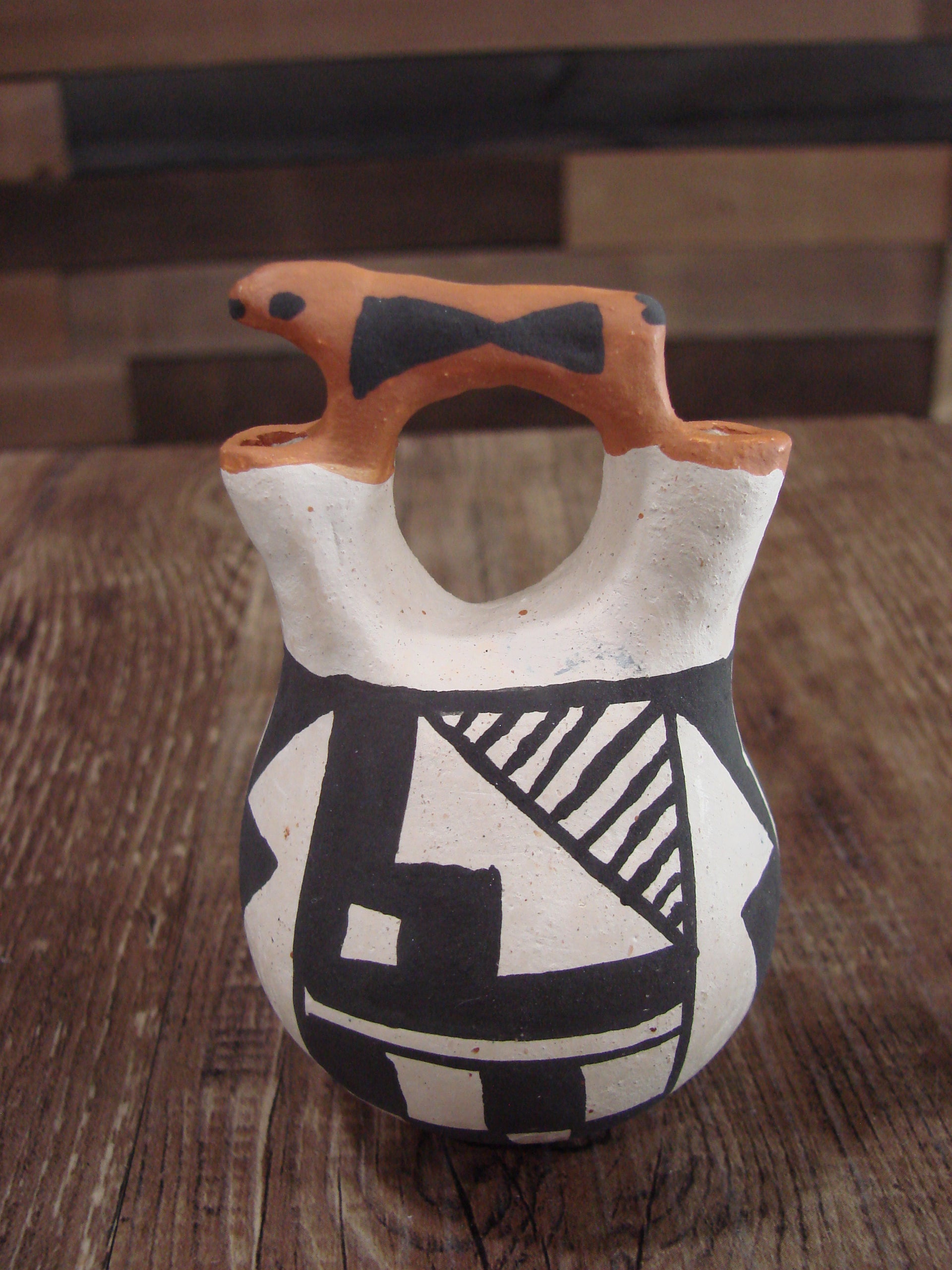 Small Native American Acoma Hand Painted Clay Wedding Vase by Leno
