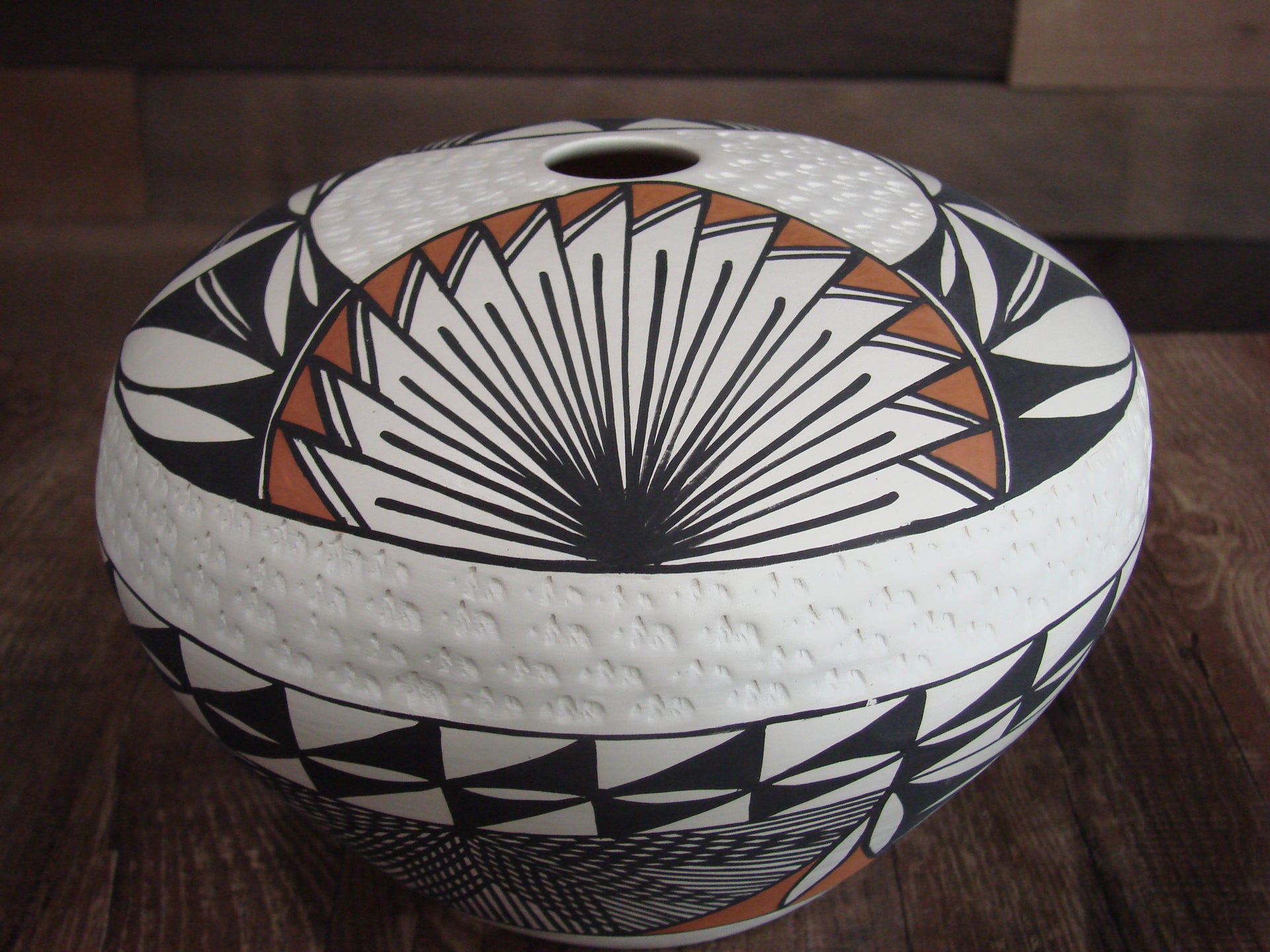 Genuine Native American Acoma Pueblo Indian Hand Painted Fine Line Pottery from Western New Mexico. This Gorgeous piece of pottery features Stunning natural pigment hand painted patterns throughout. The detail is exquisite! Masterfully Hand Coiled and Hand painted by Acoma artist B. Garcia. The bottom is signed "B Garcia Acoma N.M". Free Shipping included!
