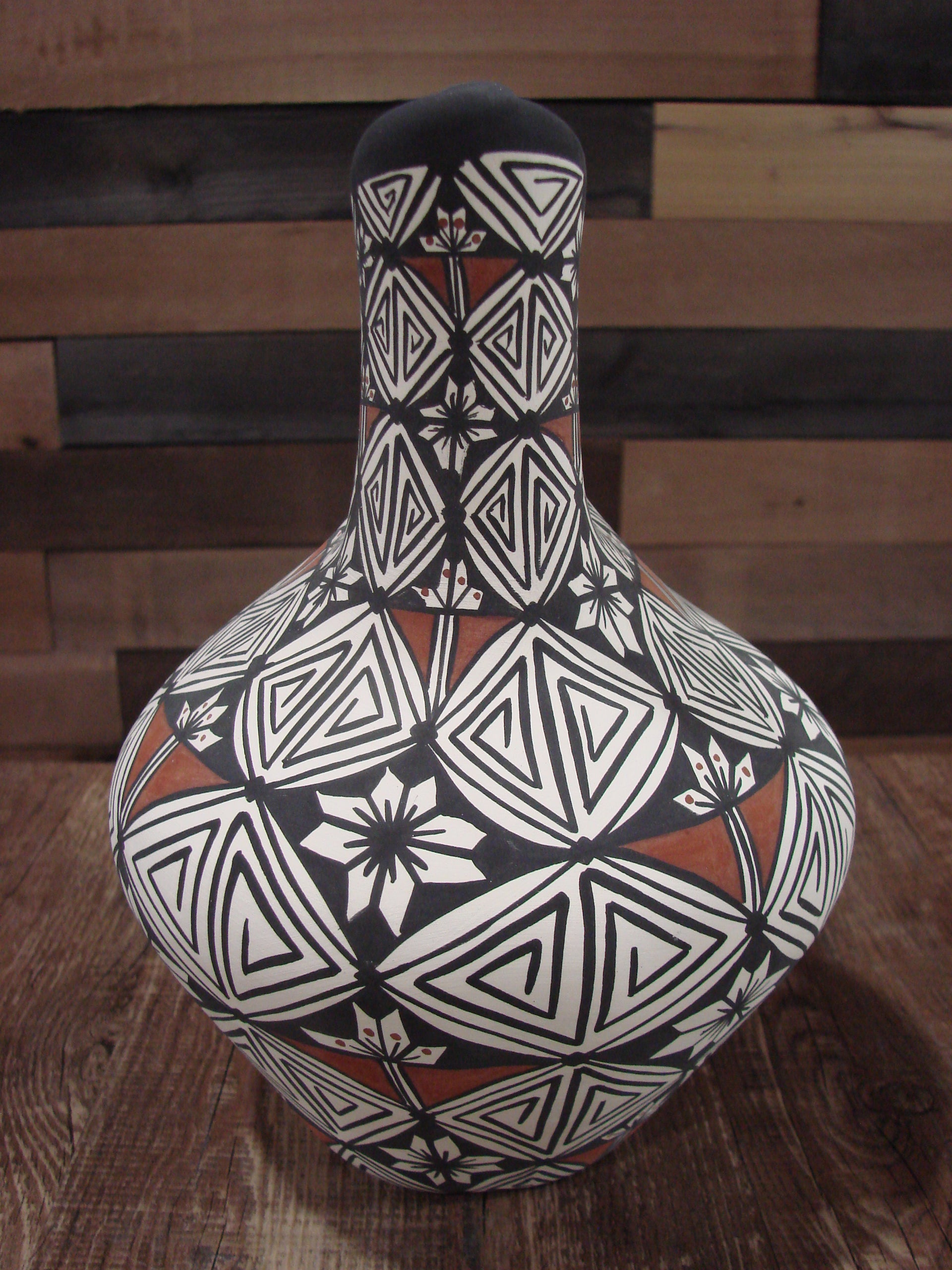 Native American Fine Line Hand Painted Wedding Vase by M. Lukee