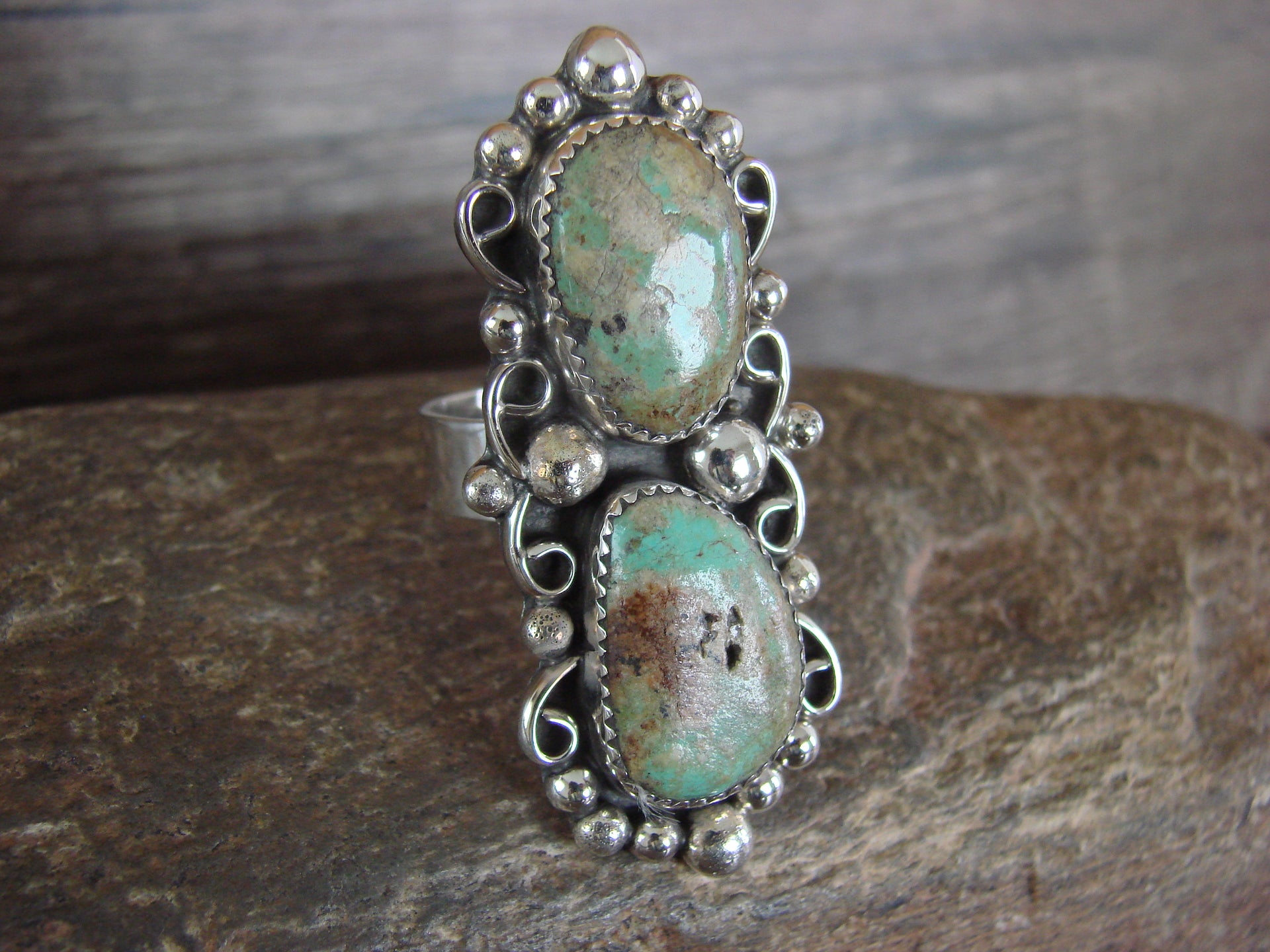 Navajo Sterling Silver Turquoise Adjustable Ring Size 10 to 12 - Cleveland