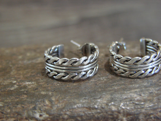 Native American 5/8" Sterling Silver Twisted Hoop Earrings by Tahe