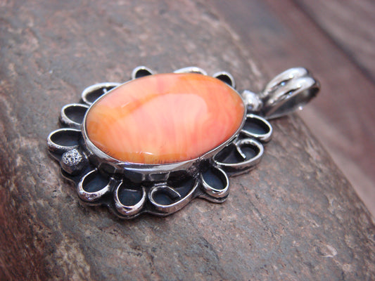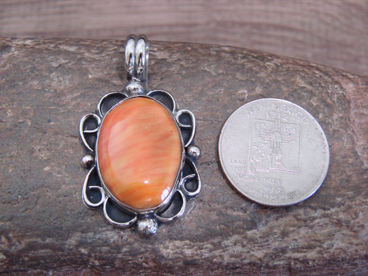 Native American Nickel Silver & Spiny Oyster Pendant - Cleveland