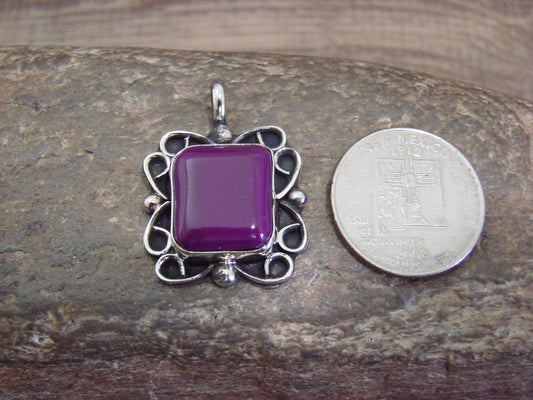 Native American Nickel Silver & Purple Spiny Oyster Pendant - Cleveland