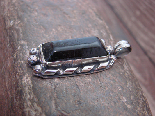 Native American Nickel Silver & Onyx Pendant - Cleveland
