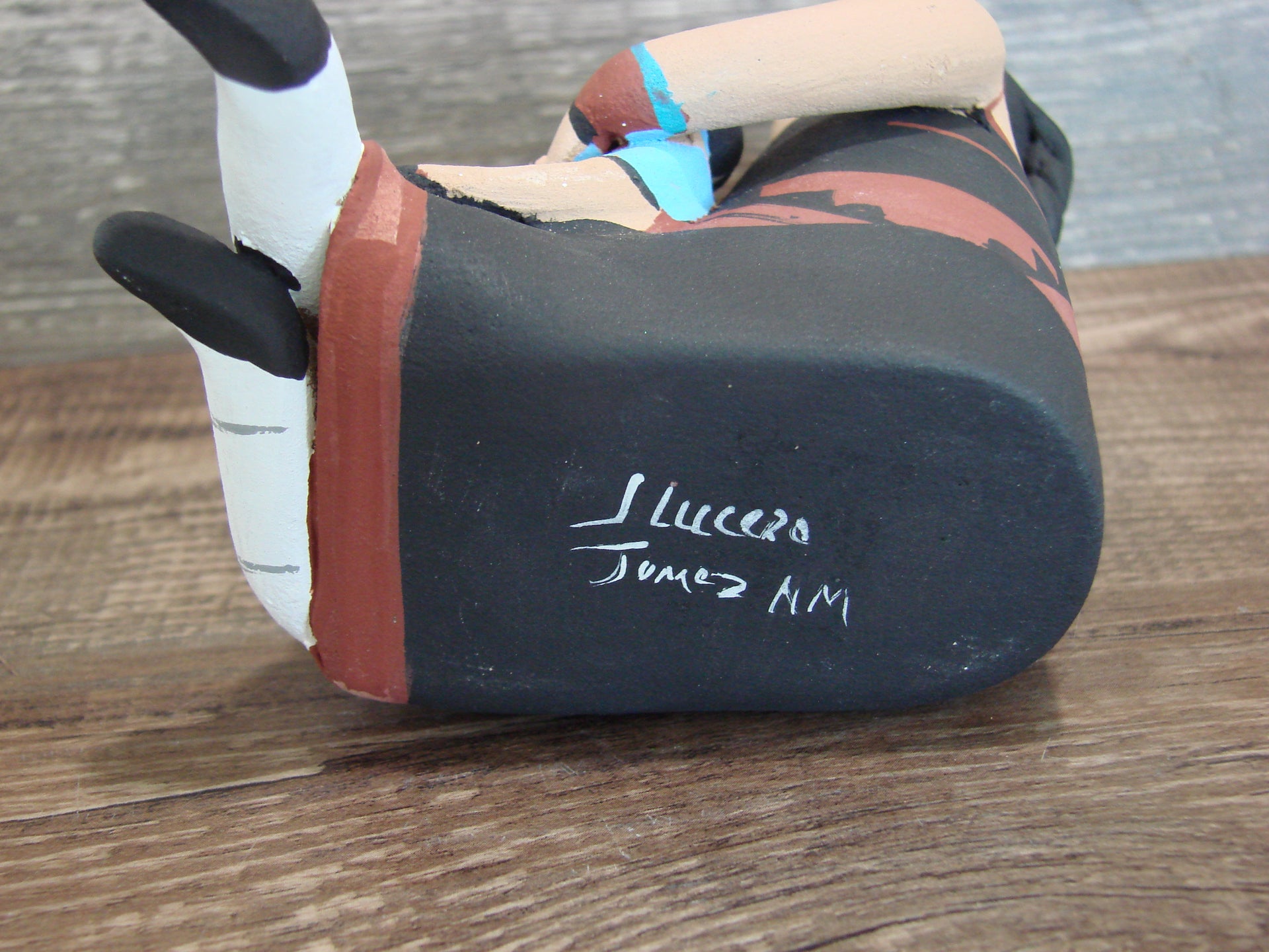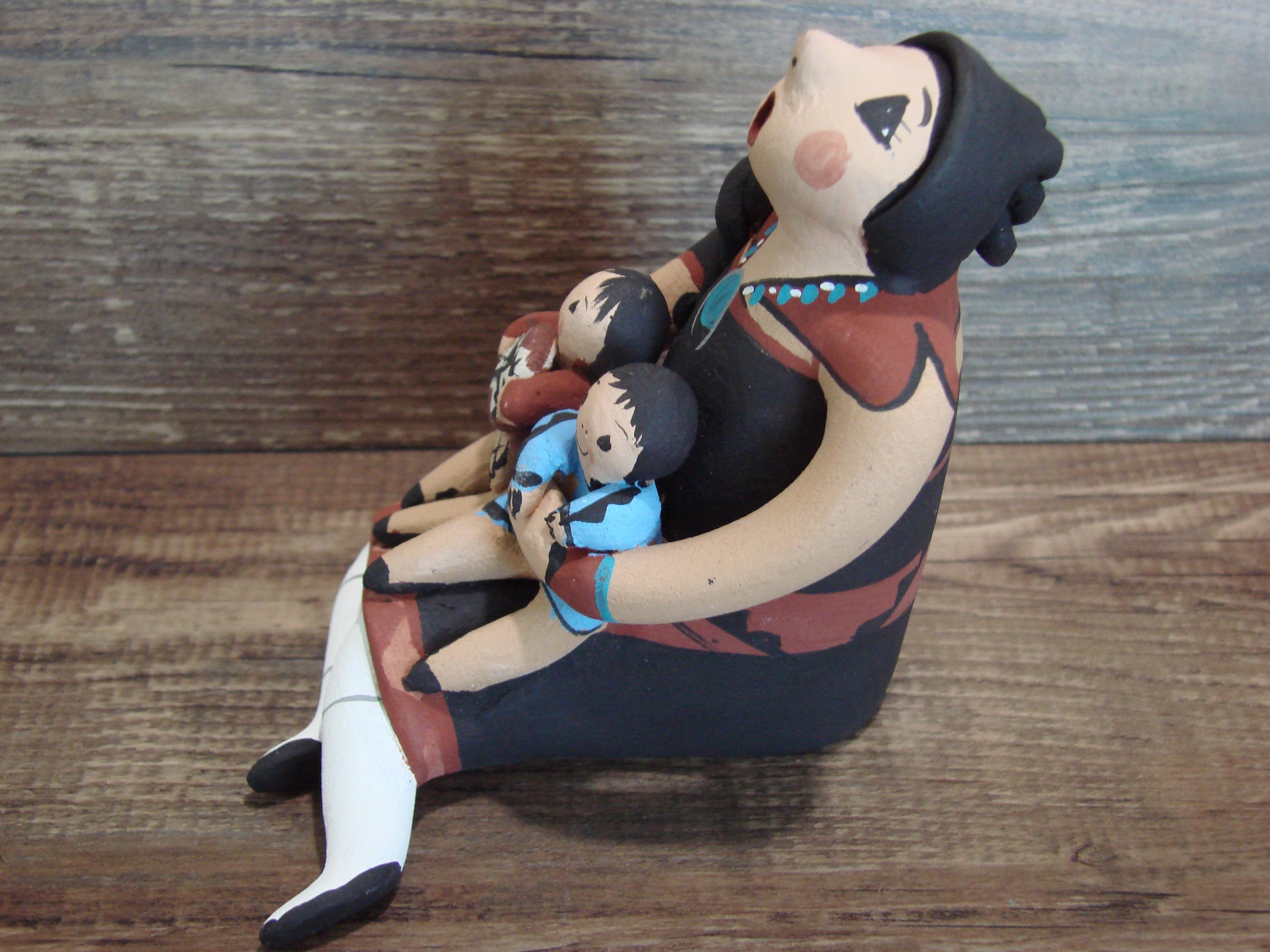 Native American Jemez Indian Hand Made Clay Storyteller from Northern New Mexico. This Stunning Storyteller features a Women singing and holding her children. This piece is handmade with Jemez Mountain Clay. The storyteller is beautifully hand painted throughout. Handmade by D Lucero. Signed on the bottom. Free shipping included!