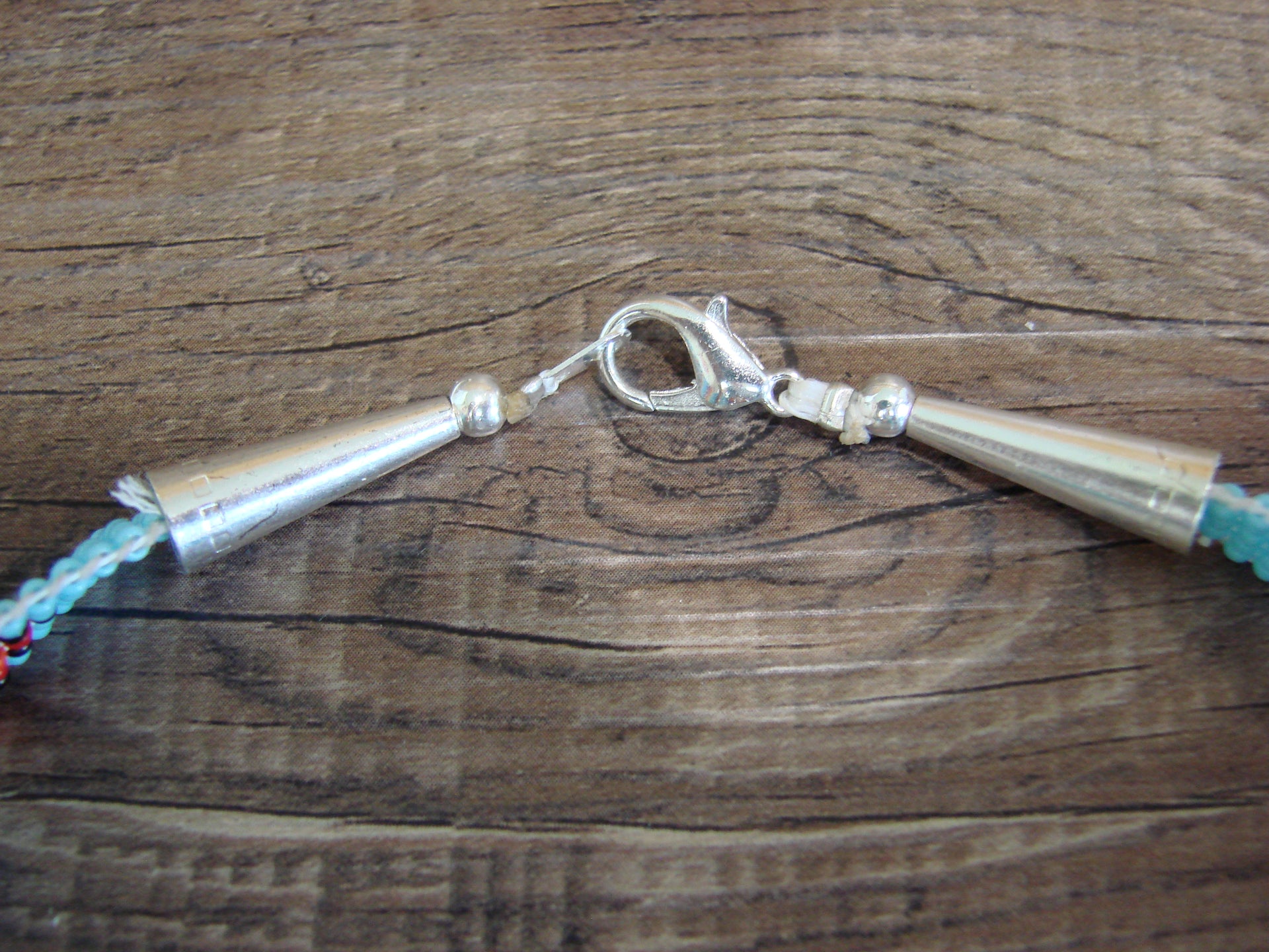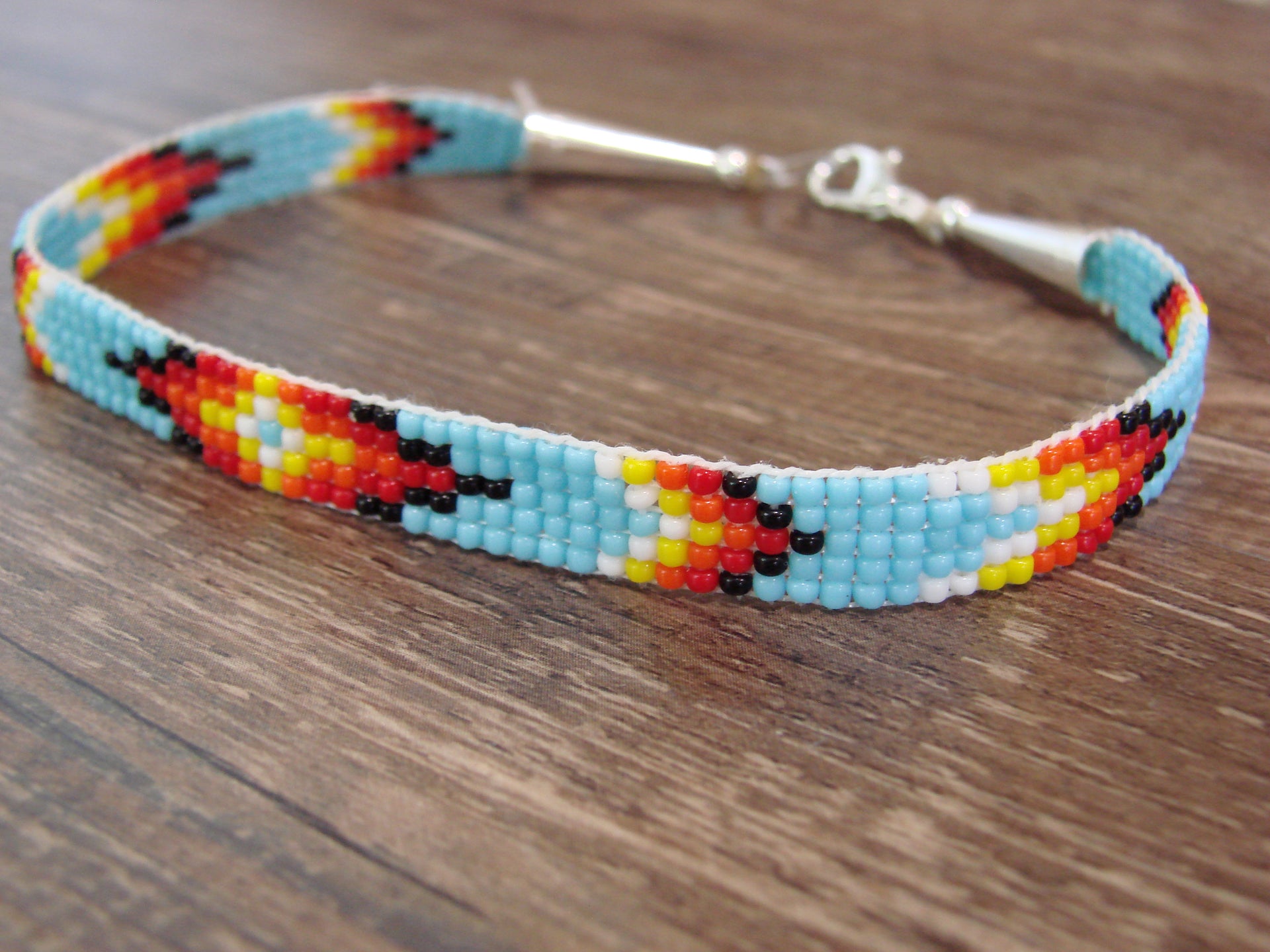 Genuine Native American Navajo Indian Hand Beaded Bracelet from Western New Mexico. This bracelet features a beautiful hand beaded design throughout. The vibrant colors make this piece a wonderful part of any jewelry collection! A Sterling Silver Clasp completes this masterpiece. Navajo Indian handmade by Jacklyn Cleveland. Free Shipping and Gift Box included!