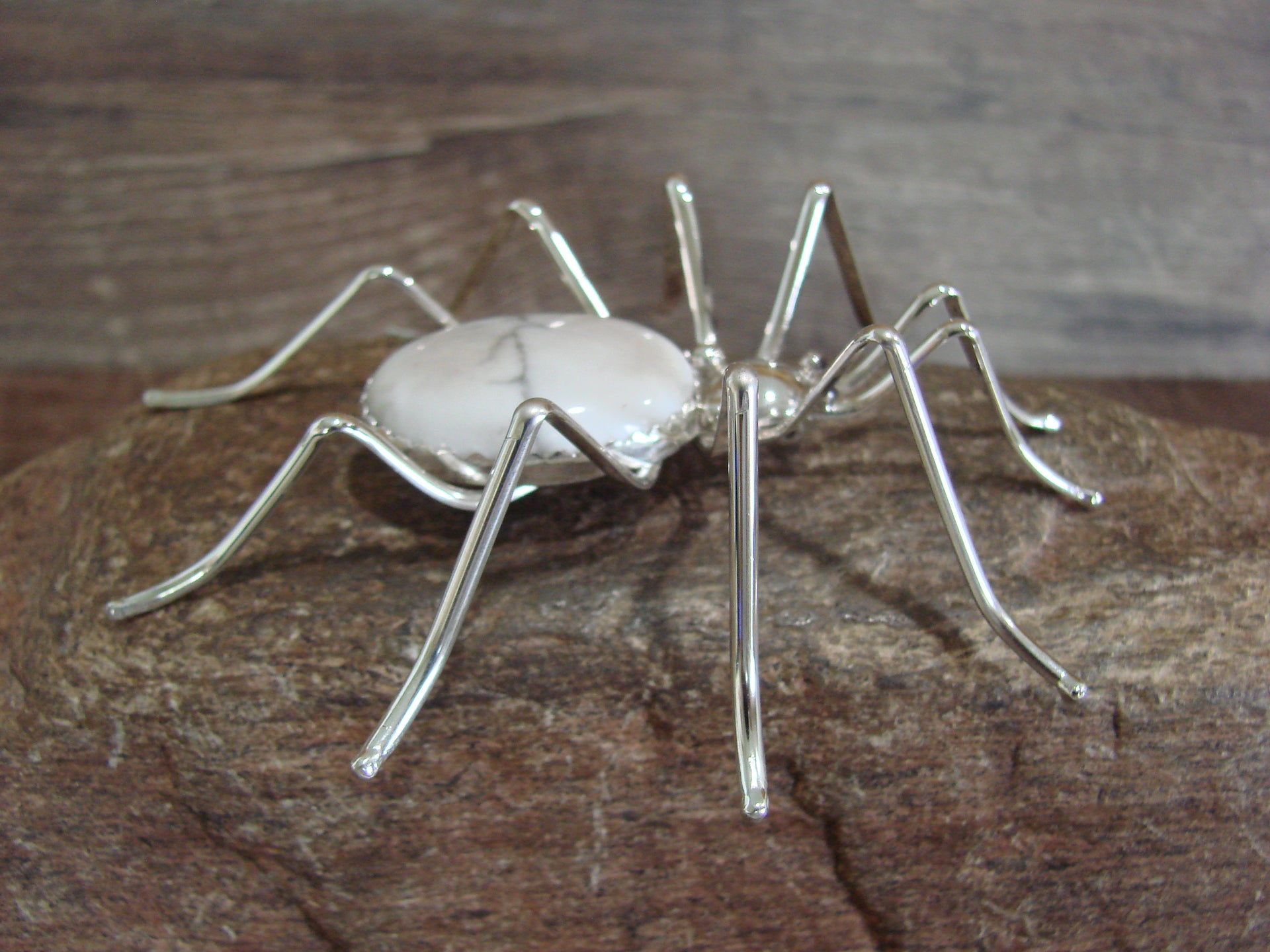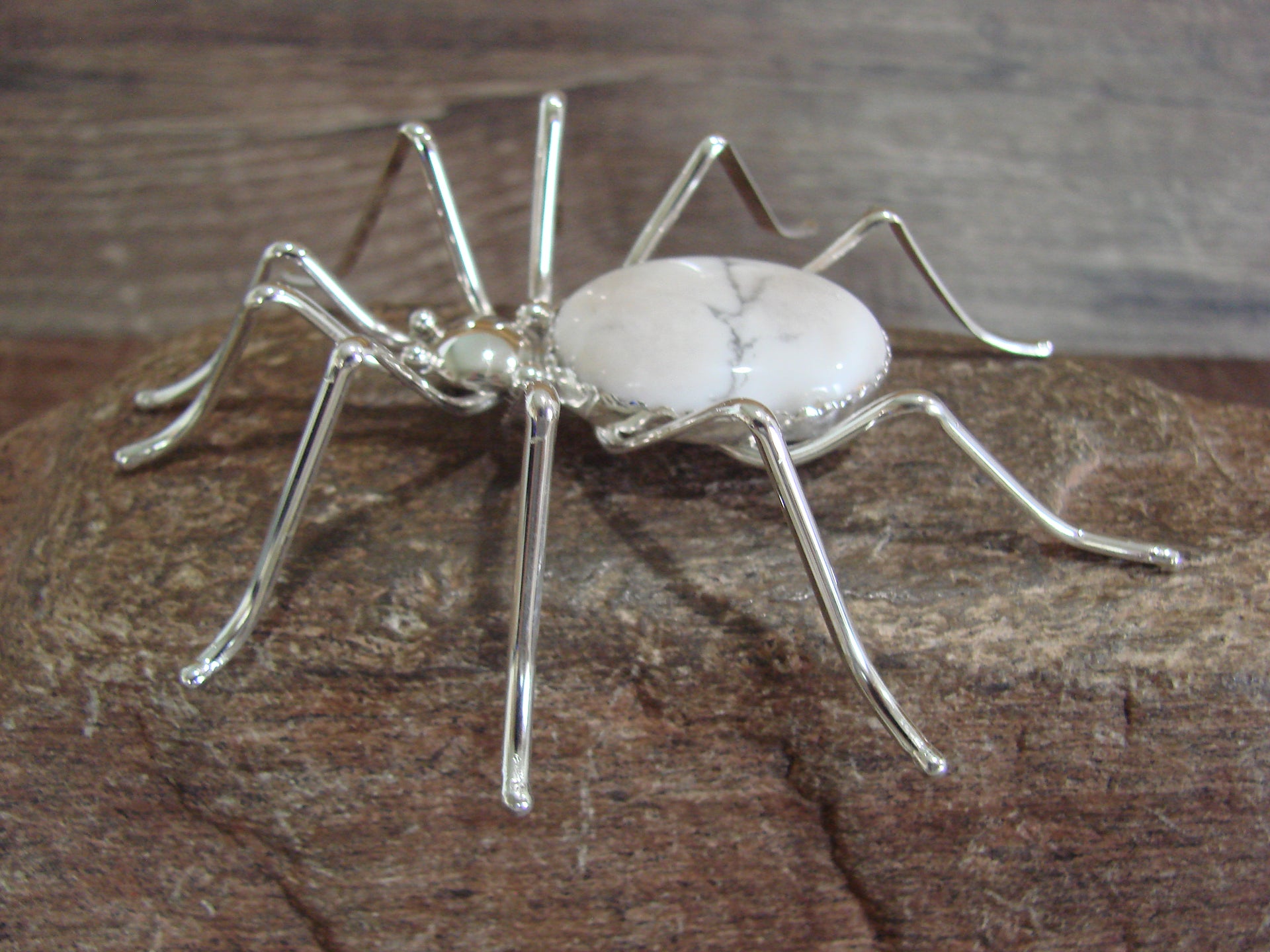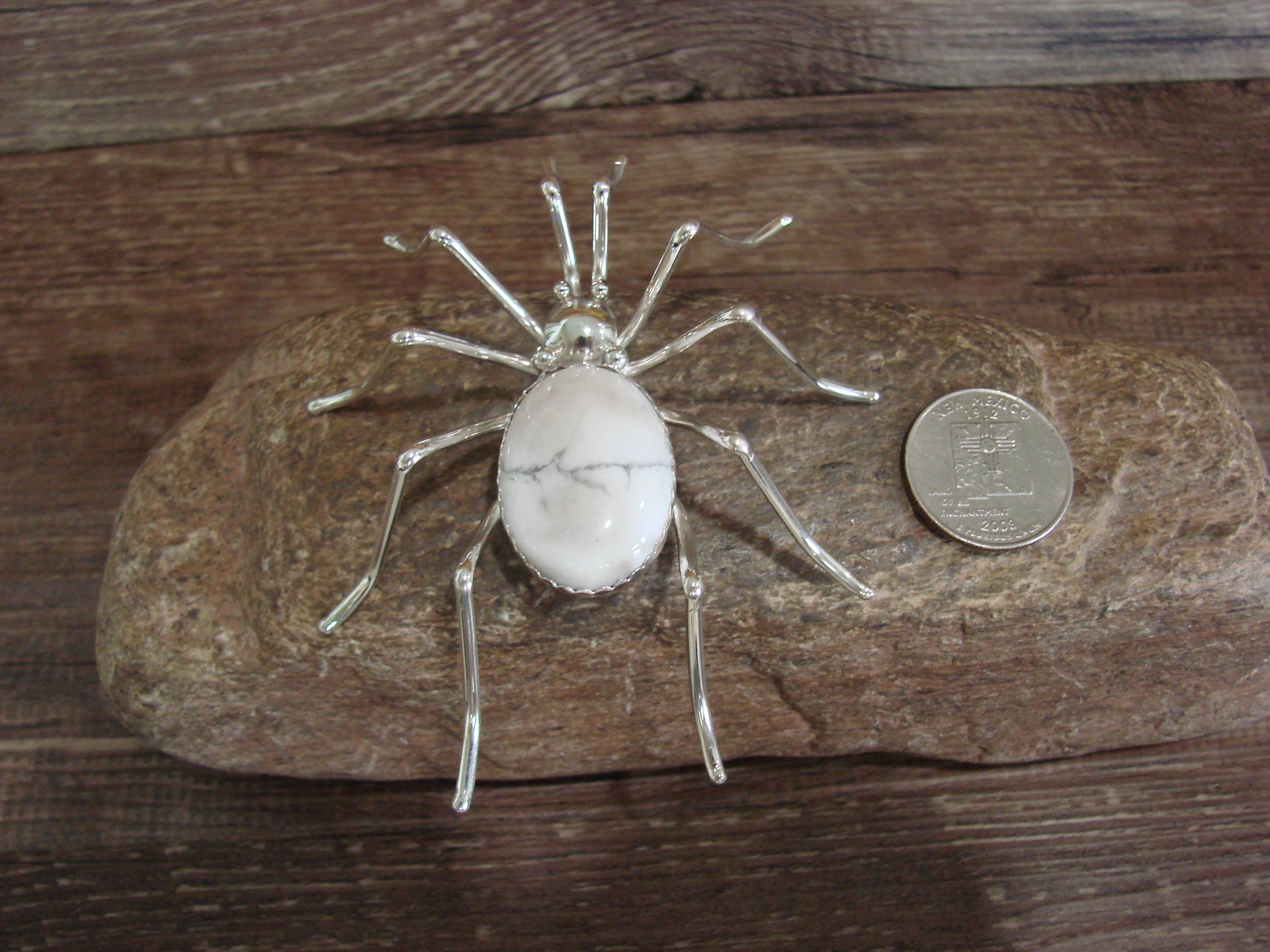 Large Native American Sterling Silver & Howlite Spider Pin by Garfield
