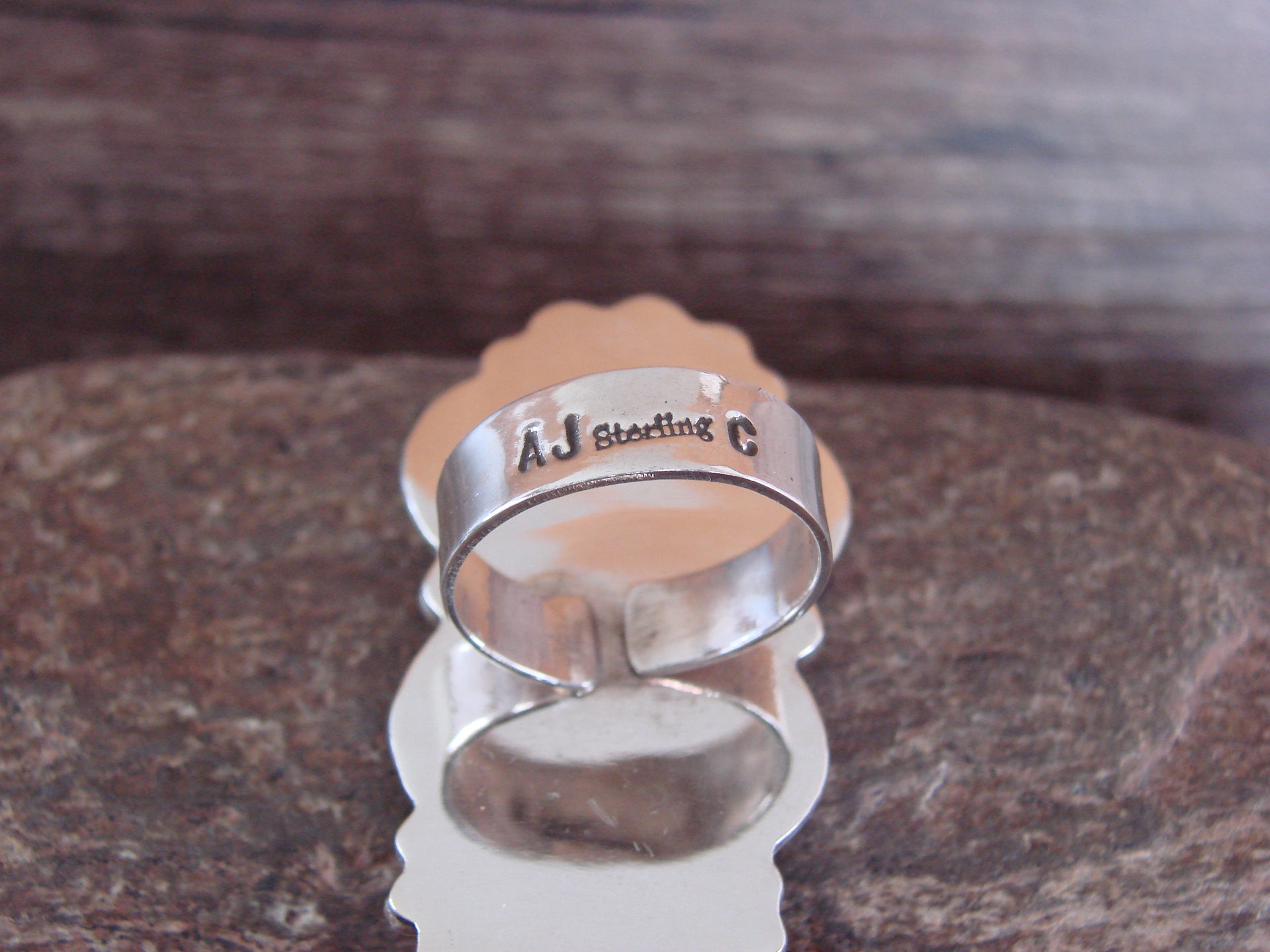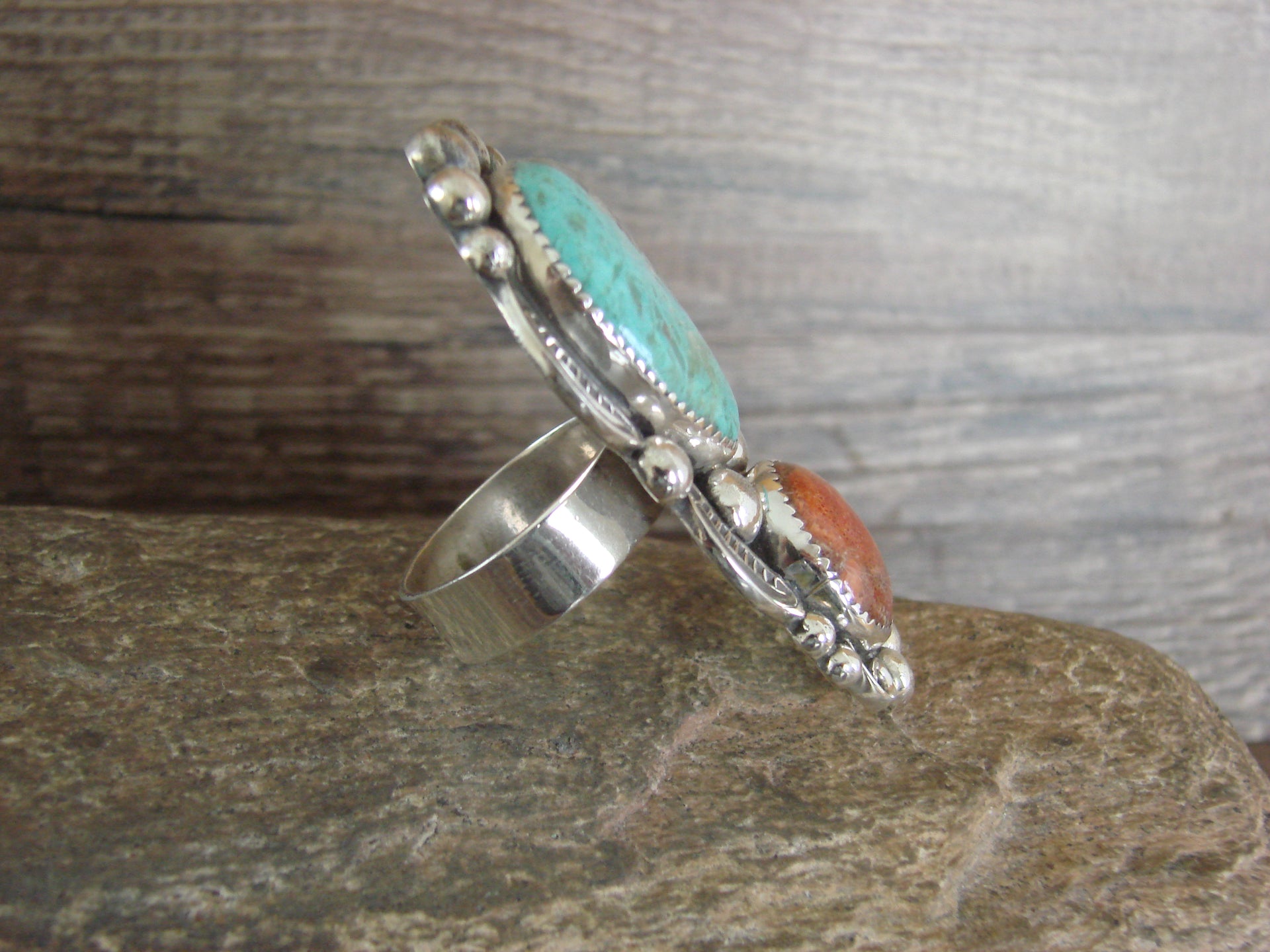 Navajo Sterling Silver Turquoise & Coral Adjustable Ring Size 10 to 12 - Cleveland
