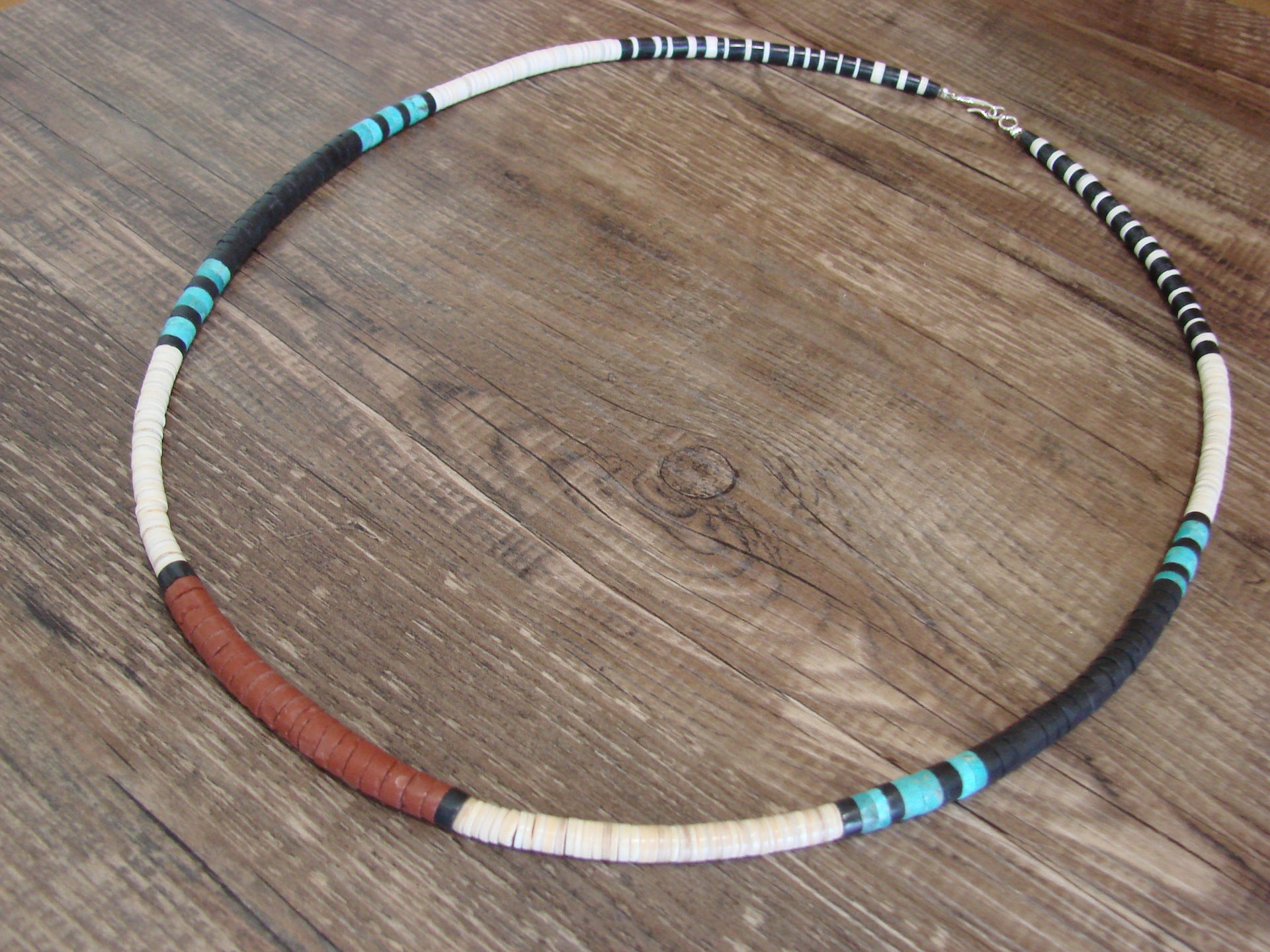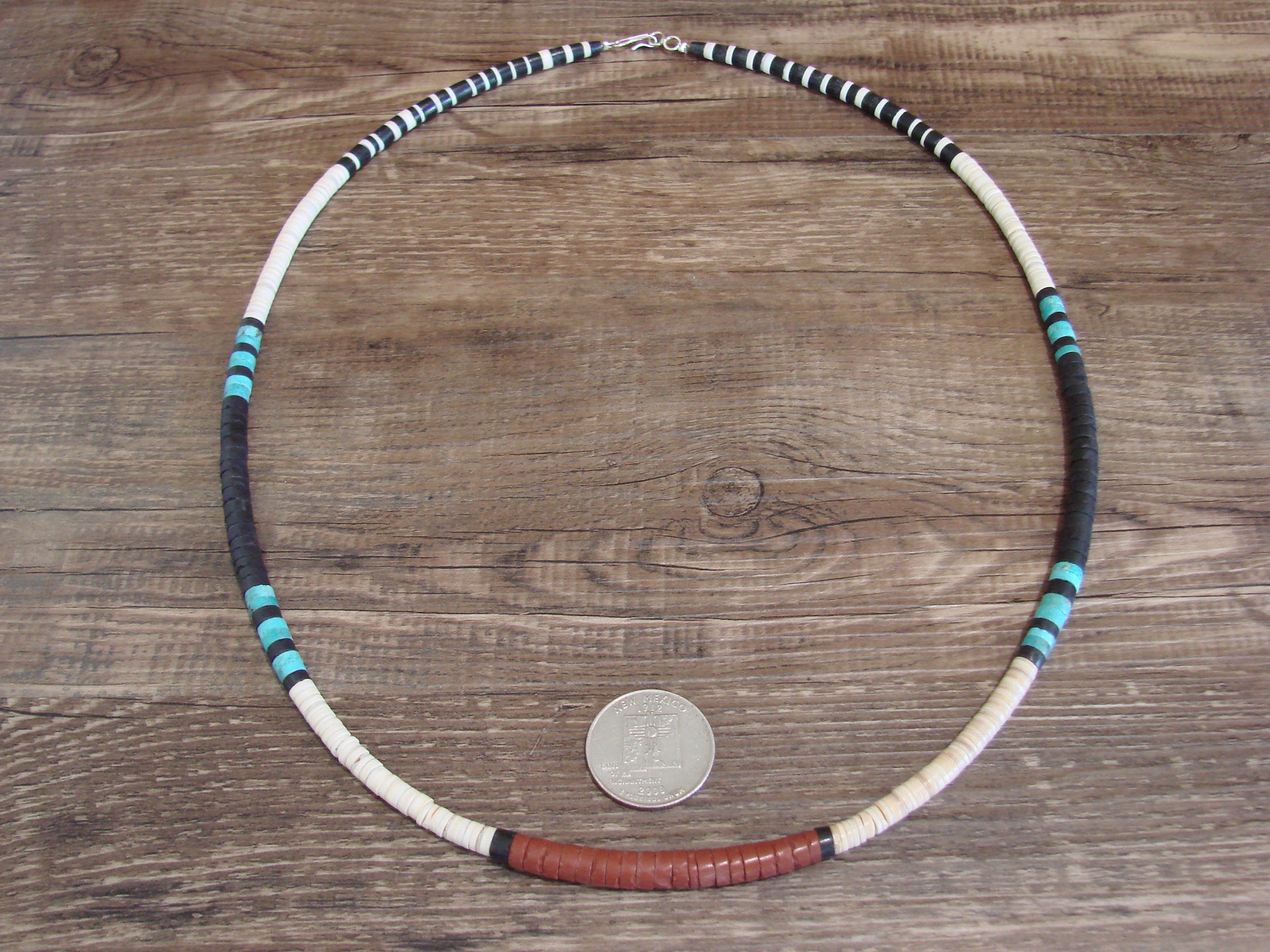 Native American 25" Santo Domingo Turquoise Heishi Necklace - Crespin
