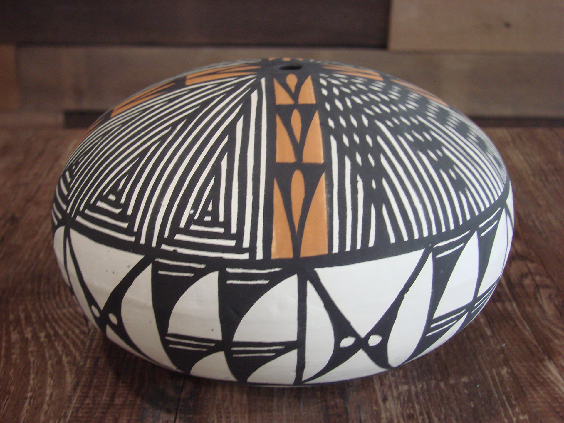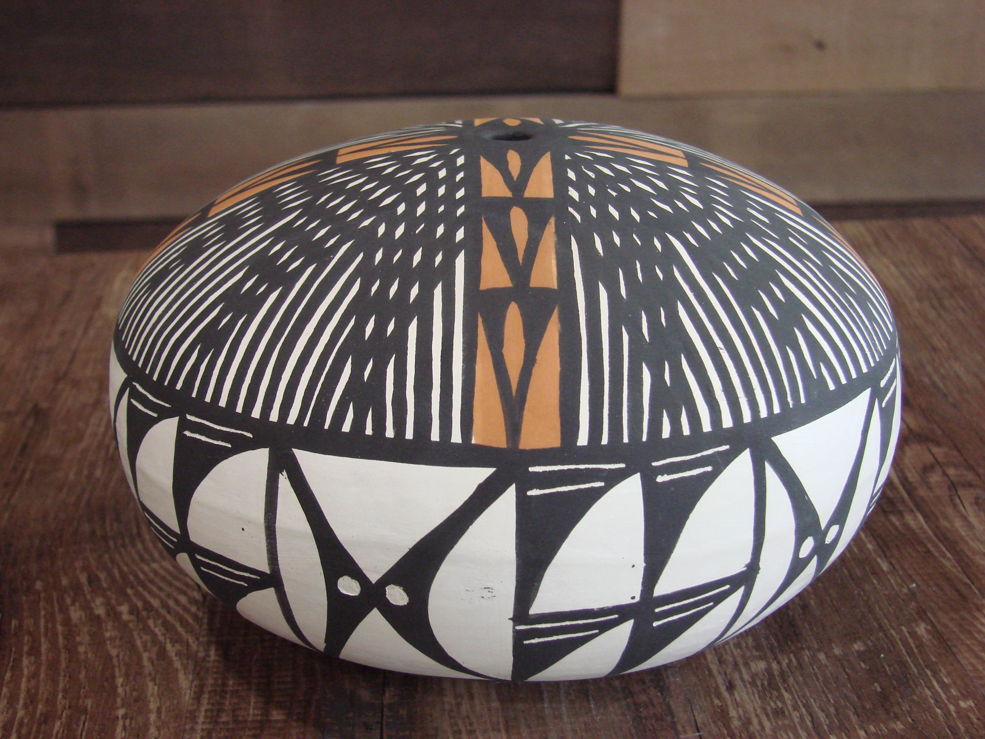 Genuine Native American Acoma Pueblo Indian Hand Painted Fine Line Pottery from Western New Mexico. This Gorgeous piece of pottery features Stunning natural pigment hand painted patterns throughout. The detail is exquisite! Masterfully Hand painted by Acoma artist D. Antonio. The bottom is signed "Antonio Acoma N.M". Free Shipping included!