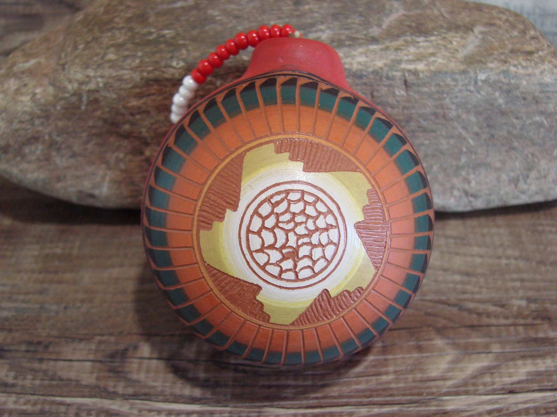 Genuine Native American Navajo Indian Hand Etched, Hand Painted, and Hand Beaded Dream Catcher Ornament Pottery from Western New Mexico. This Beautiful Hand Made Masterpiece features Stunning Details and Navajo patterns throughout! Hand Made by Kianna Benally. Signed on the bottom. Free shipping included!