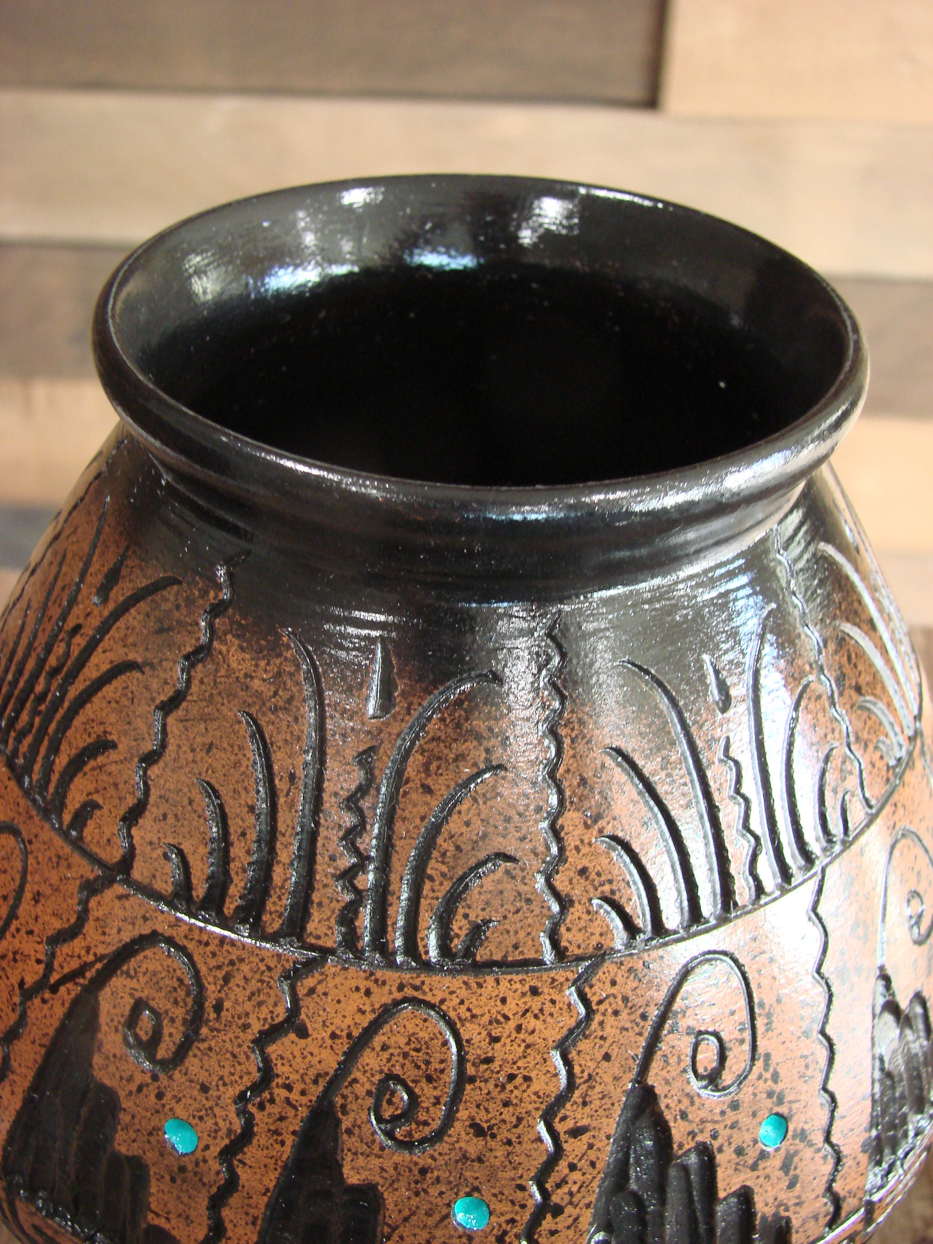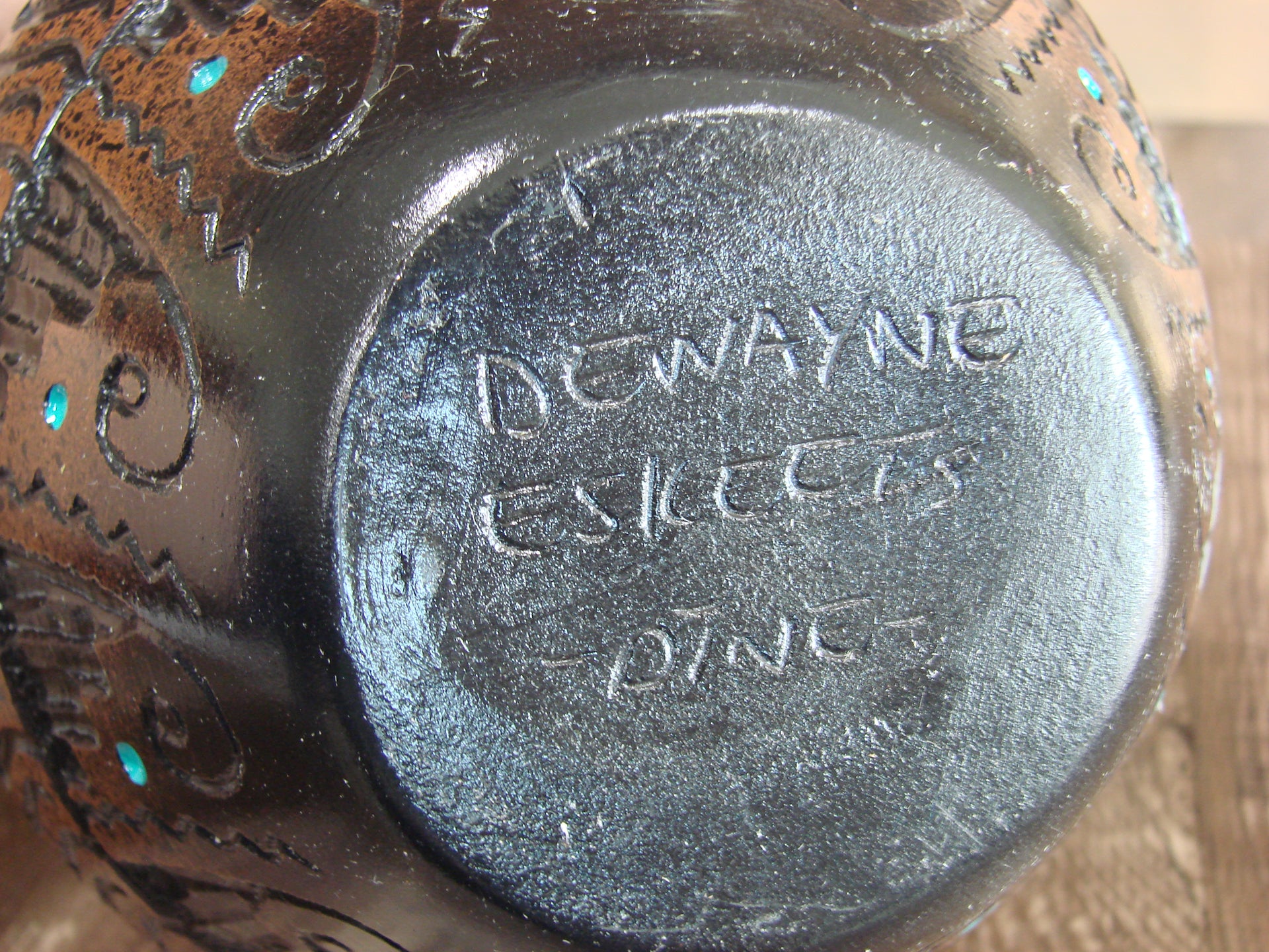 Native American Hand Etched Pottery Signed by Dewayne & Eskeets