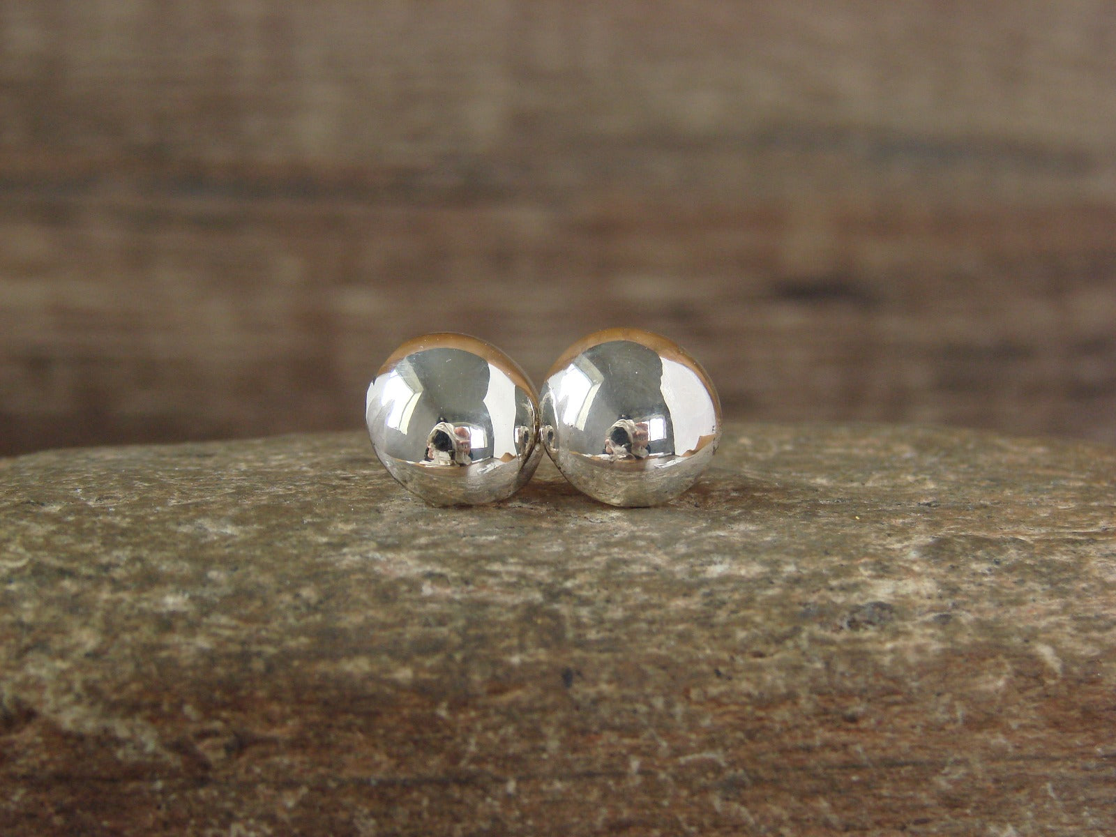 Native American Navajo Indian Sterling Silver Post Earrings from Western New Mexico. These 1/2" half dome Sterling Silver studs are polished to bright finish and are very stunning! Navajo Indian handmade by Gloria Harvey. Free shipping and gift box included!