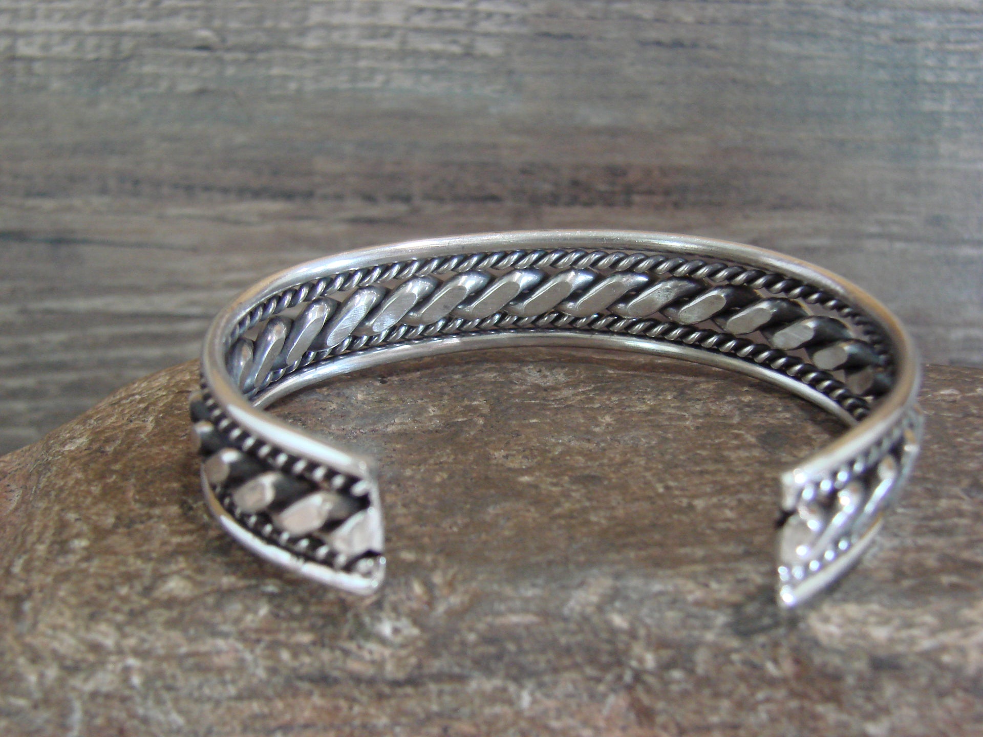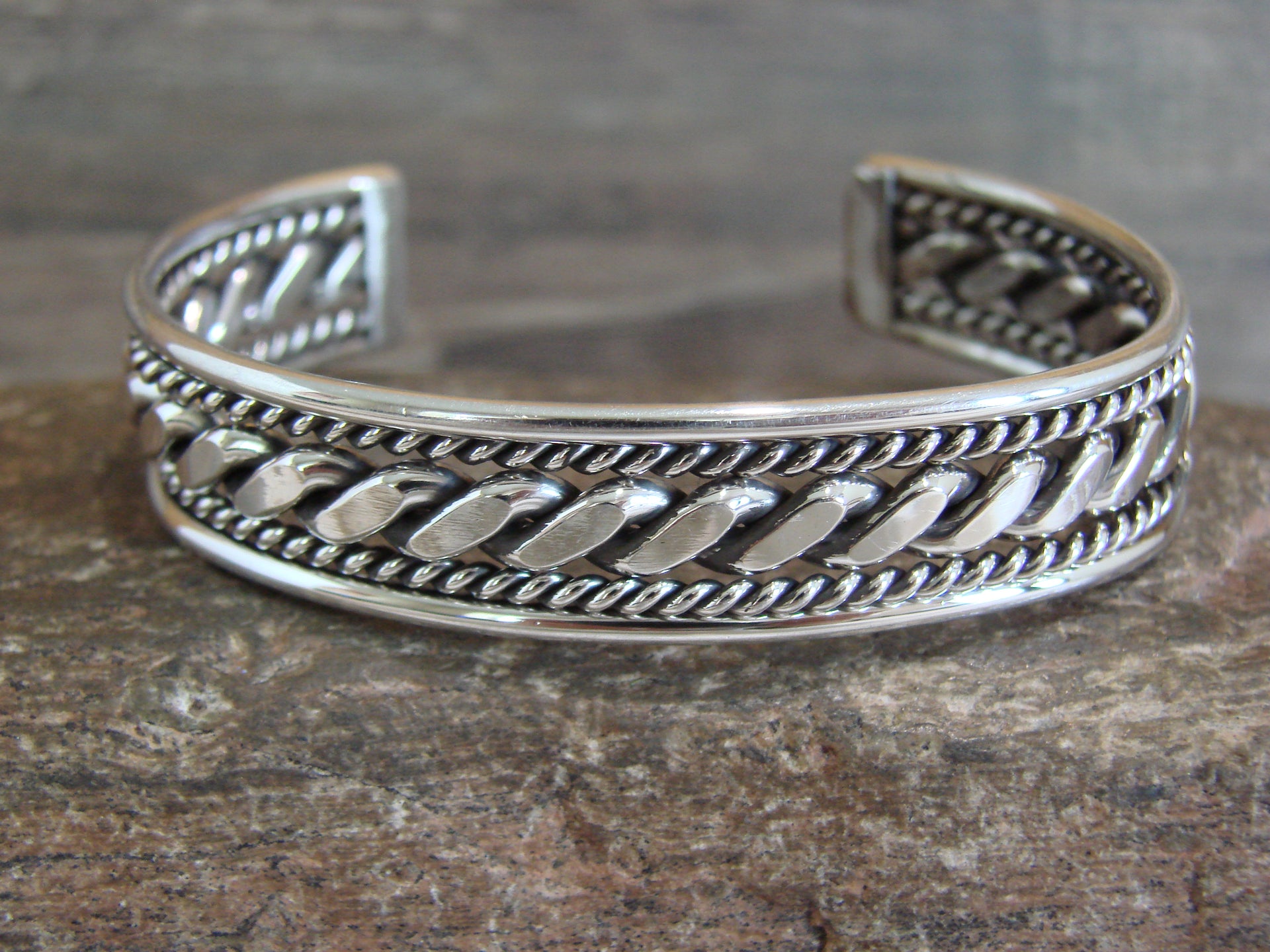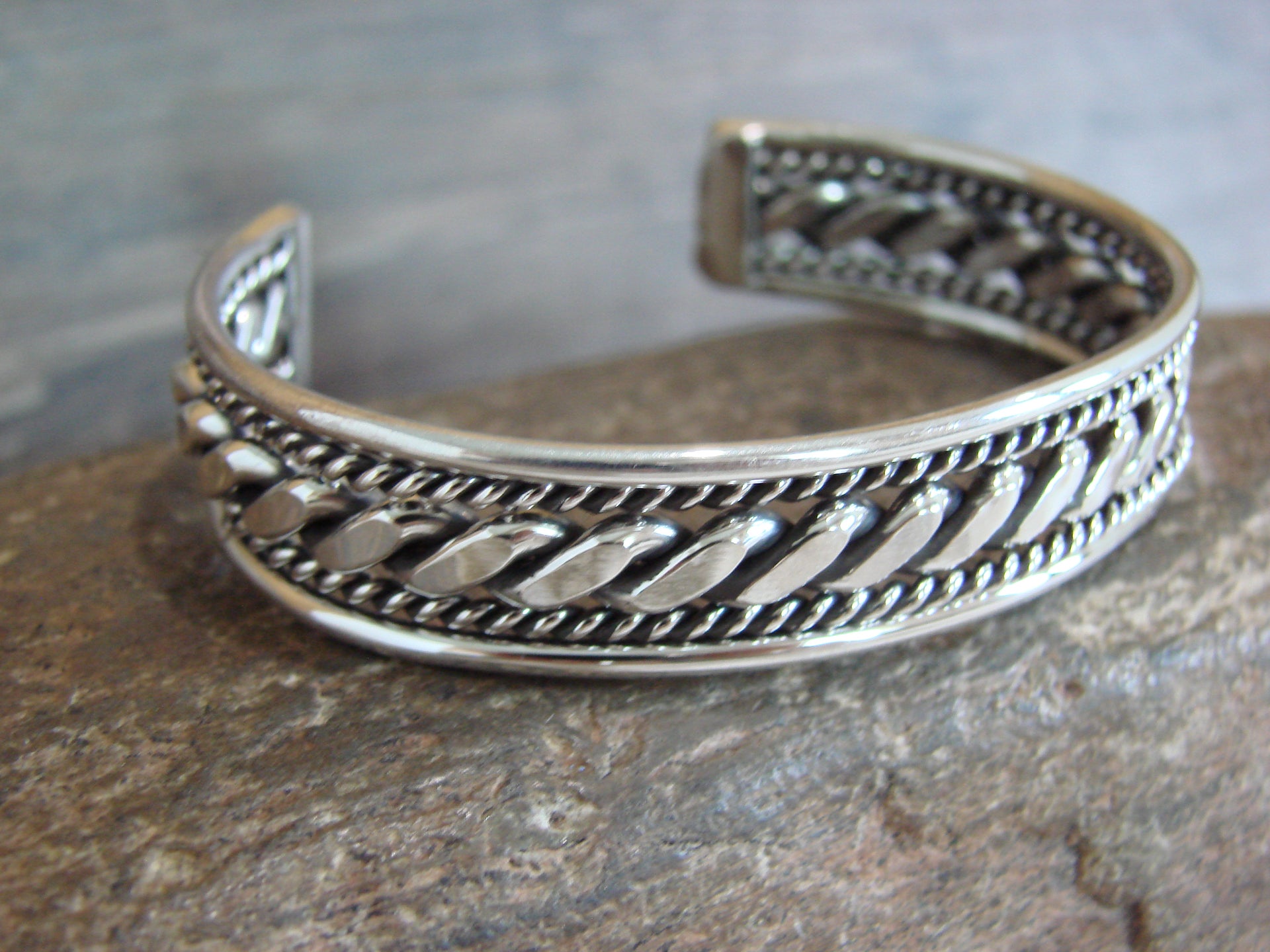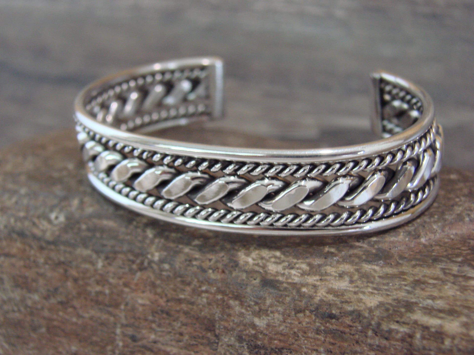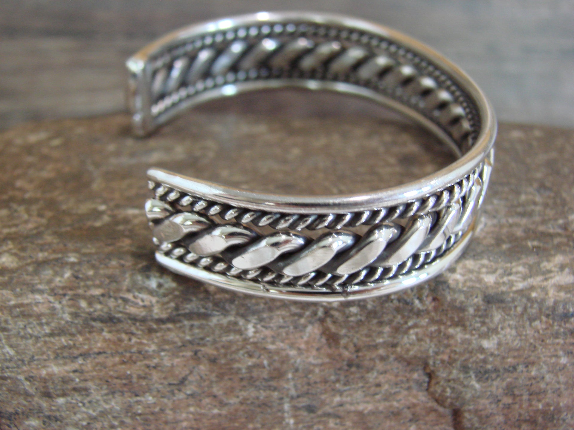 Native American Navajo Indian 1/2" Twisted Sterling Silver Bracelet by Tahe