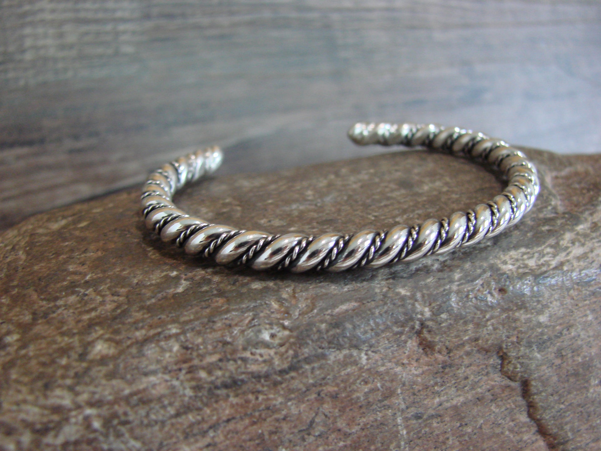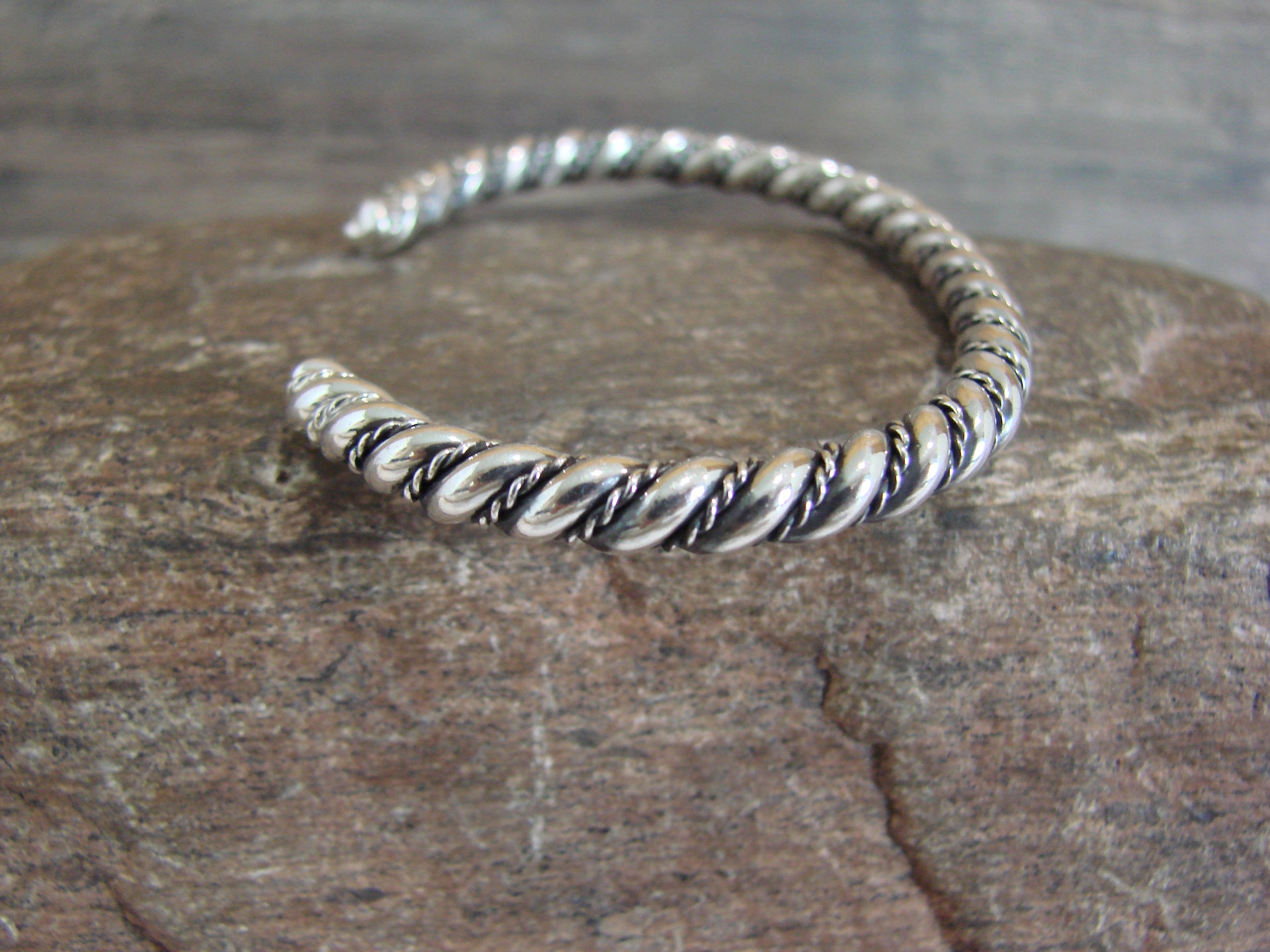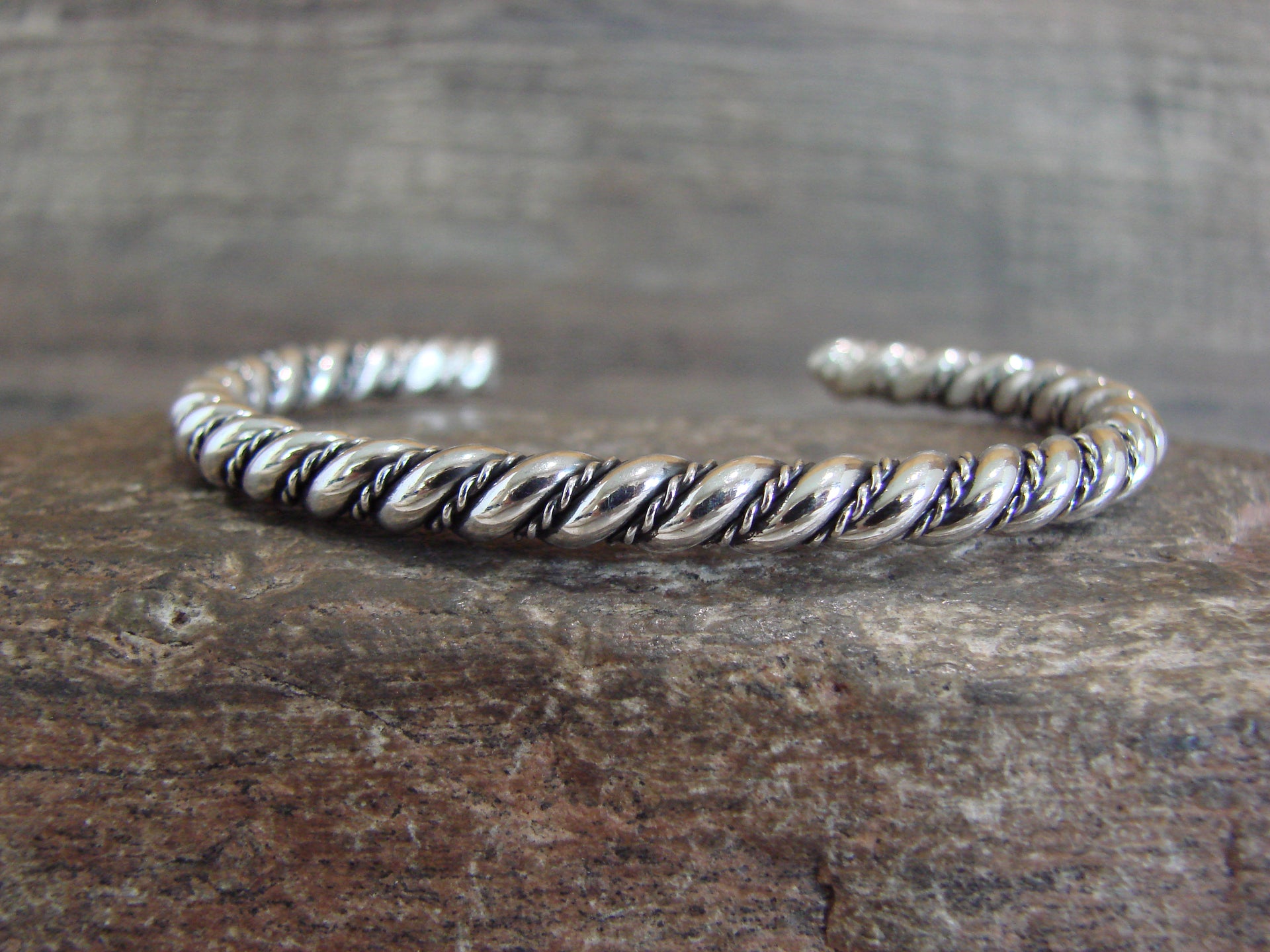 Genuine Native American Navajo Indian Sterling Silver Cuff Bracelet from Western New Mexico. This Stunning bracelet features Smooth Twisted Sterling Silver throughout. Nicely polished, this bracelet is Gorgeous! Navajo Indian handmade by Elaine Tahe. Free gift box and shipping included!