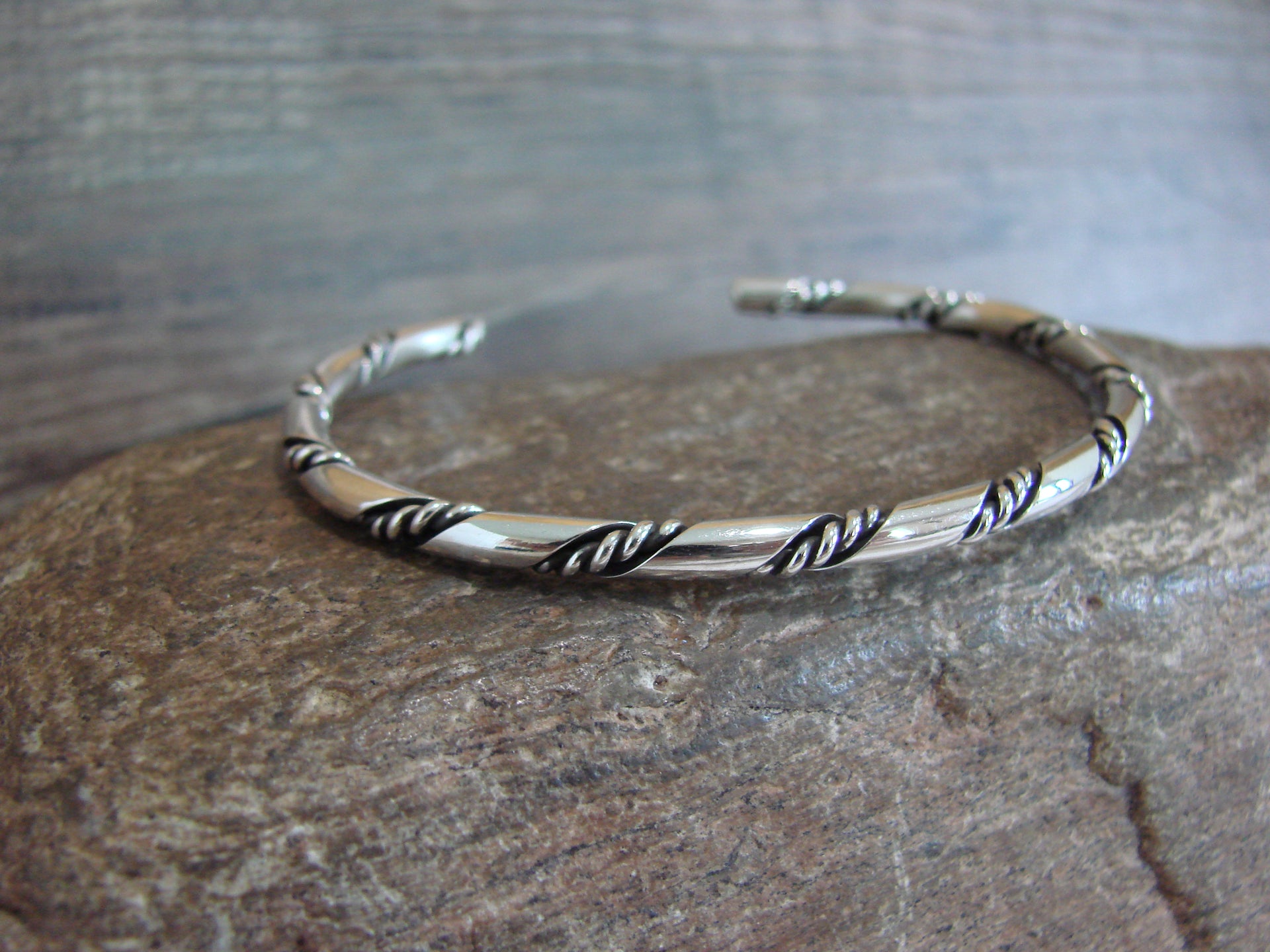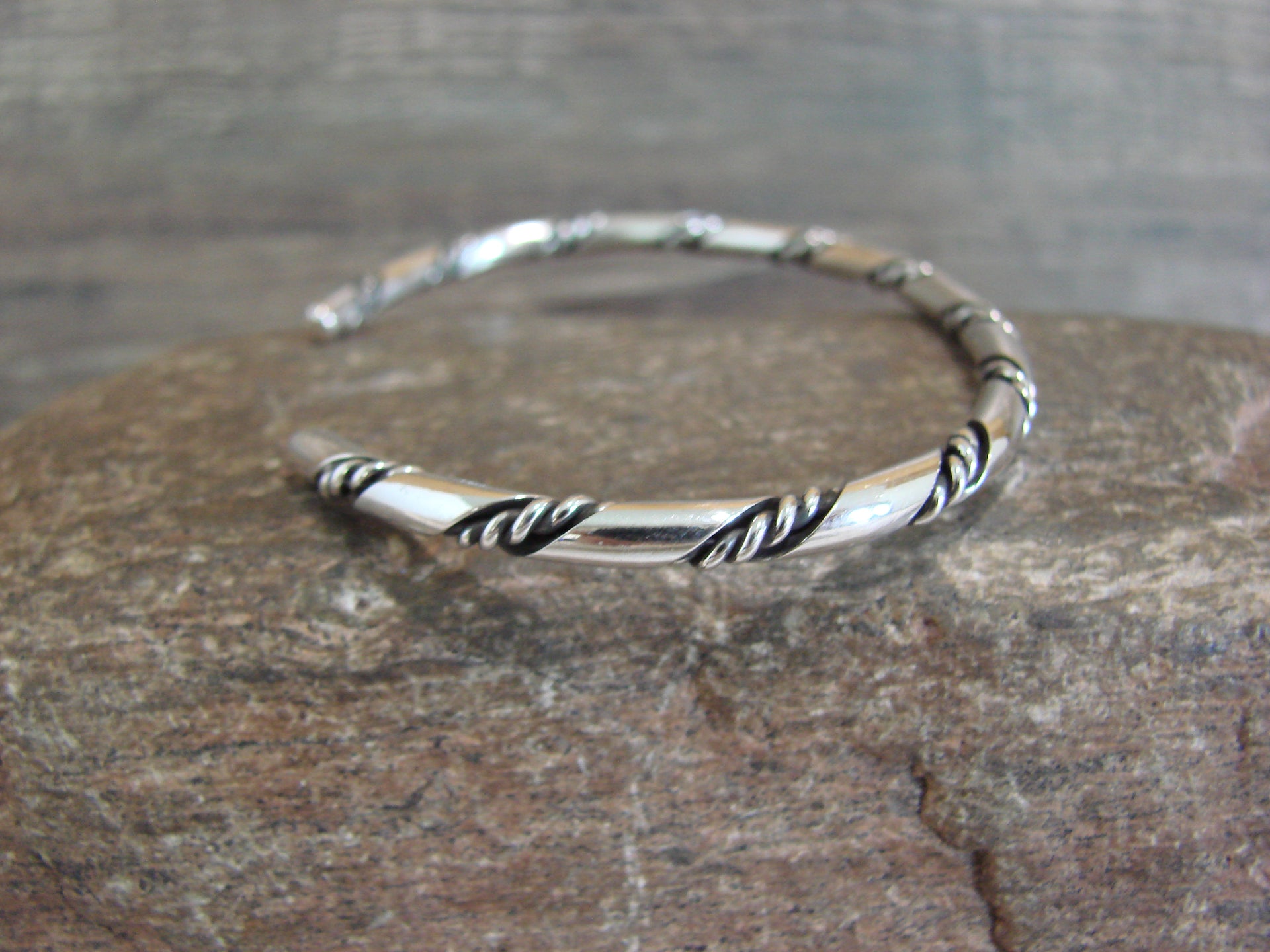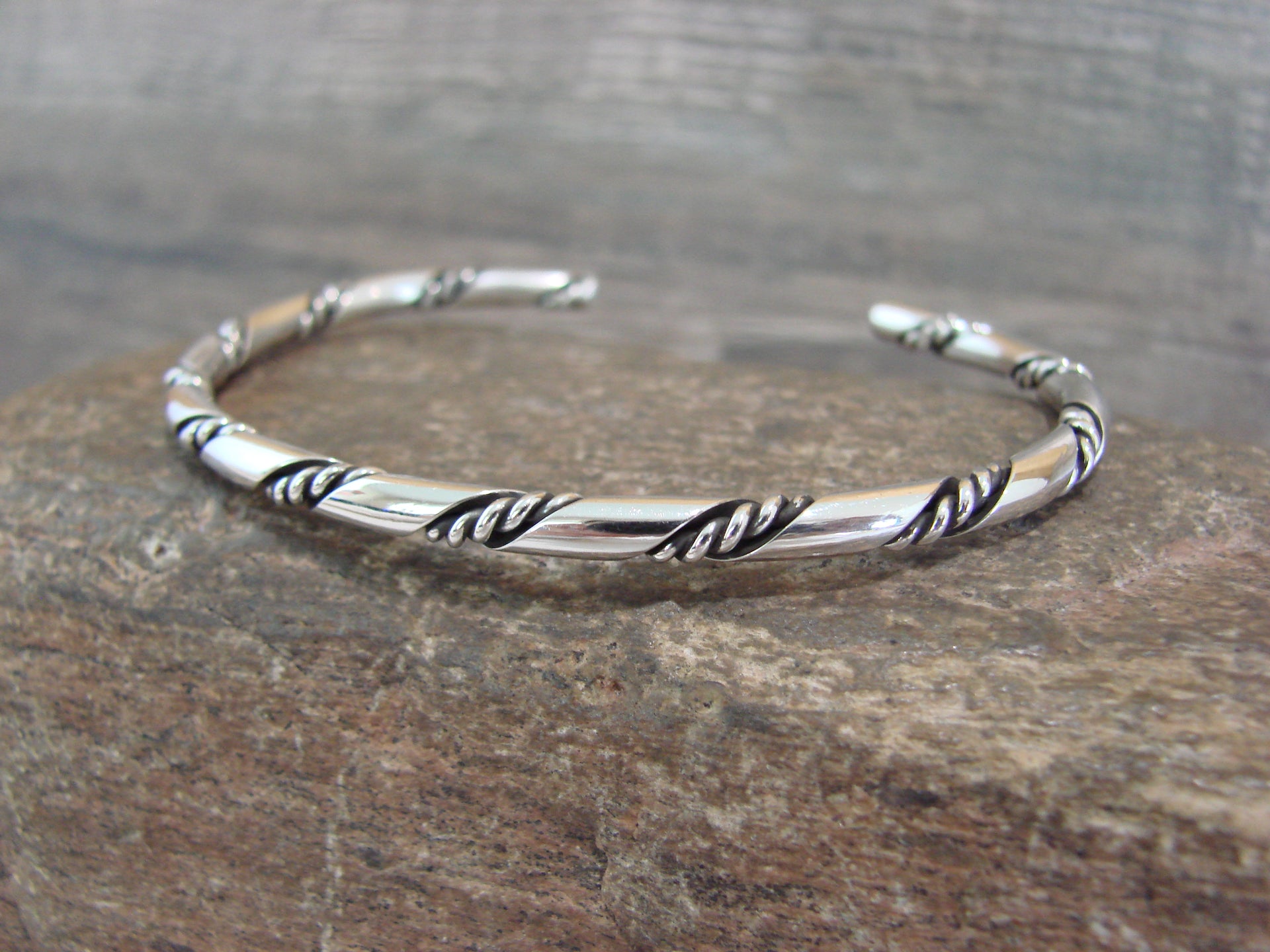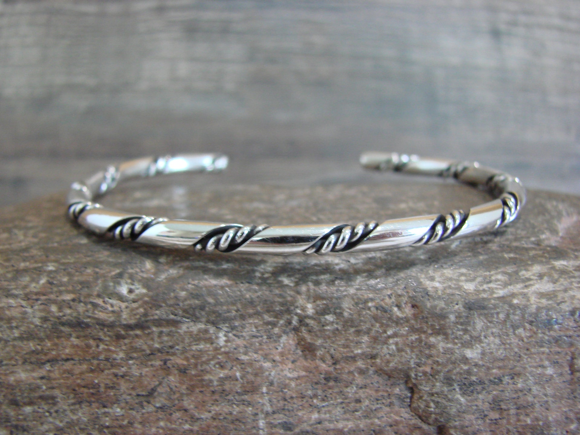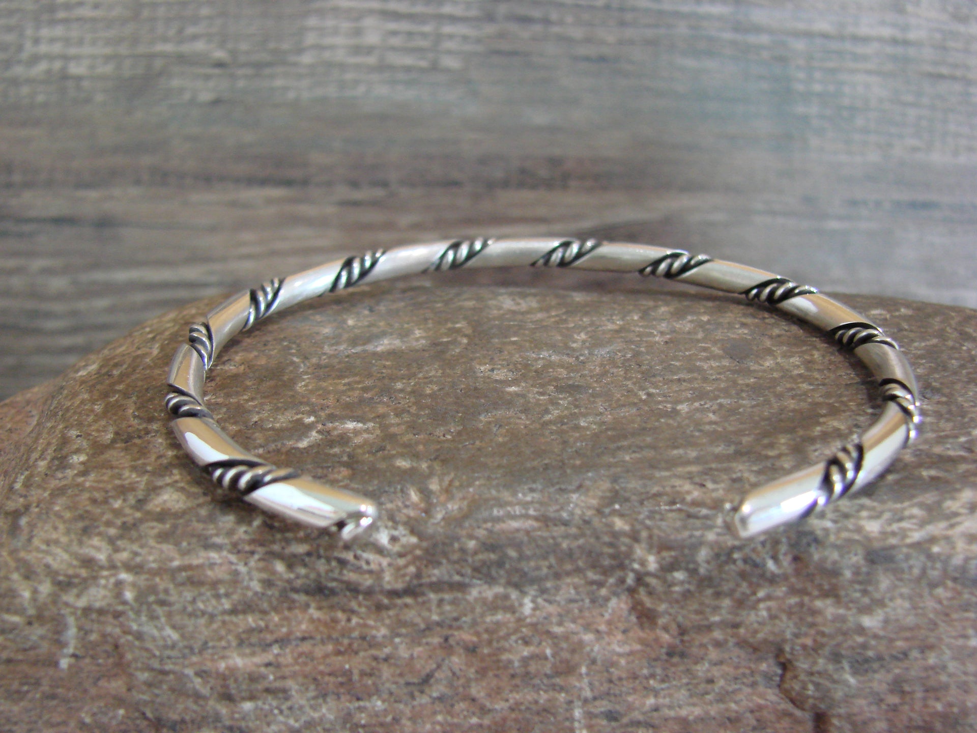 Native American Navajo Indian 1/8" Twisted Sterling Silver Bracelet by Tahe