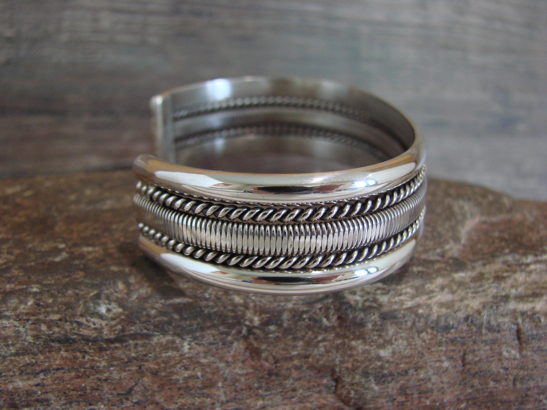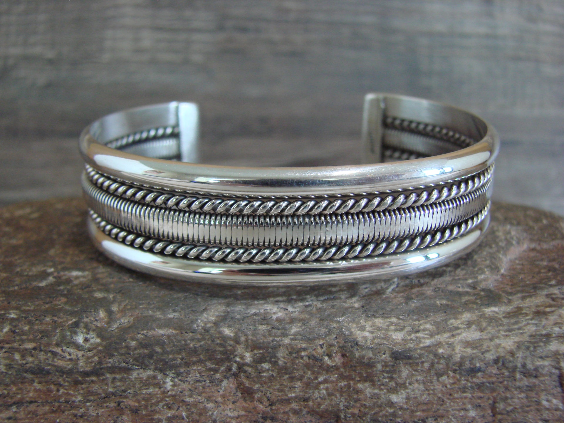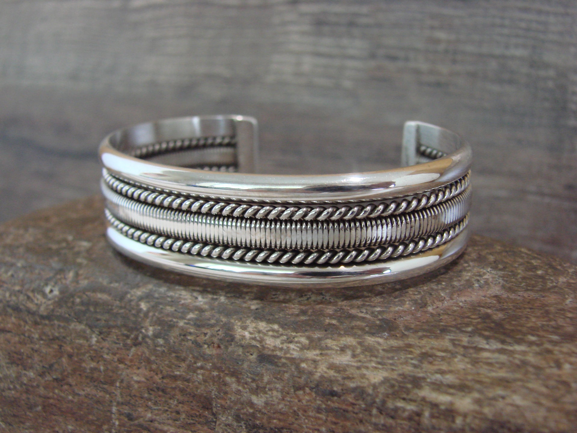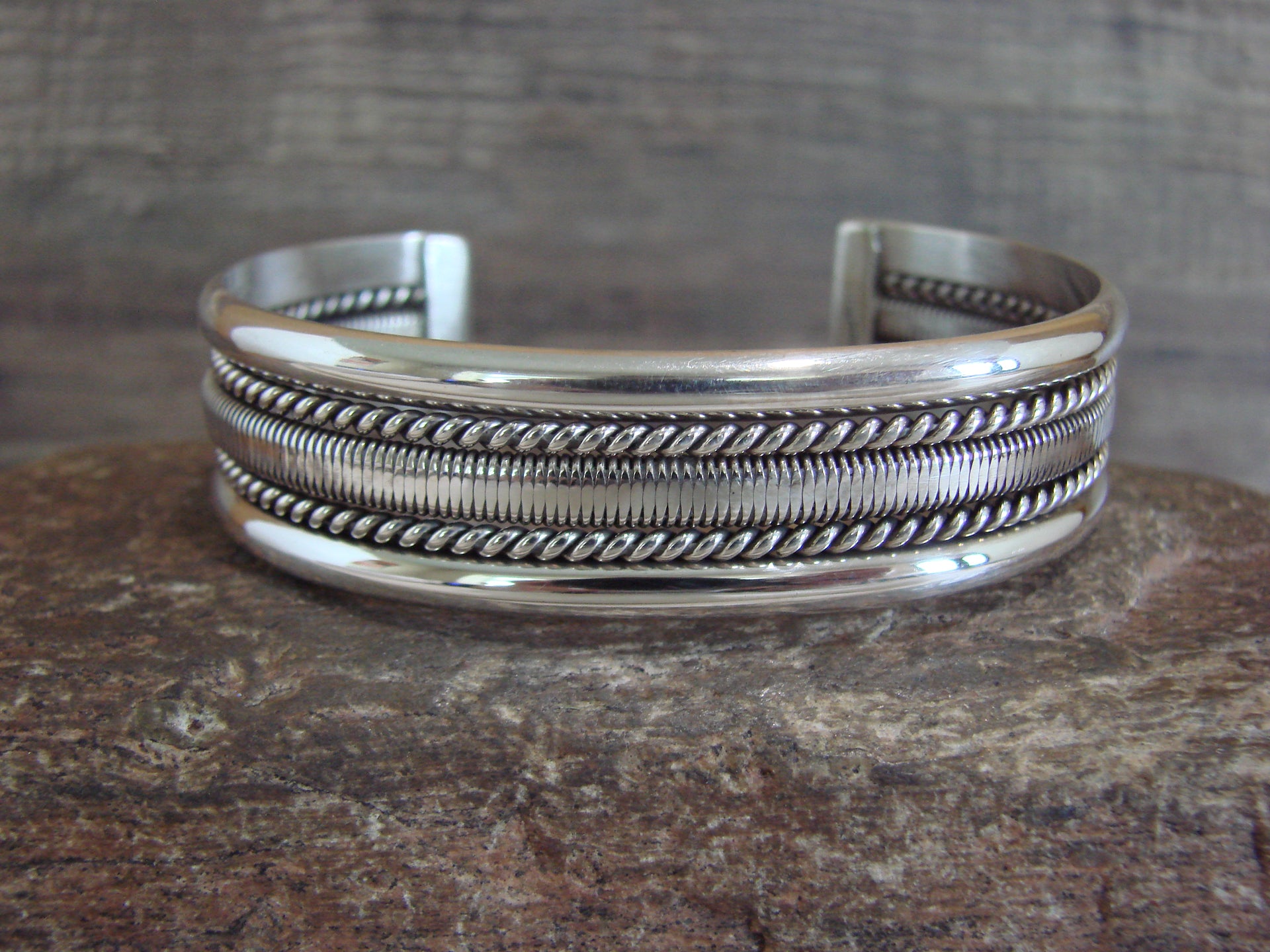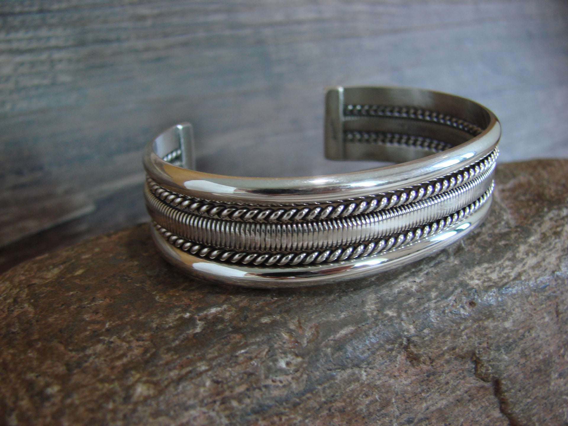 Genuine Native American Navajo Indian Sterling Silver Cuff Bracelet from Western New Mexico. This Stunning bracelet features Smooth Twisted Sterling Silver throughout. Nicely polished, this bracelet is Gorgeous! Navajo Indian handmade by Elaine Tahe. Stamped "Sterling" on the inner cuff. Free gift box and shipping included!