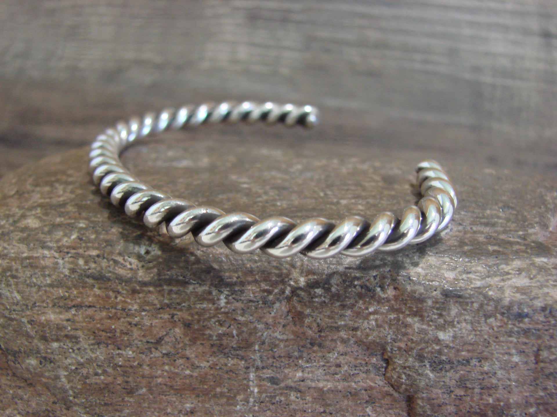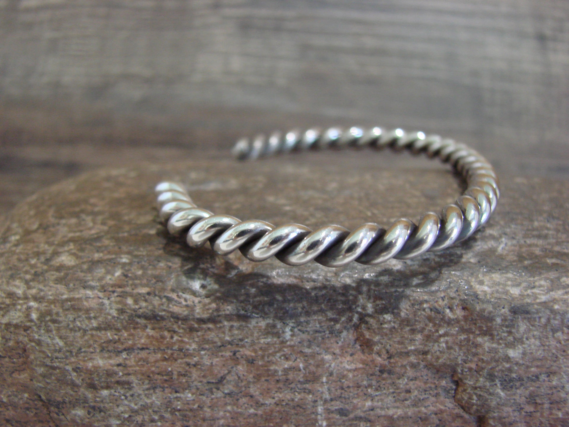 Native American Navajo Twisted Sterling Silver Bracelet by Tahe