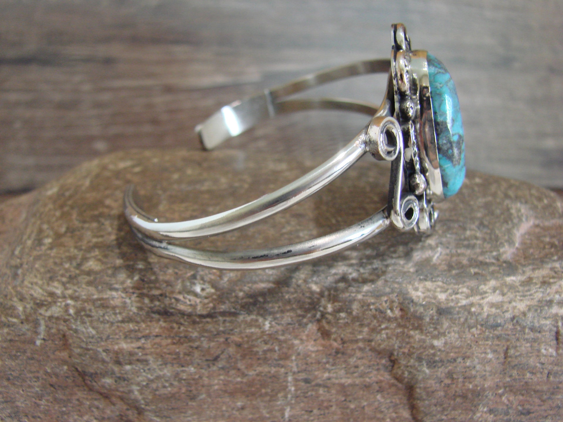 Native American Nickel Silver & Turquoise Bracelet by Cleveland