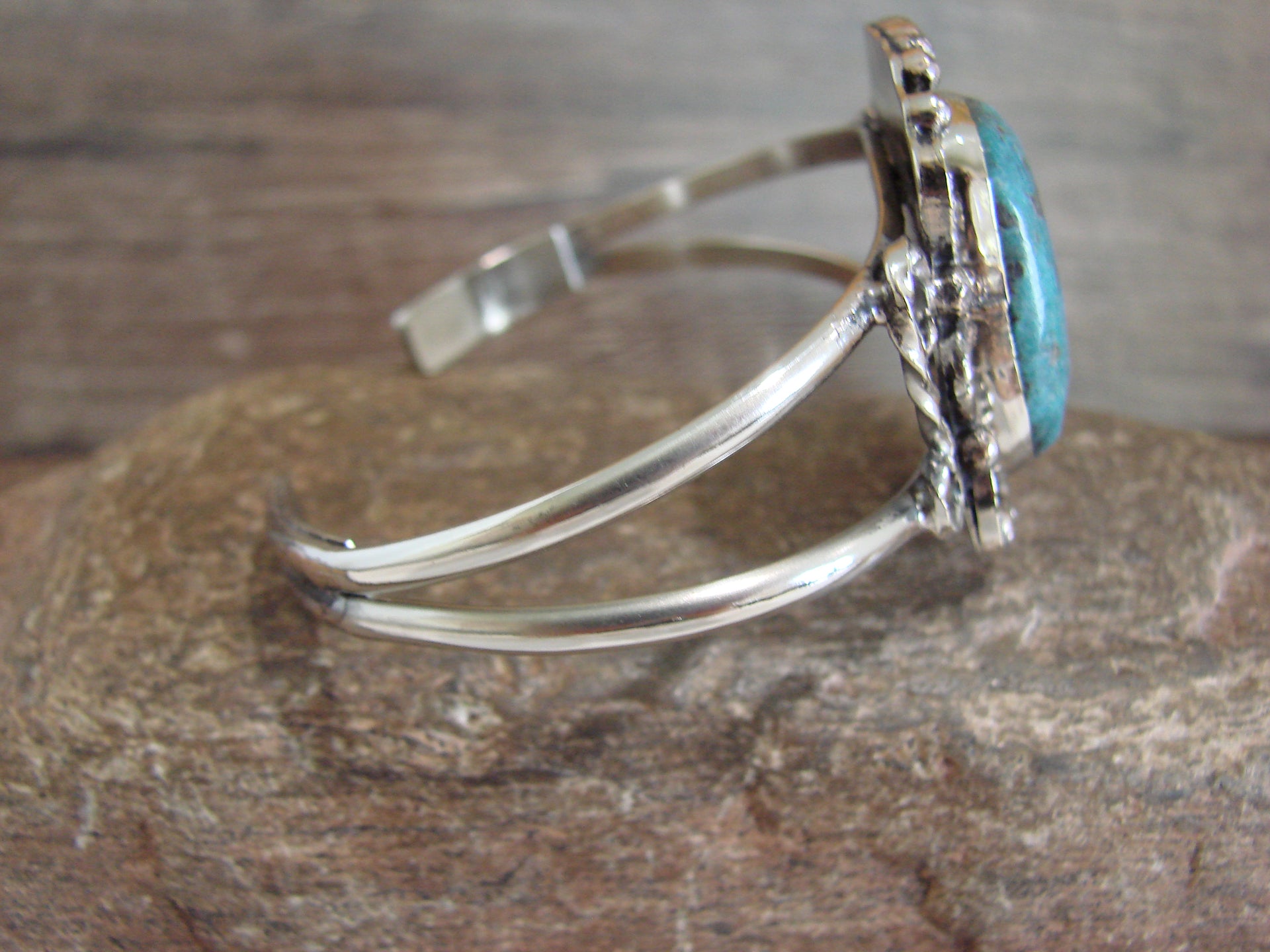 Native American Nickel Silver & Turquoise Bracelet by Cleveland