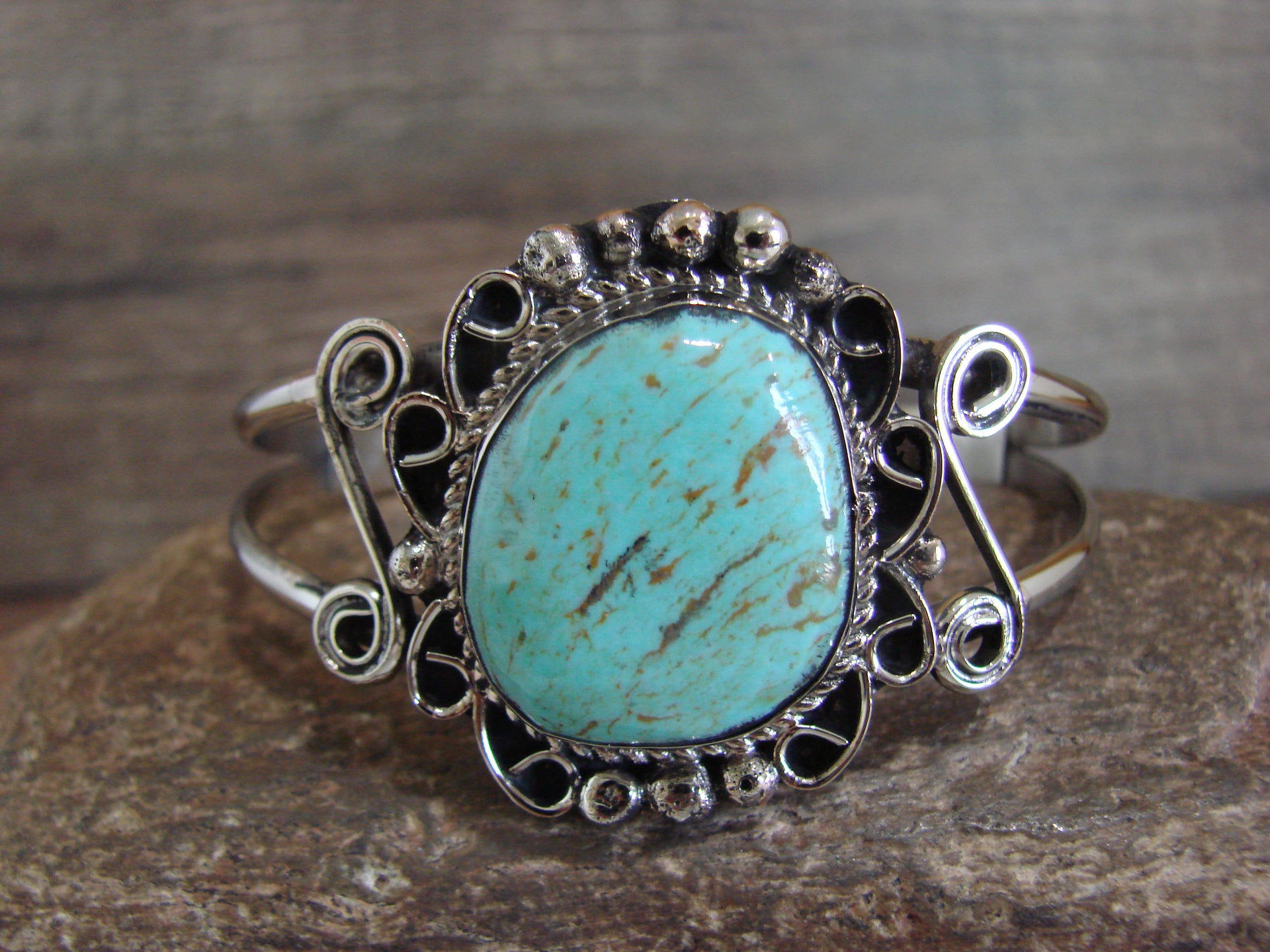 Native American Nickel Silver & Turquoise Bracelet by Cleveland
