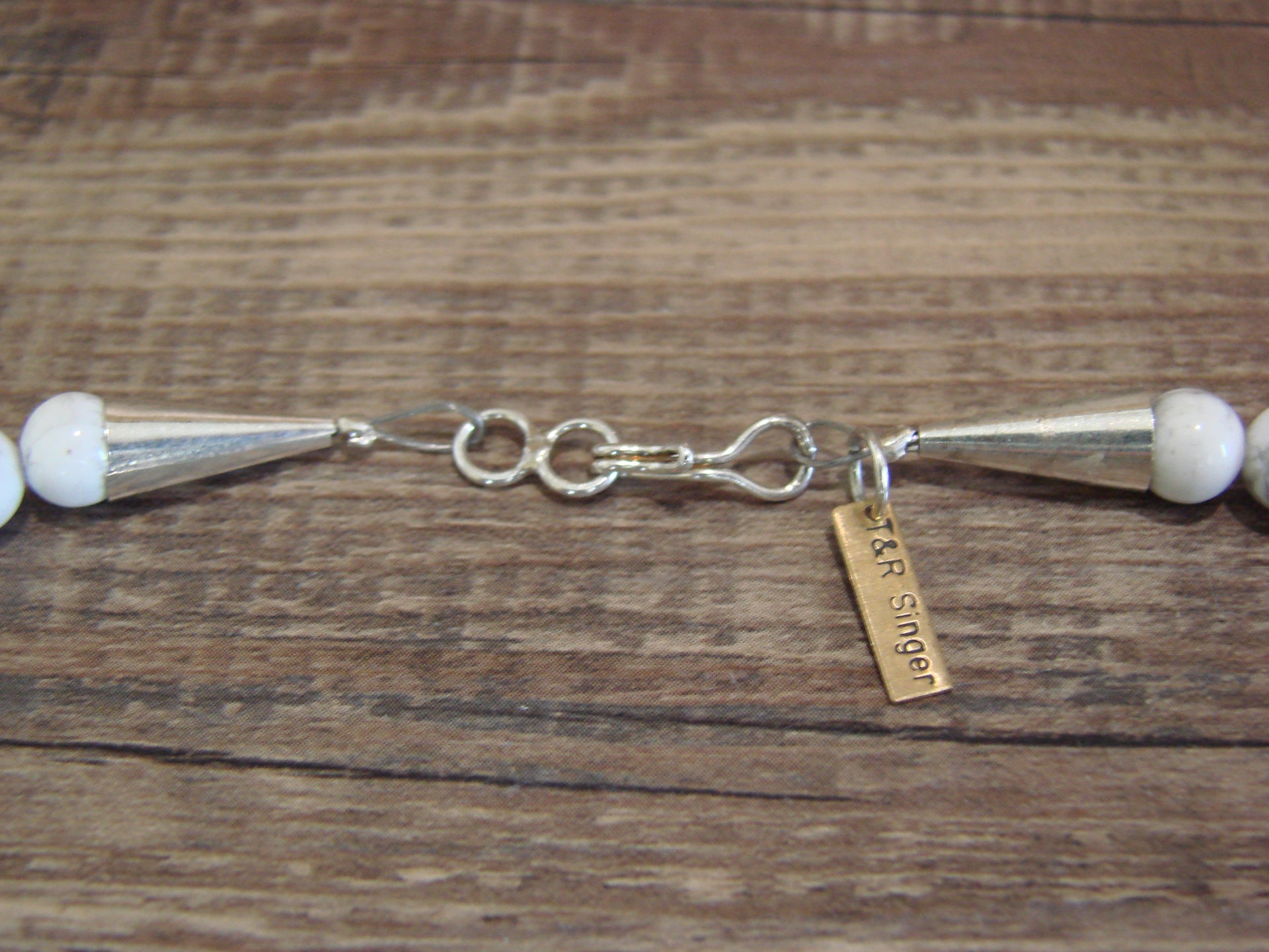 Native American Navajo Indian Howlite Gemstone Beaded Necklace from Western New Mexico. This stunning necklace features beautiful Howlite Beads accented with sterling silver and Multiple Gemstones. Finished with a sterling silver hook and eye closure this is a great necklace. These are high quality stones. This gorgeous piece is a handmade masterpiece! Hand strung by Rosita Singer, wife of the late Tommy Singer. This necklace is signed "T&R Singer". Free shipping in a gift box included!