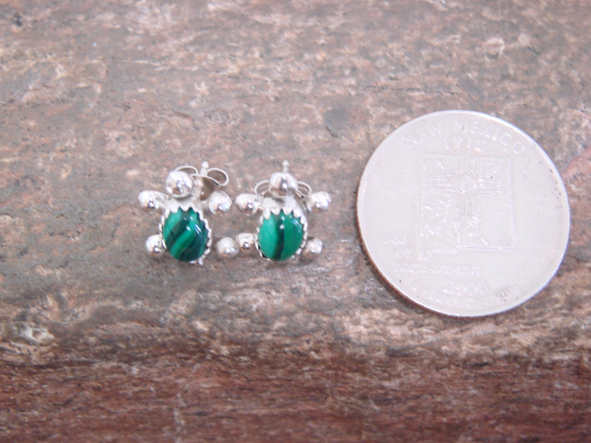 Native American Sterling Silver Malachite Turtle Post Earrings by Kinsel