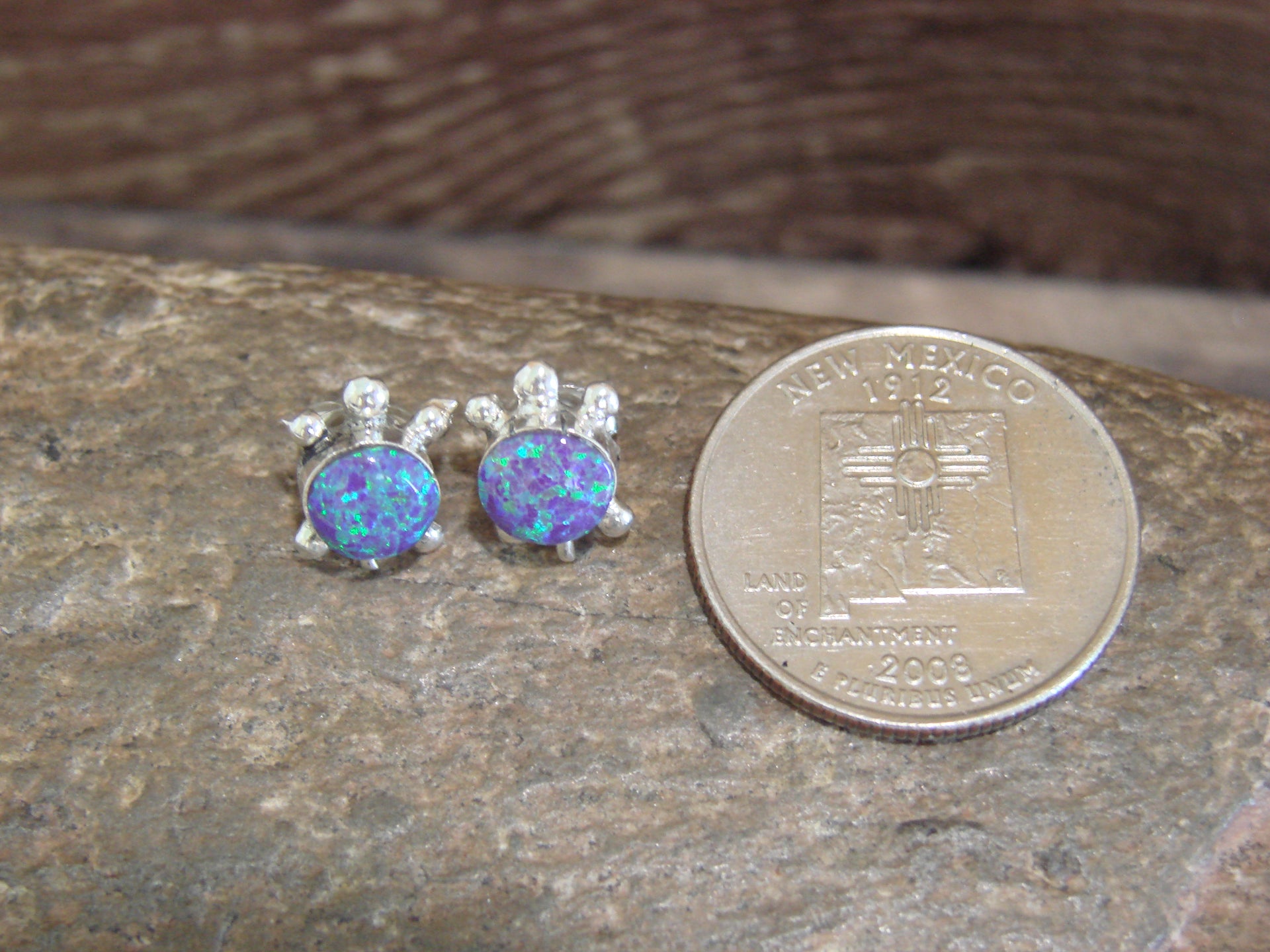 Native American Zuni Indian Sterling Silver & Opal Turtle Post Earrings from Western New Mexico. These Stunning earrings feature Lab Opal stones beautifully set into a sterling silver turtle setting. The sterling silver work surrounding the earrings is very nicely detailed and polished to a bright finish! Zuni Indian Handmade by Richard & Trista Siow. Unsigned. Free Shipping and Gift Box included!