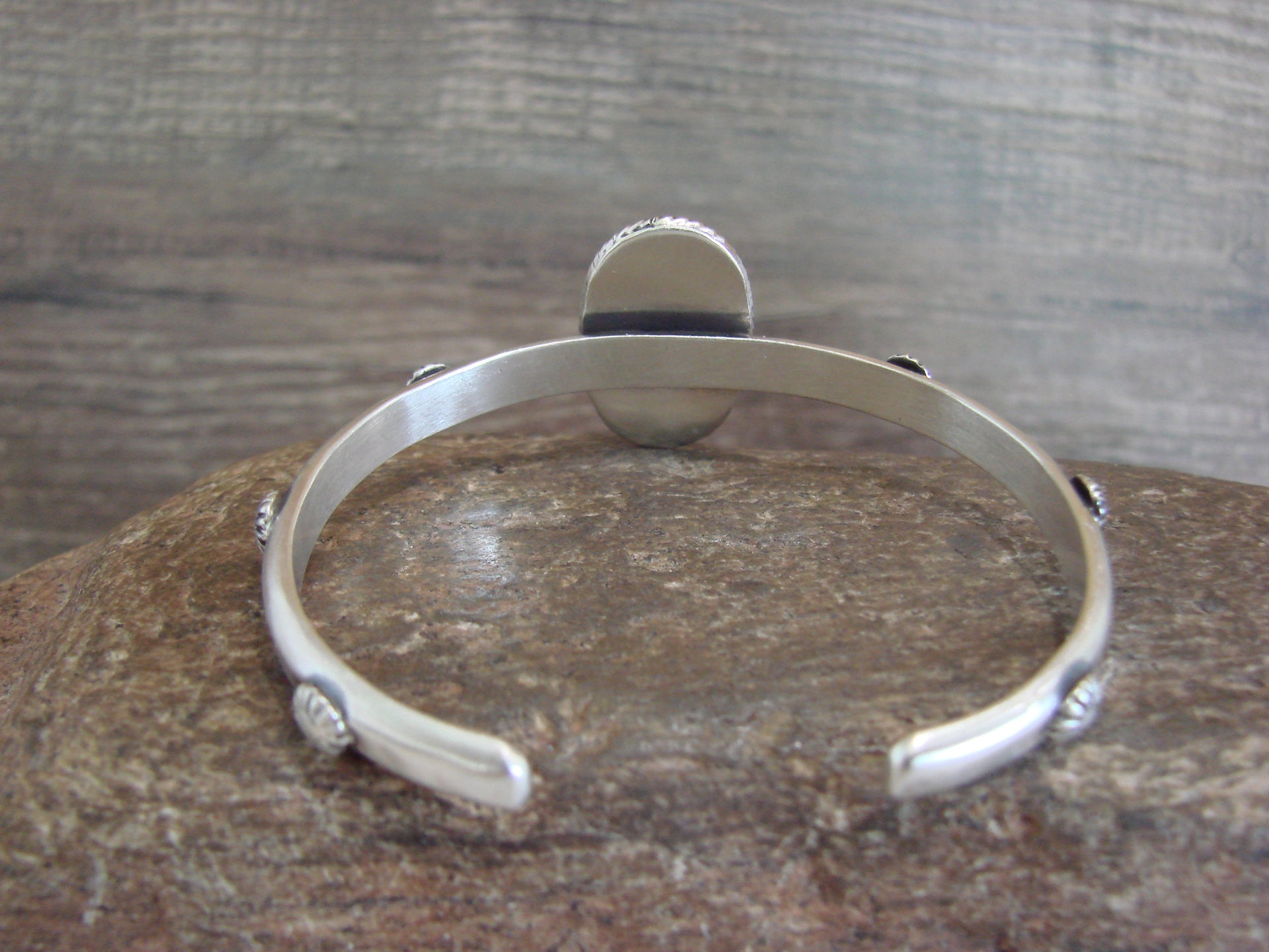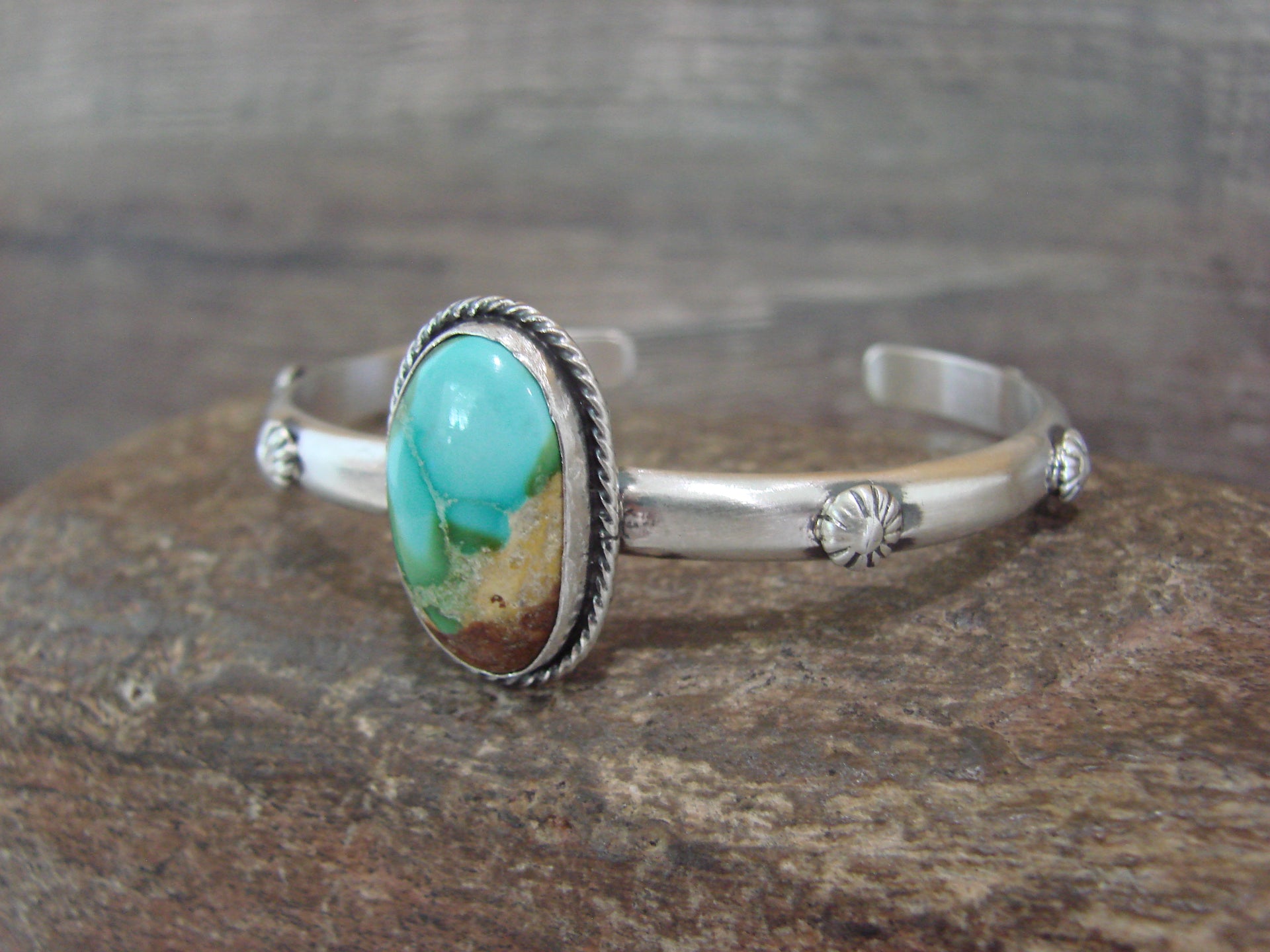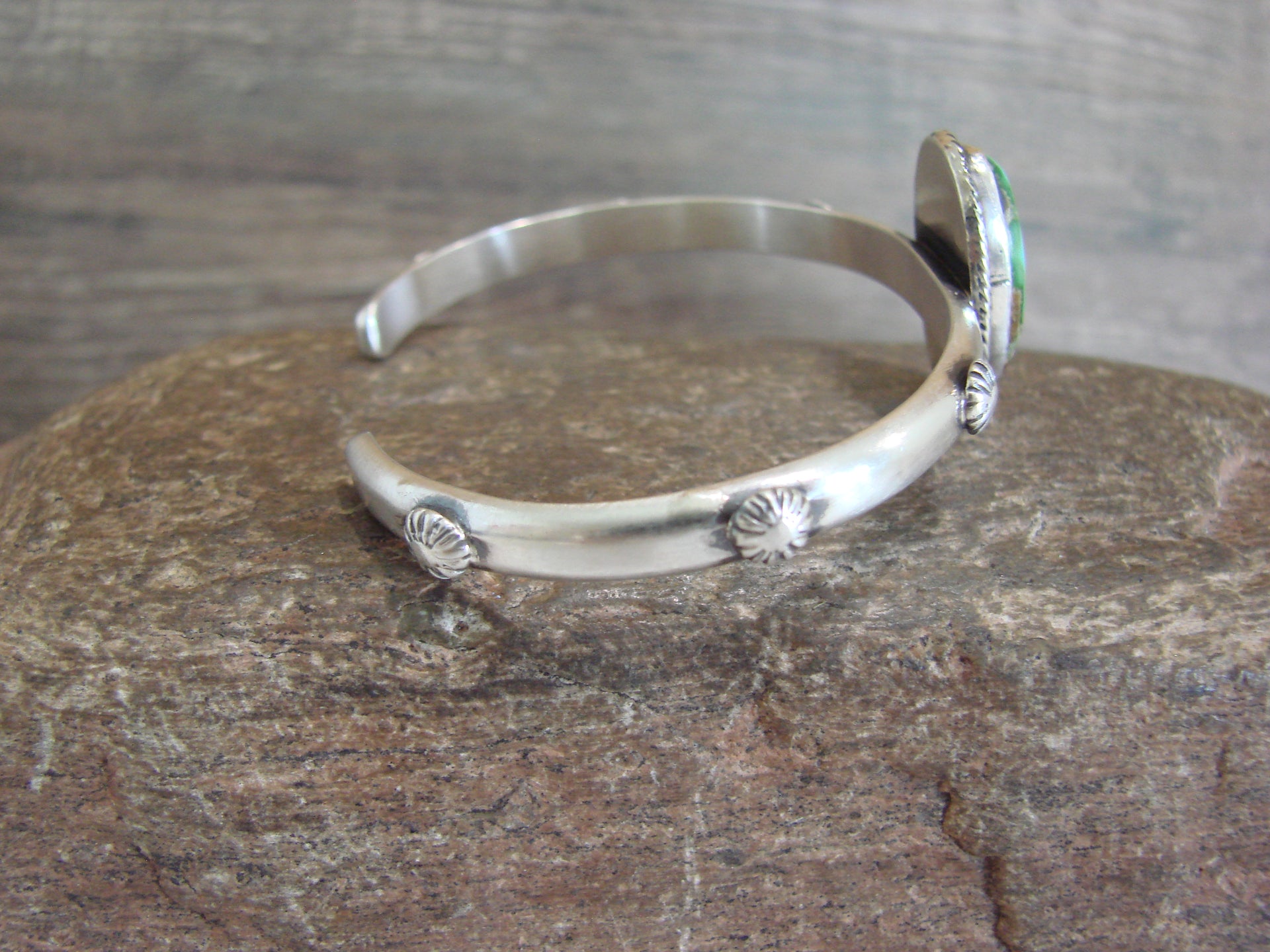 Genuine Native American Navajo Indian Sterling Silver & Sonoran Turquoise Bracelet from Western New Mexico. This Stunning bracelet features a Beautiful high quality, Genuine, Sonoran Turquoise stone intricately set into Smooth Sterling Silver bezel setting. Sterling Silver Details surround the stone. Fine Navajo Silversmith workmanship quality makes this bracelet a beautiful hand made masterpiece! Navajo Indian handmade by Samuel Yellowhair. Signed "SY" and Stamped "Sterling" on the inner band. Free gift box and shipping included!