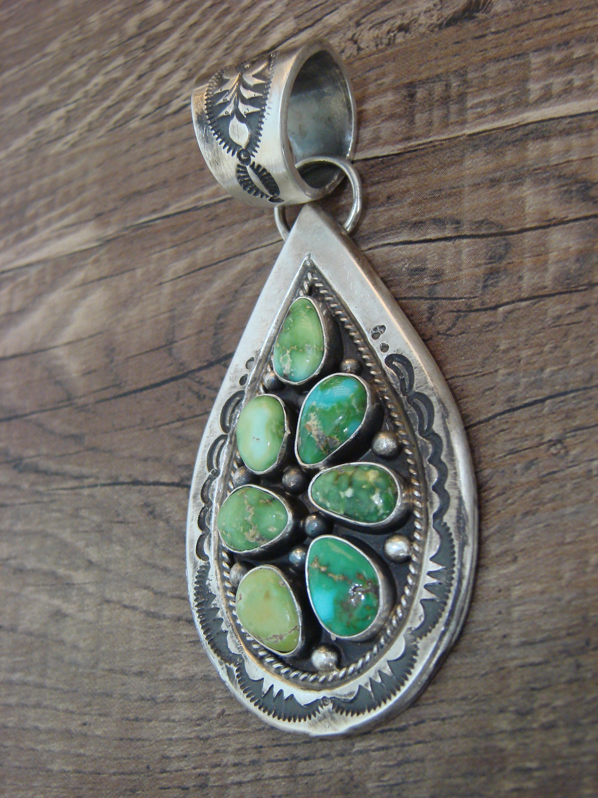 Native American Sterling Silver & Sonoran Turquoise Cluster Pendant by Lewis