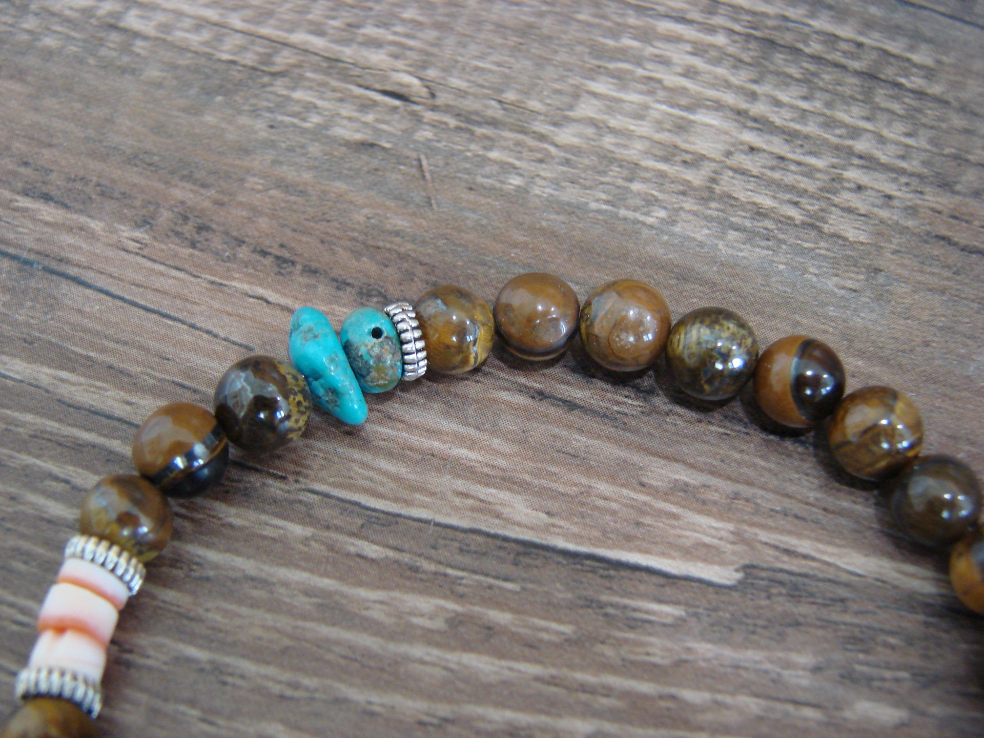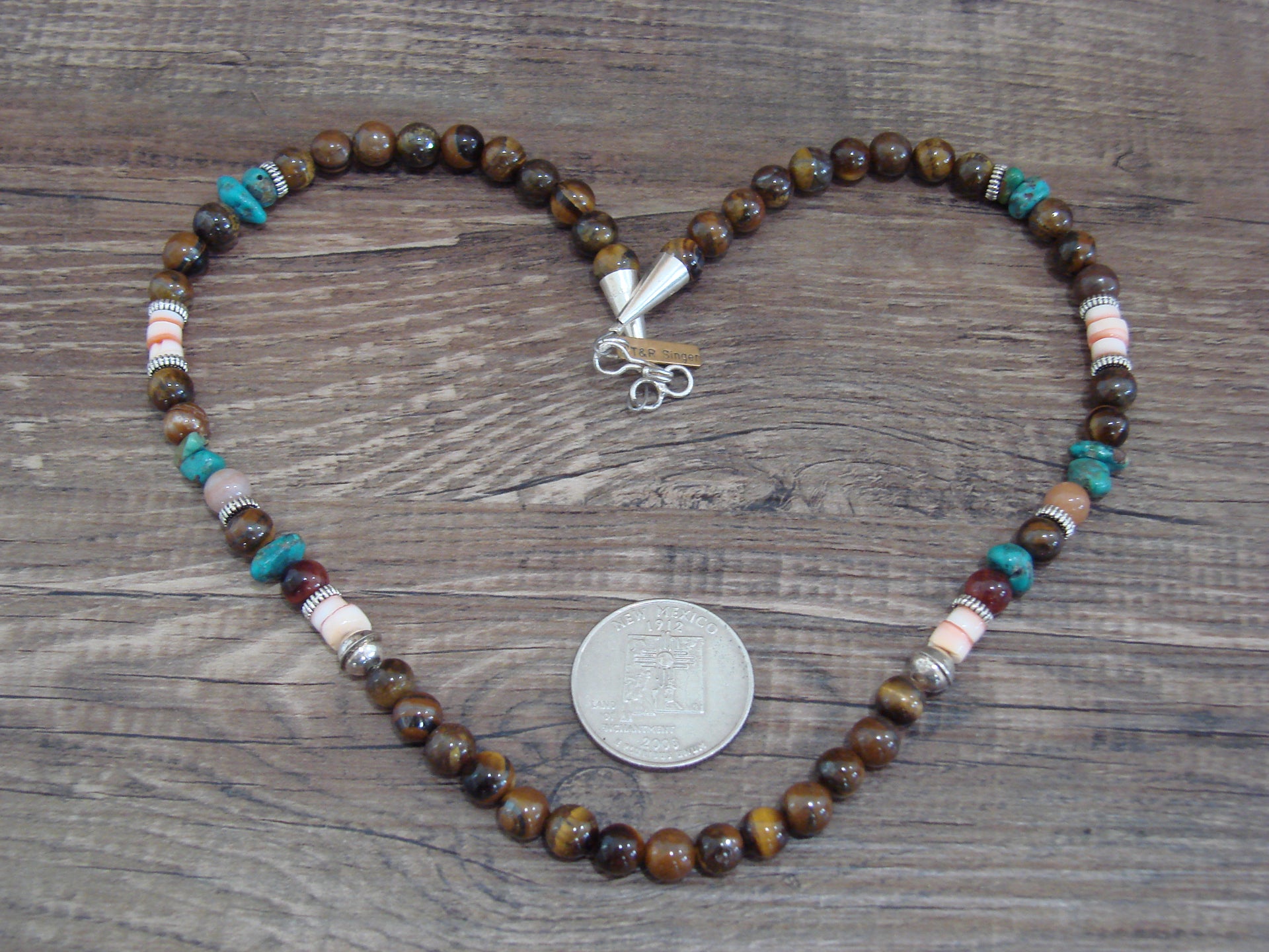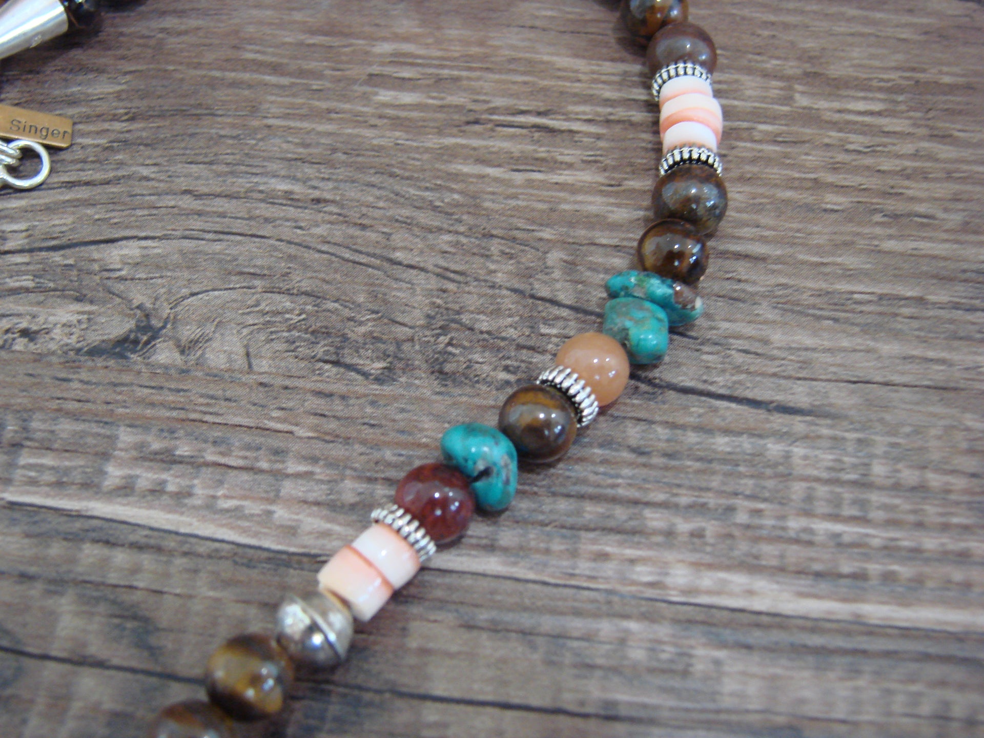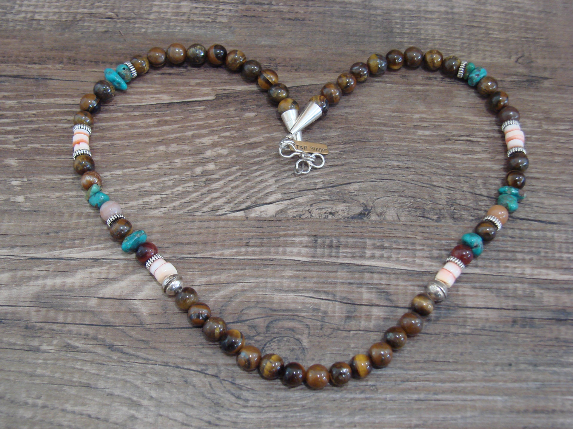 Native American Sterling Silver & Tiger Eye 18" Gemstone Necklace by Singer