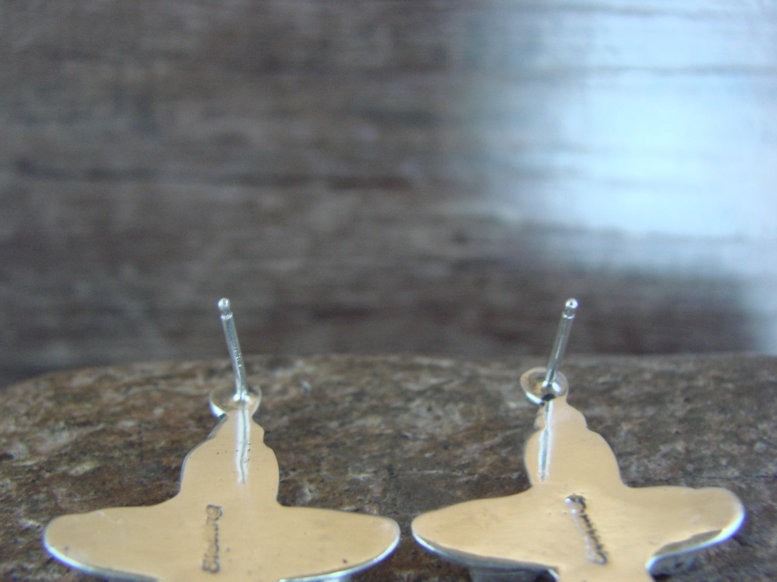 Native American Zuni Indian Silver & Turquoise Cross Post Earrings from Western New Mexico. These post Cross Earrings feature 5 beautiful genuine Turquoise stones each set into sterling silver bezel settings. This Cross design features stunning traditional hand stamping throughout. Hand made by Zuni Silversmith C. Iule. Stamped "C. Iule" and "Sterling" on the back. Free Shipping with a gift box included!