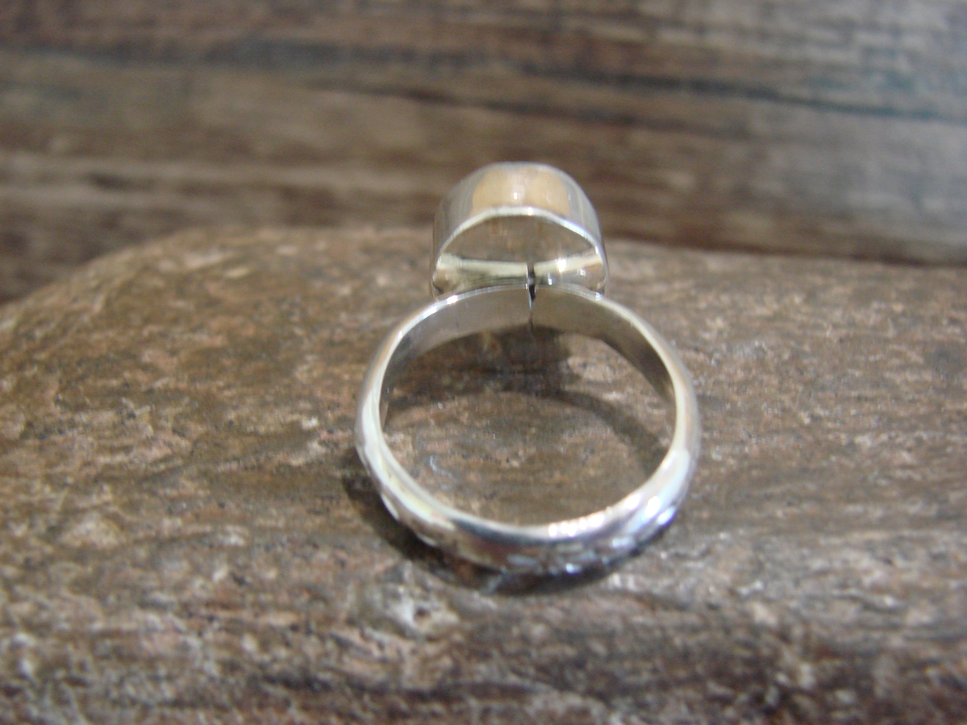 Genuine Native American Navajo Indian Sterling Silver & Turquoise Ring from Western New Mexico. This stunning ring features a Genuine Turquoise stone Beautifully set into a Crown Sterling Silver bezel setting. Hand Stamping Surrounds the ring band. Handmade by Navajo silversmith F. Pino. Unsigned. Free shipping and gift box included!