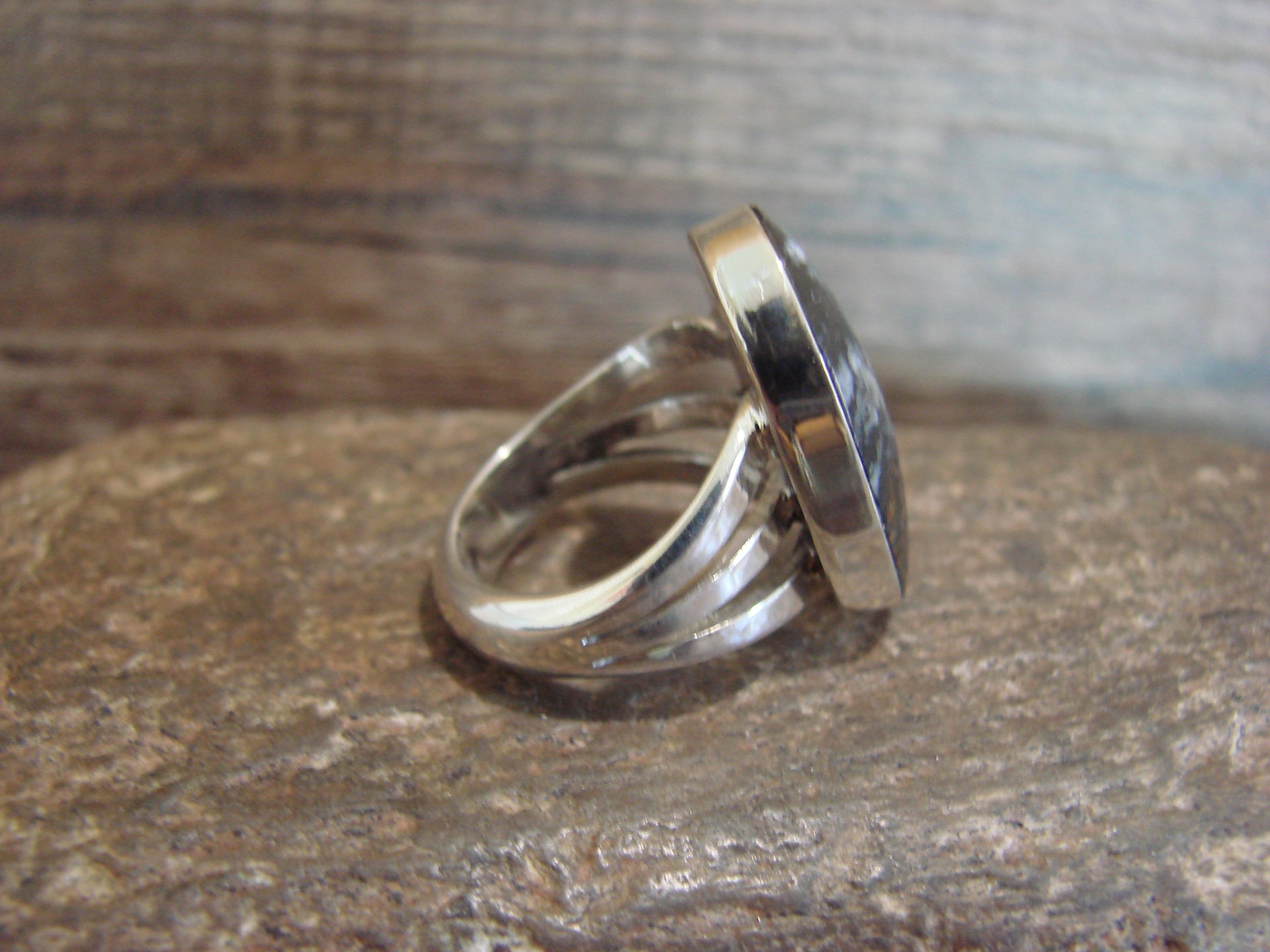 Genuine Native American Navajo Indian Sterling Silver & White Buffalo Turquoise Ring from Western New Mexico. This stunning ring features a Genuine White Buffalo Turquoise stone Beautifully set into a Smooth Sterling Silver bezel setting. Handmade by Navajo silversmith Gilbert Smith. Hallmarked on the back. Free shipping and gift box included!