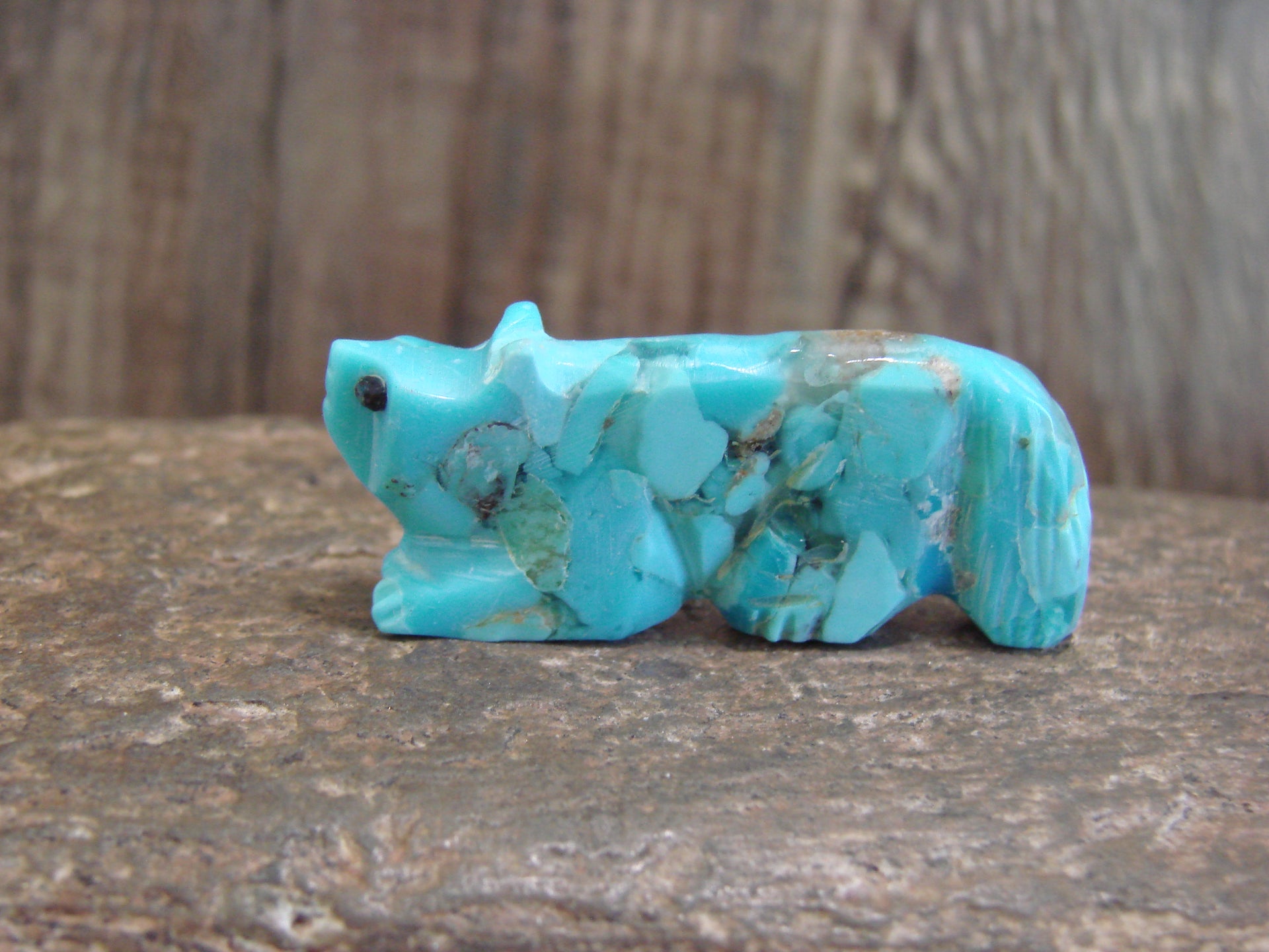 Native American Zuni Indian Hand Carved Fox Fetish from the Zuni Pueblo in Western New Mexico. This Stunning Fetish is Hand Carved out of a beautiful piece of Turquoise. Jet is used for both the eyes. This is a unique and stunning piece! Handmade and signed "DL" by the Zuni carver Denette Latte. Free Shipping included!