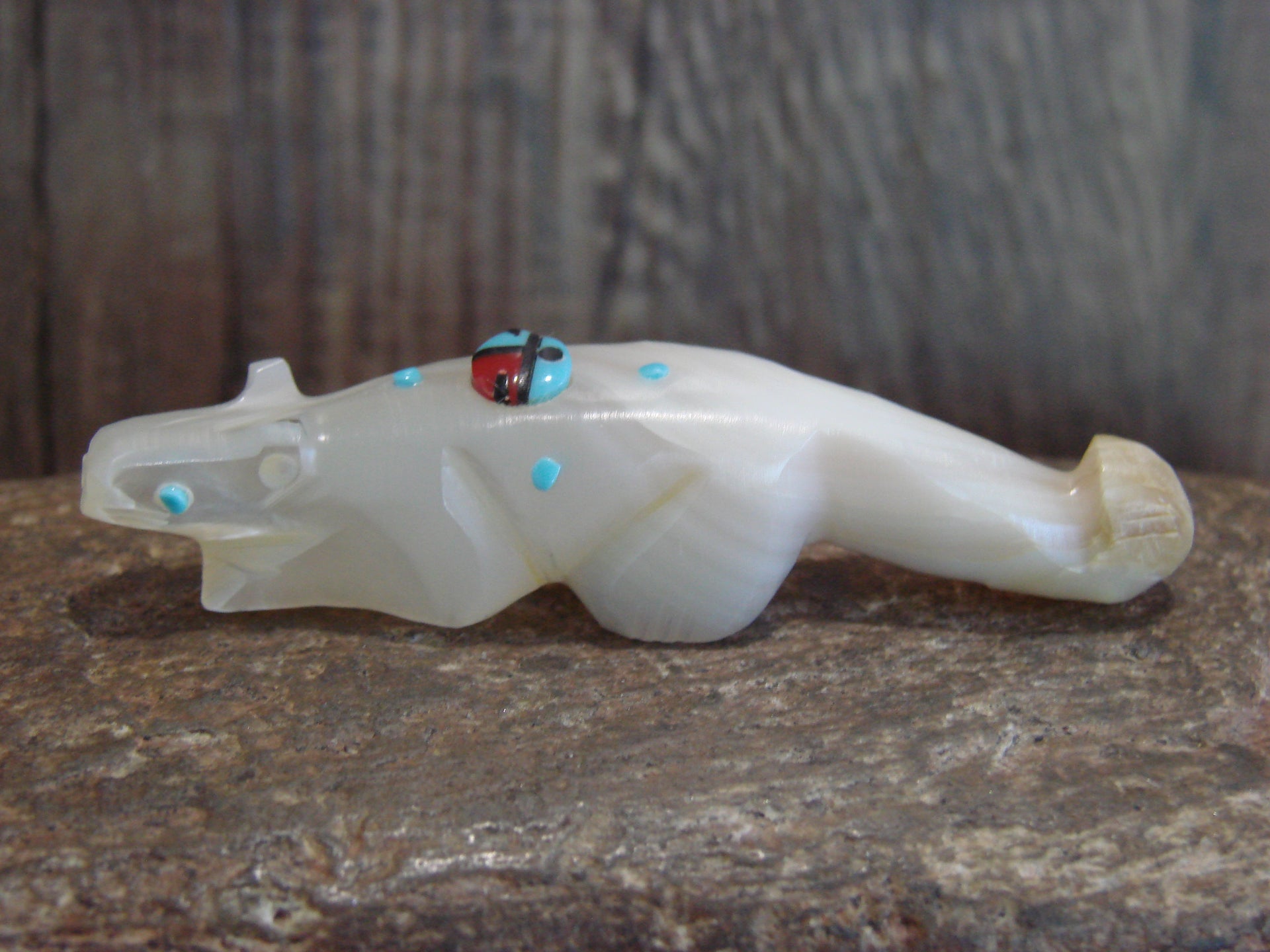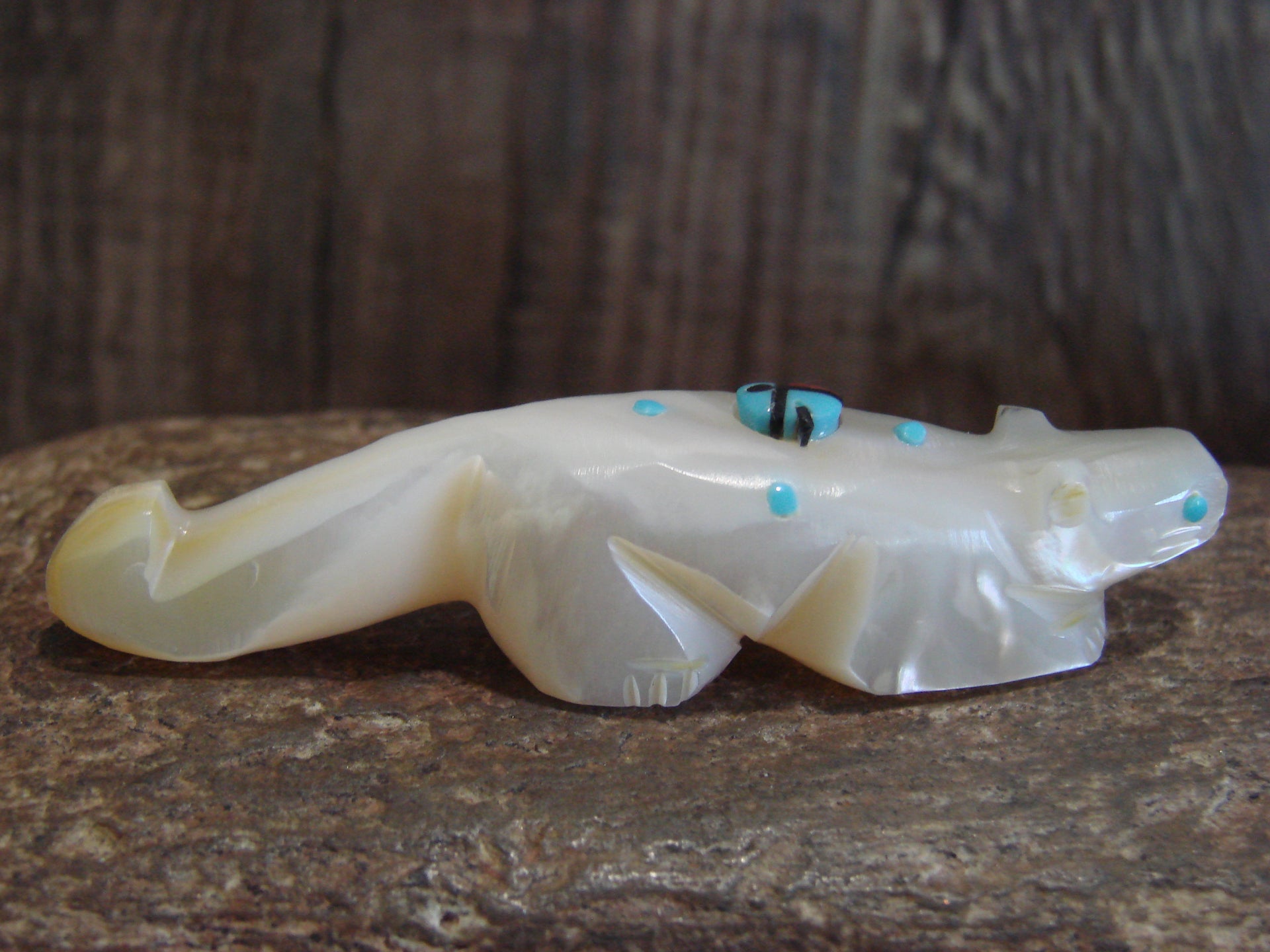 Native American Zuni Indian Hand Carved Mother of Pearl Otter Fetish- Latte