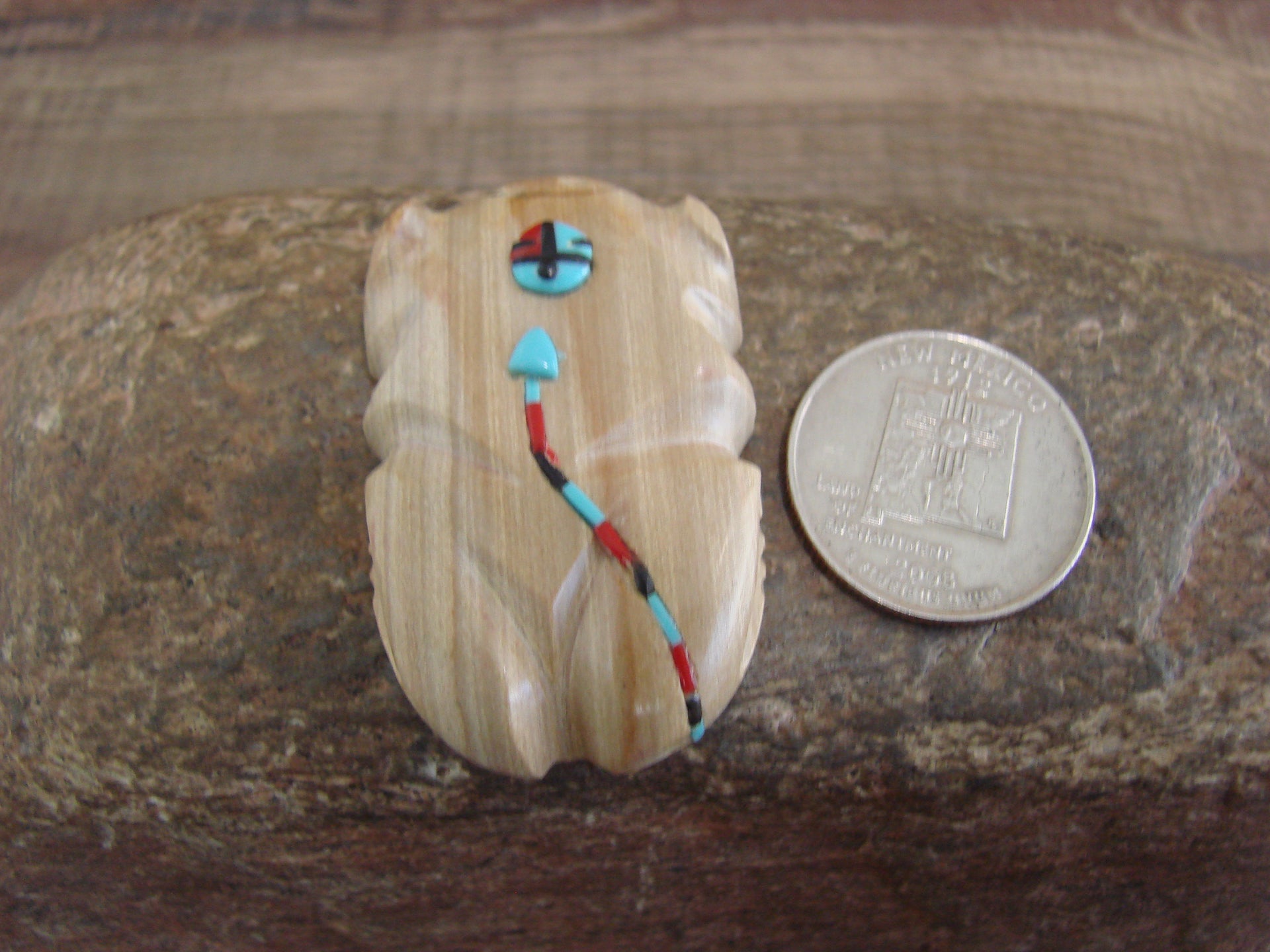 Authentic Native American Zuni Indian Hand Carved Heartline Frog Fetish from the Zuni Pueblo in Western New Mexico. This Stunning Fetish is Hand Carved out of a beautiful piece of Jasper. Turquoise is used for both the eyes. This is a unique and stunning piece! Handmade by the Zuni carver Danette Laate. Signed on the bottom. Free Shipping included!