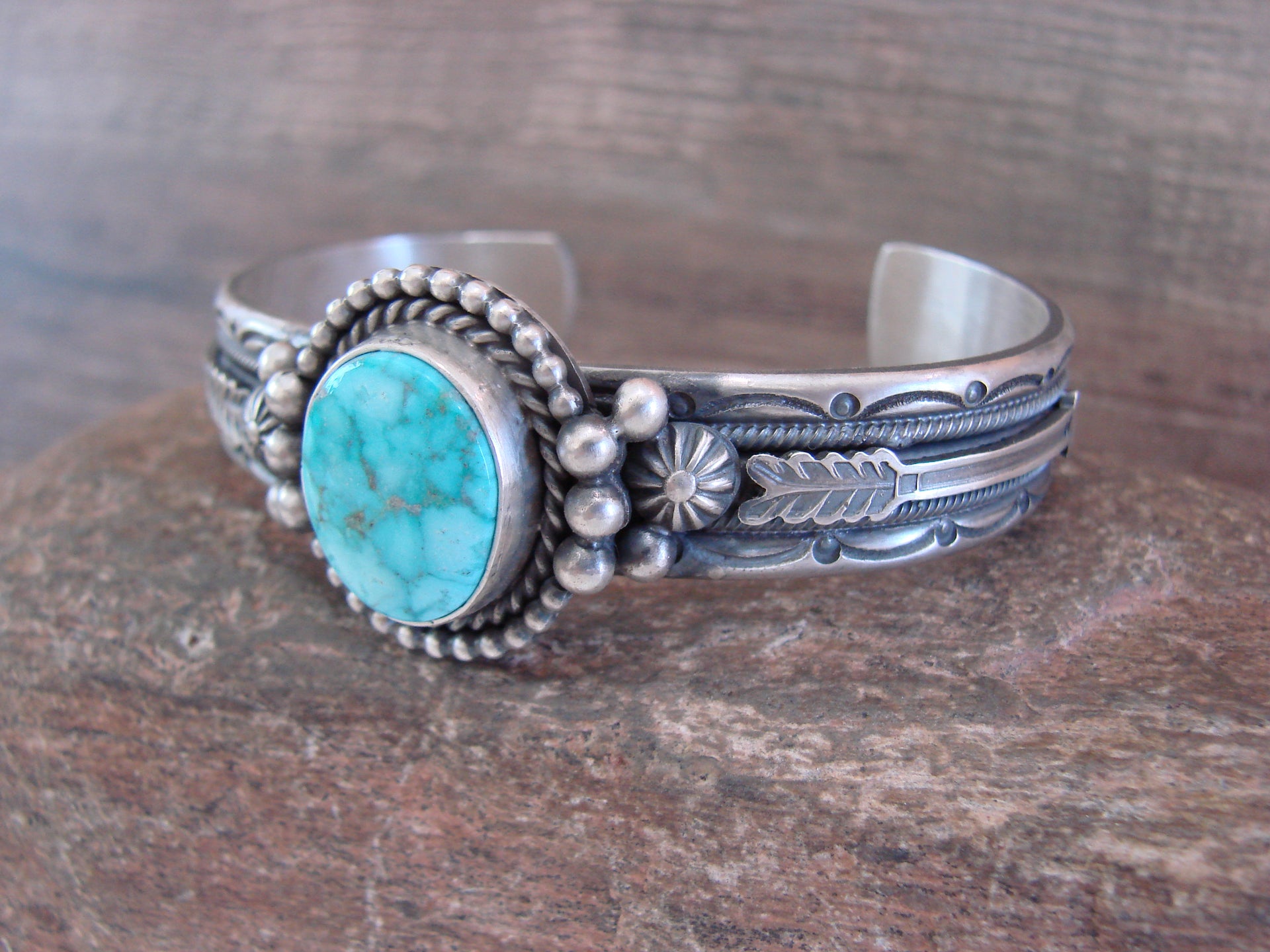 Navajo Indian Sterling Silver & Turquoise Arrow Bracelet Signed Calladitto