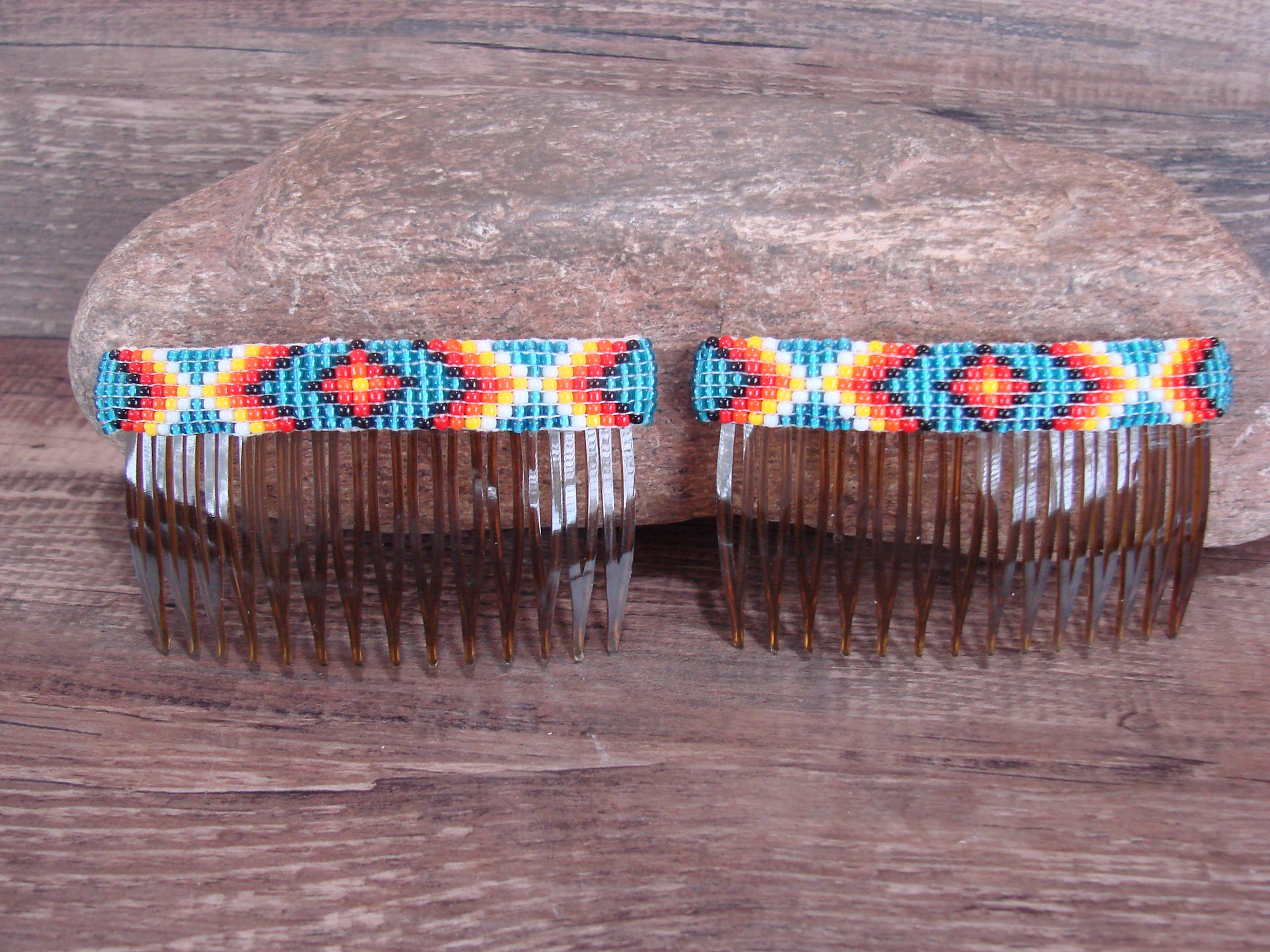 Navajo Indian Hand Beaded Hair Comb Set by Cleveland