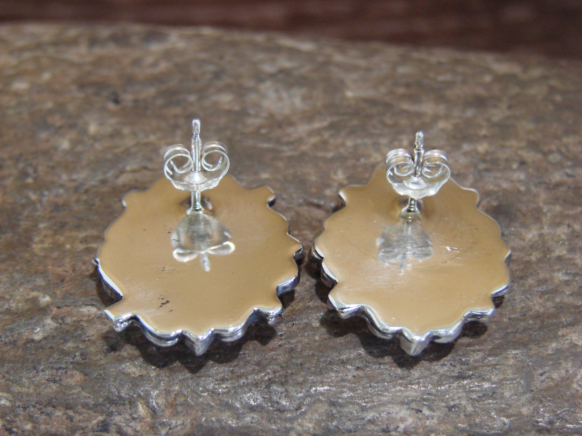 Native American Navajo Indian Turquoise Bear Paw Post Earrings from Western New Mexico. These earrings feature a Turquoise stone set into a beautiful sterling silver setting. The Bear Paw is cut out around the stone giving these a shadow box look. Navajo Indian hand made by Annie Spencer. Unsigned. Free Shipping and Gift Box included!