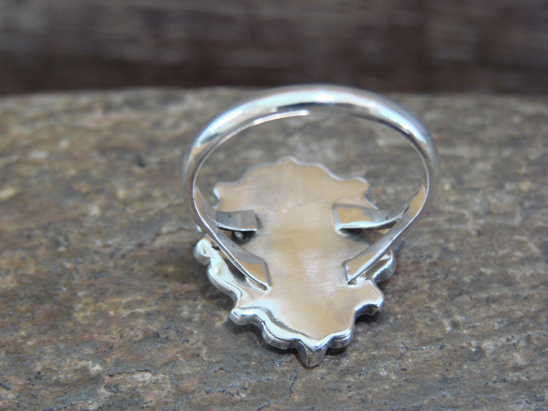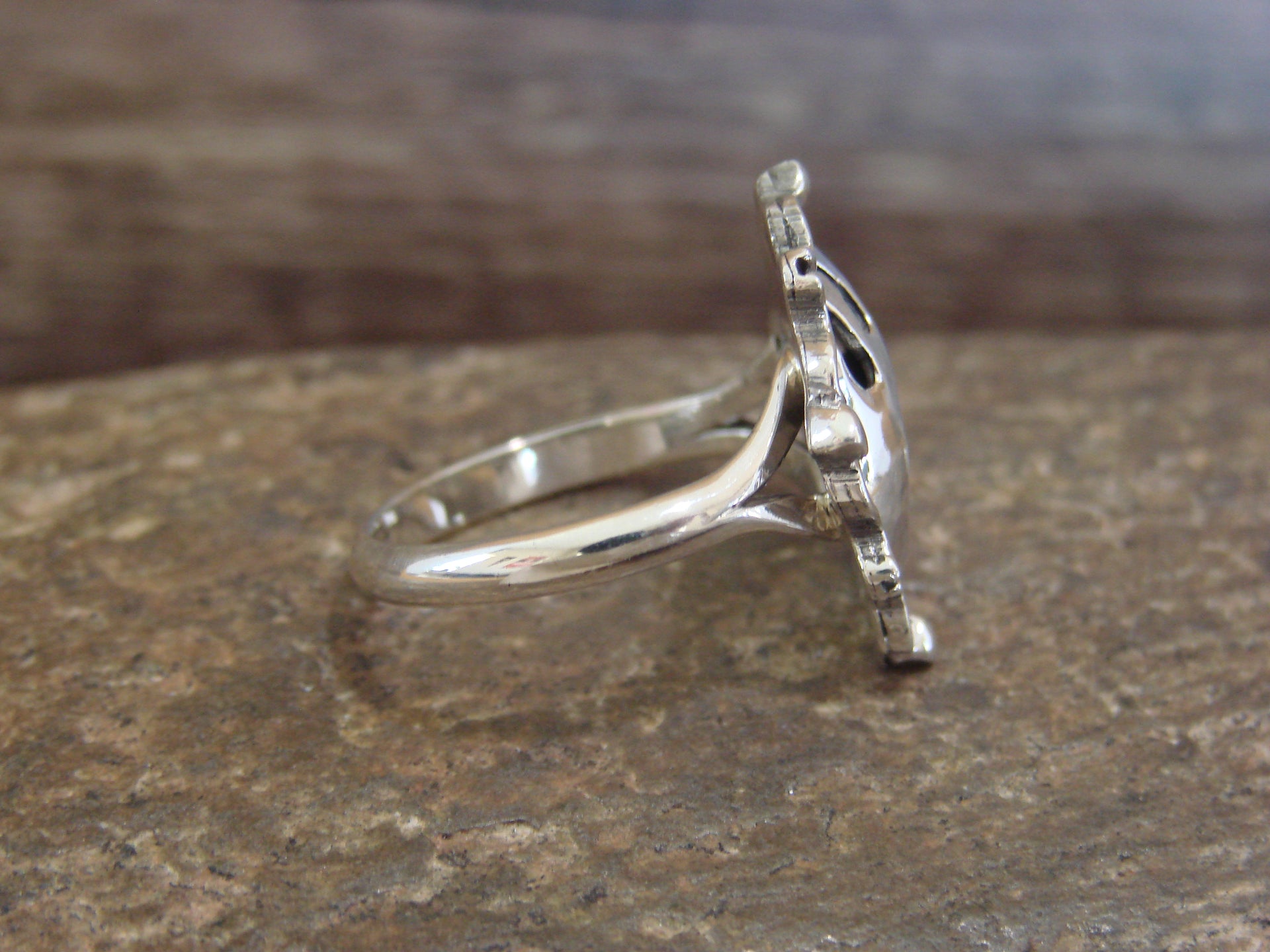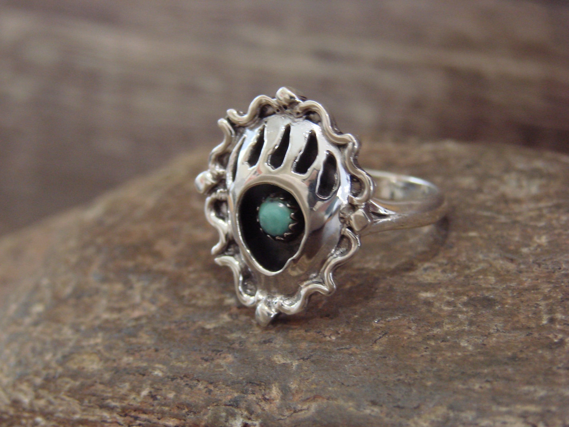 Genuine Native American Navajo Indian Turquoise Bear Paw Ring from Western New Mexico. This ring features a Turquoise stone set into a beautiful shadow box sterling silver bear paw setting. This is a beautiful ring polished to a bright shine! Navajo Indian hand made by Navajo Silversmith Betty Hawthorne. Stamped "Sterling" on the inner band. Free gift box and shipping included!