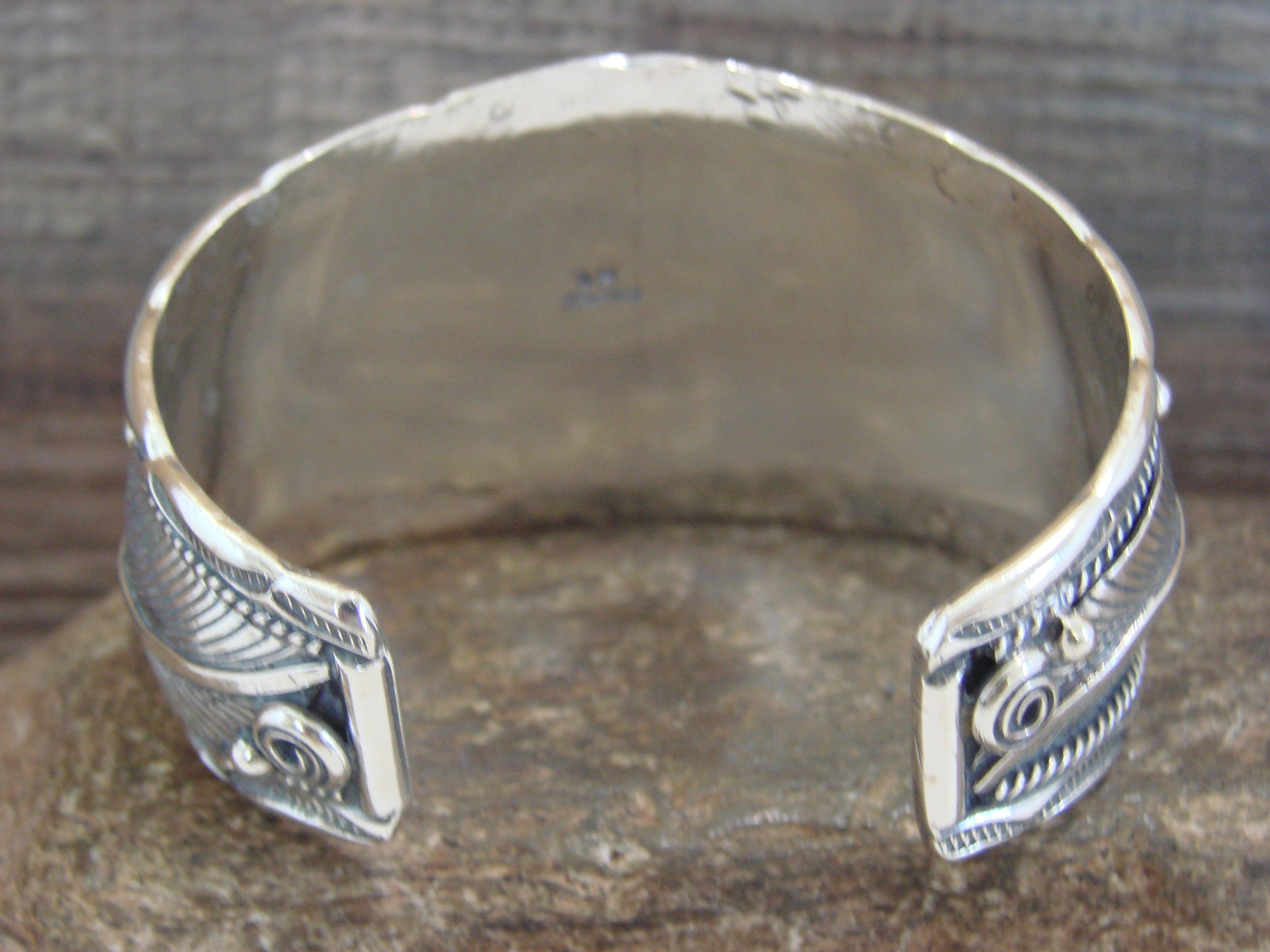 Native American Navajo Sterling Silver Feather Bracelet by D Morgan