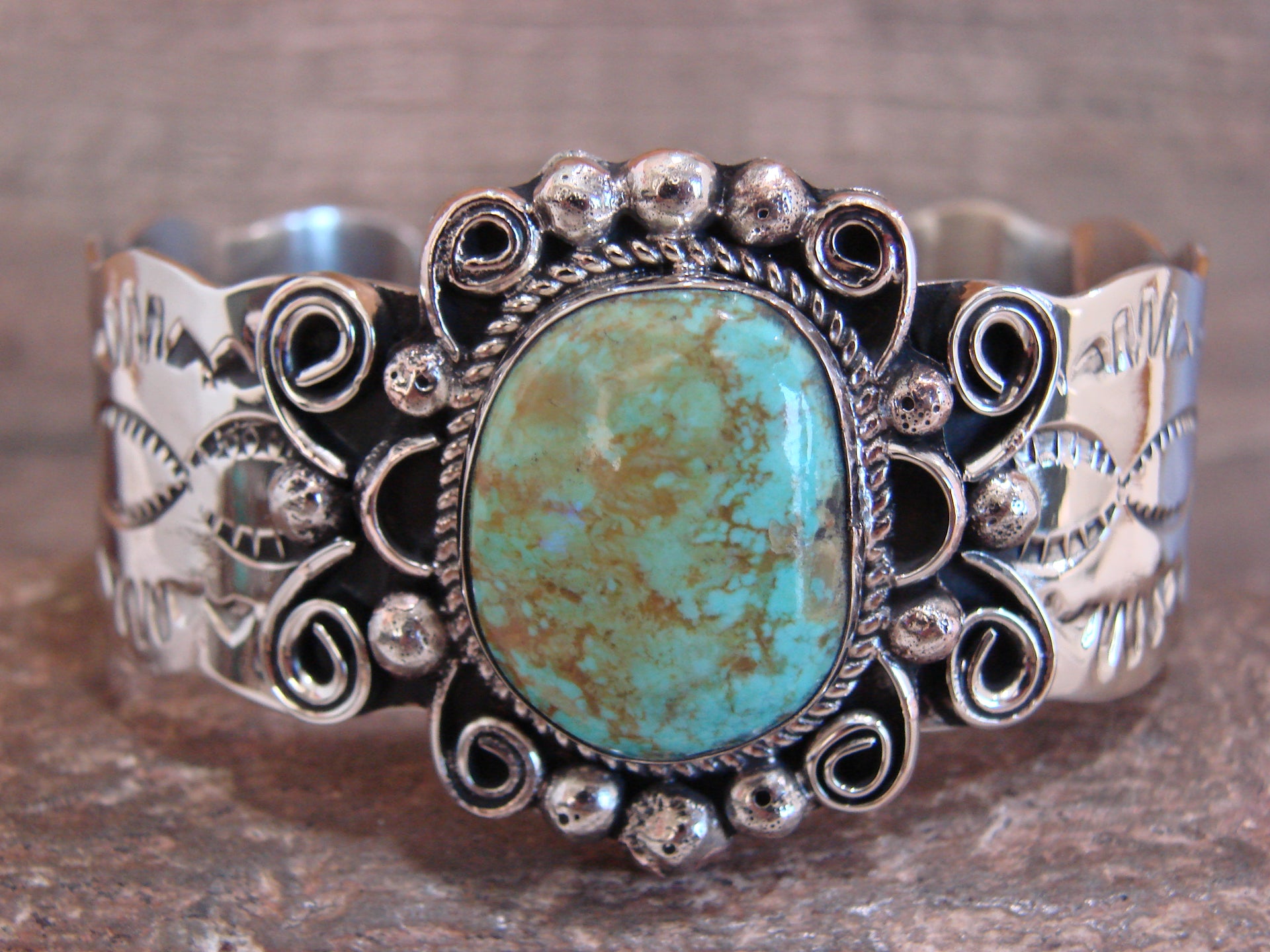 Native American Nickel Silver & Turquoise Bracelet by Cleveland