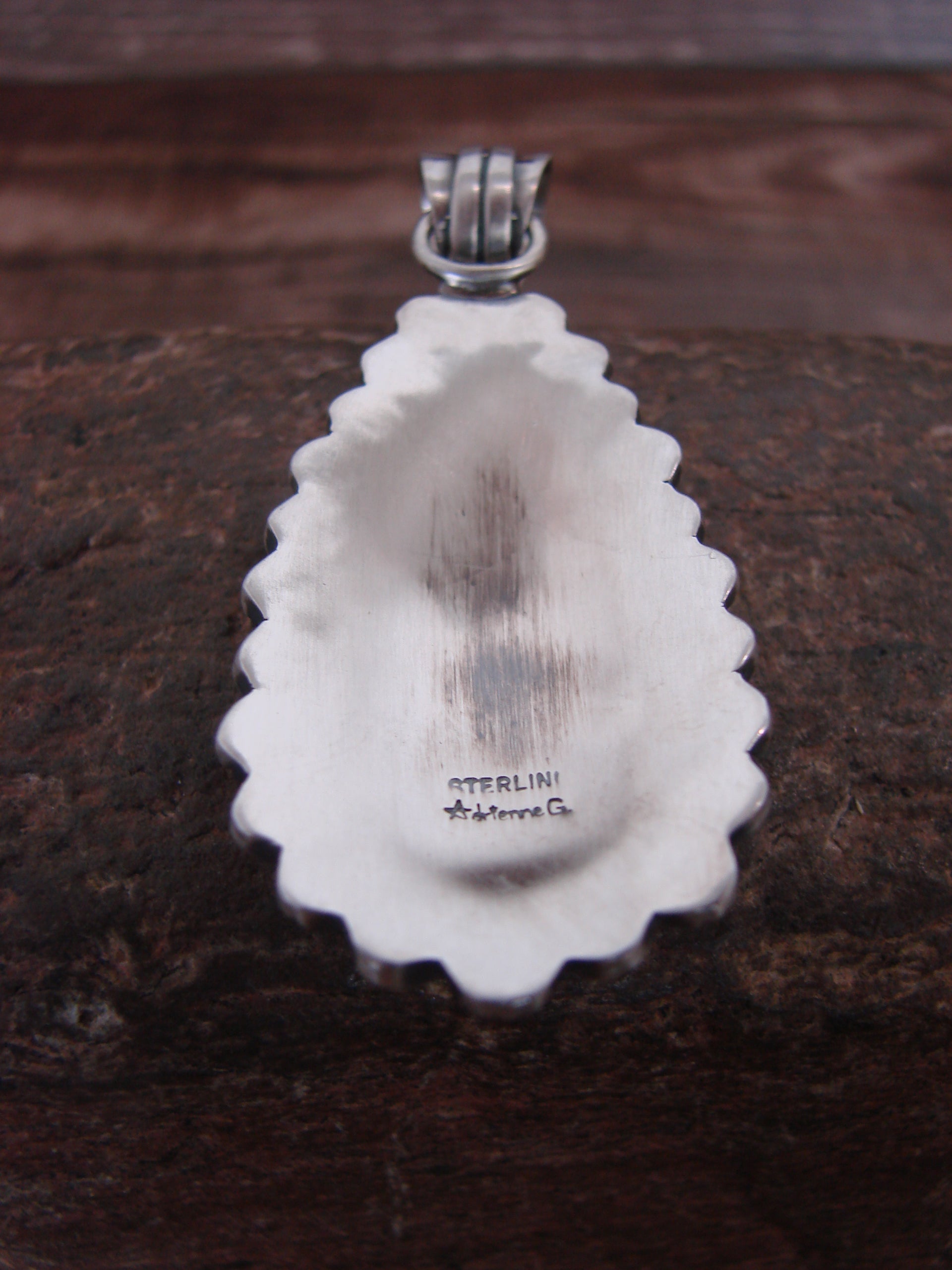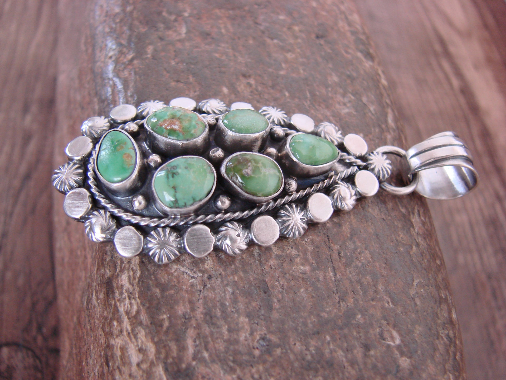 Genuine Native American Navajo Indian Sterling Silver & Sonoran Turquoise Cluster Pendant from Western New Mexico. This Stunning pendant features a cluster of Genuine Sonoran Turquoise stones beautifully set into Smooth sterling silver bezel settings. Gorgeous Sterling Silver details surround the stones. Fine Navajo Silversmith workmanship quality makes this pendant a beautiful hand made masterpiece! Handmade by Navajo artist Adrienne P. Gordon. Hallmarked on the back. Free Shipping with a Gift Box included!