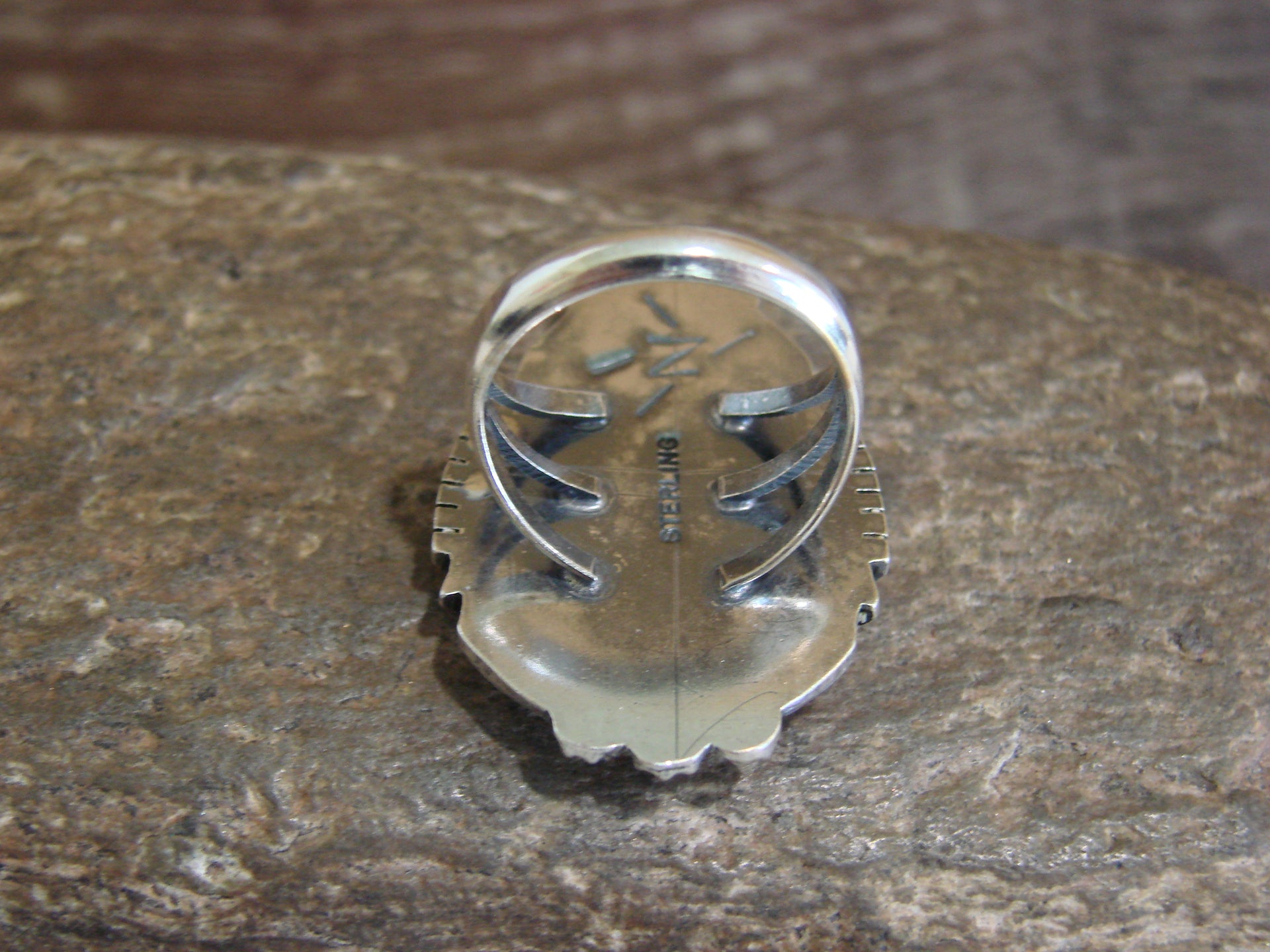 Genuine Native American Navajo Indian Sterling Silver & Turquoise Cluster Ring from Western New Mexico. This Gorgeous ring features Genuine Turquoise stones set into crown Sterling Silver bezel settings. Surrounding the stones are beautiful details in Sterling Silver. The stones are polished and have a Stunning look! Handmade by Navajo Silversmith Kenny Lonjose. Signed and Stamped "Sterling" on the back. Free gift box and shipping included!