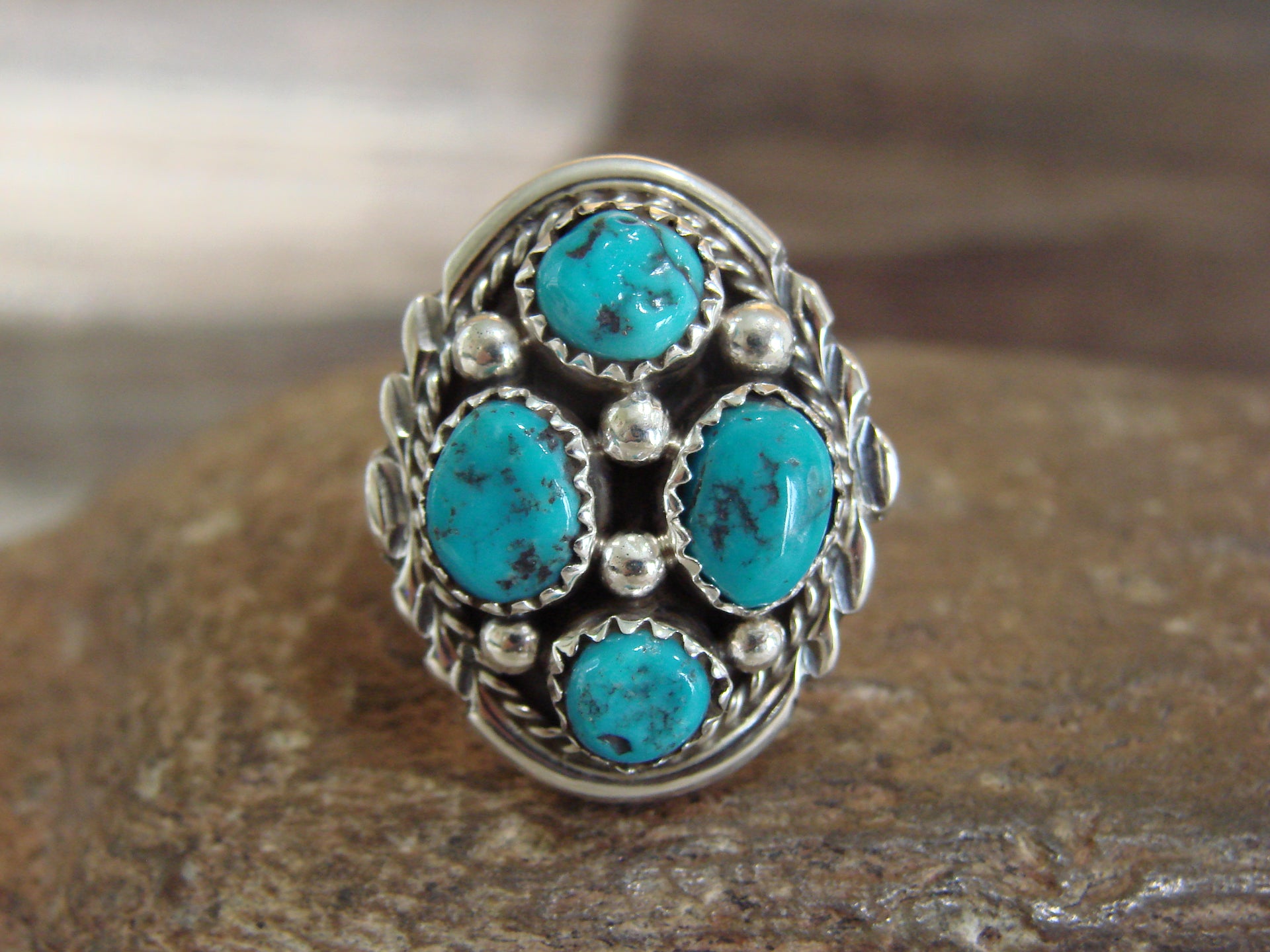 Native American Sterling Silver Turquoise Cluster Ring - Chee - Size 6.5